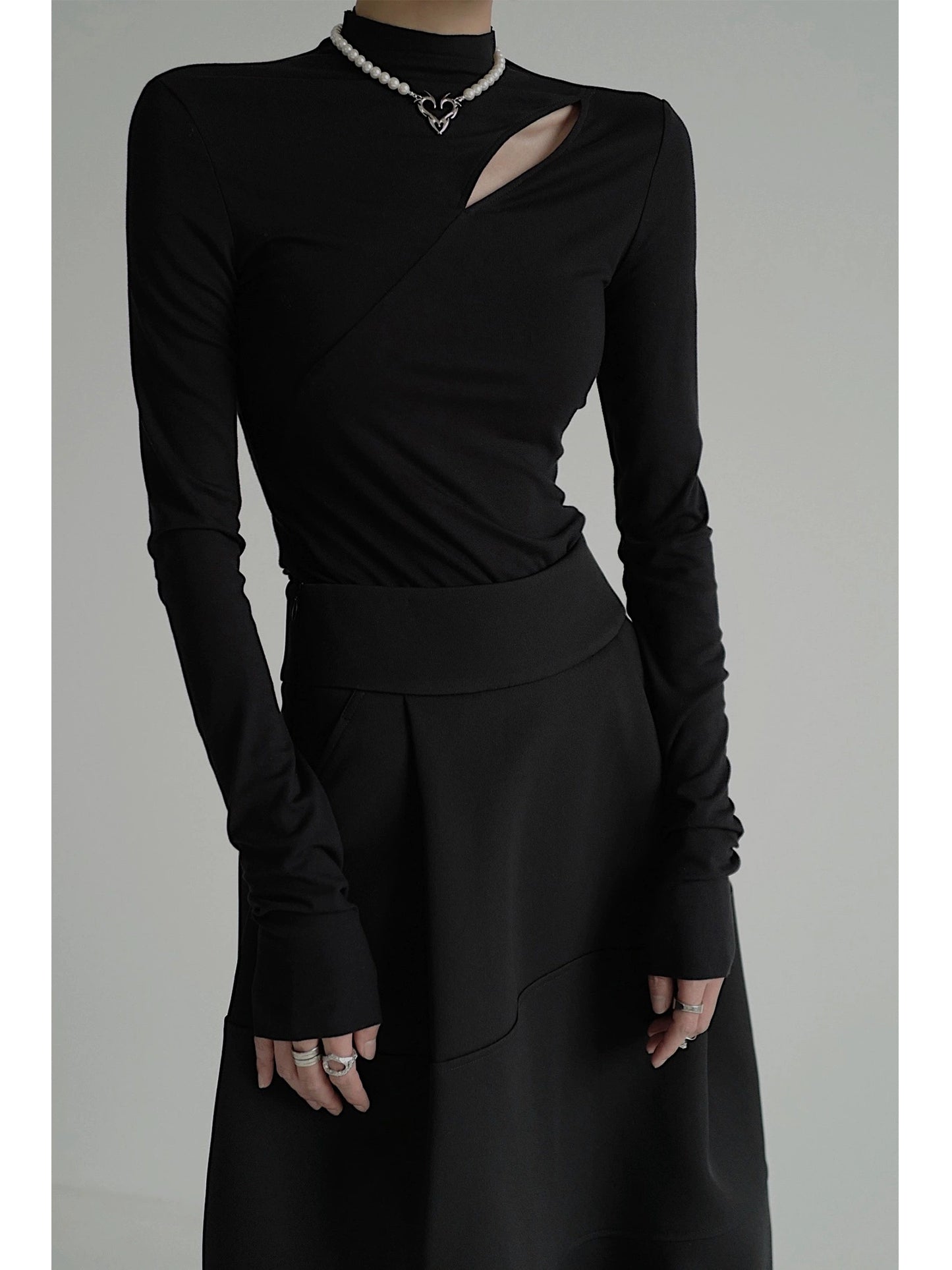 Stand Neck Hollow Long Sleeve T-shirt NA4273