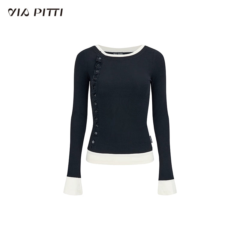 Contrasting Color Patchwork Long Sleeve Top NA4733