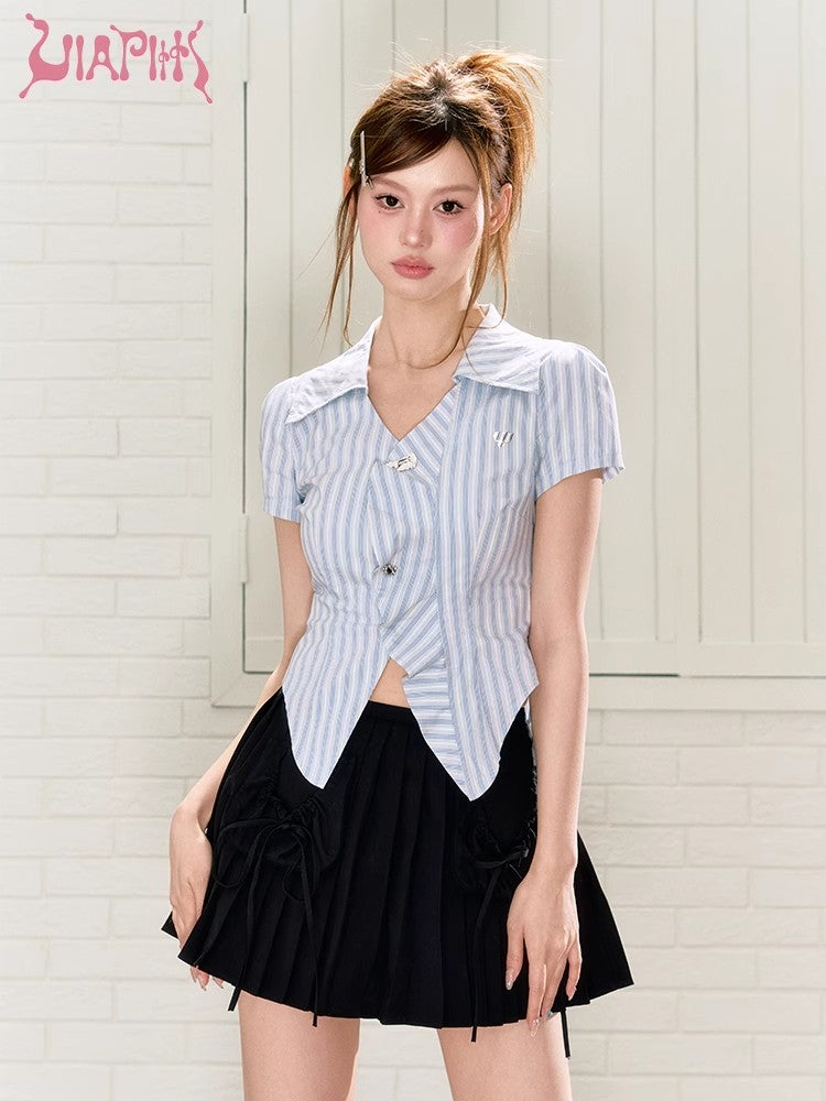 Pleated Slim Fit Striped Short Sleeve Shirt NA4790
