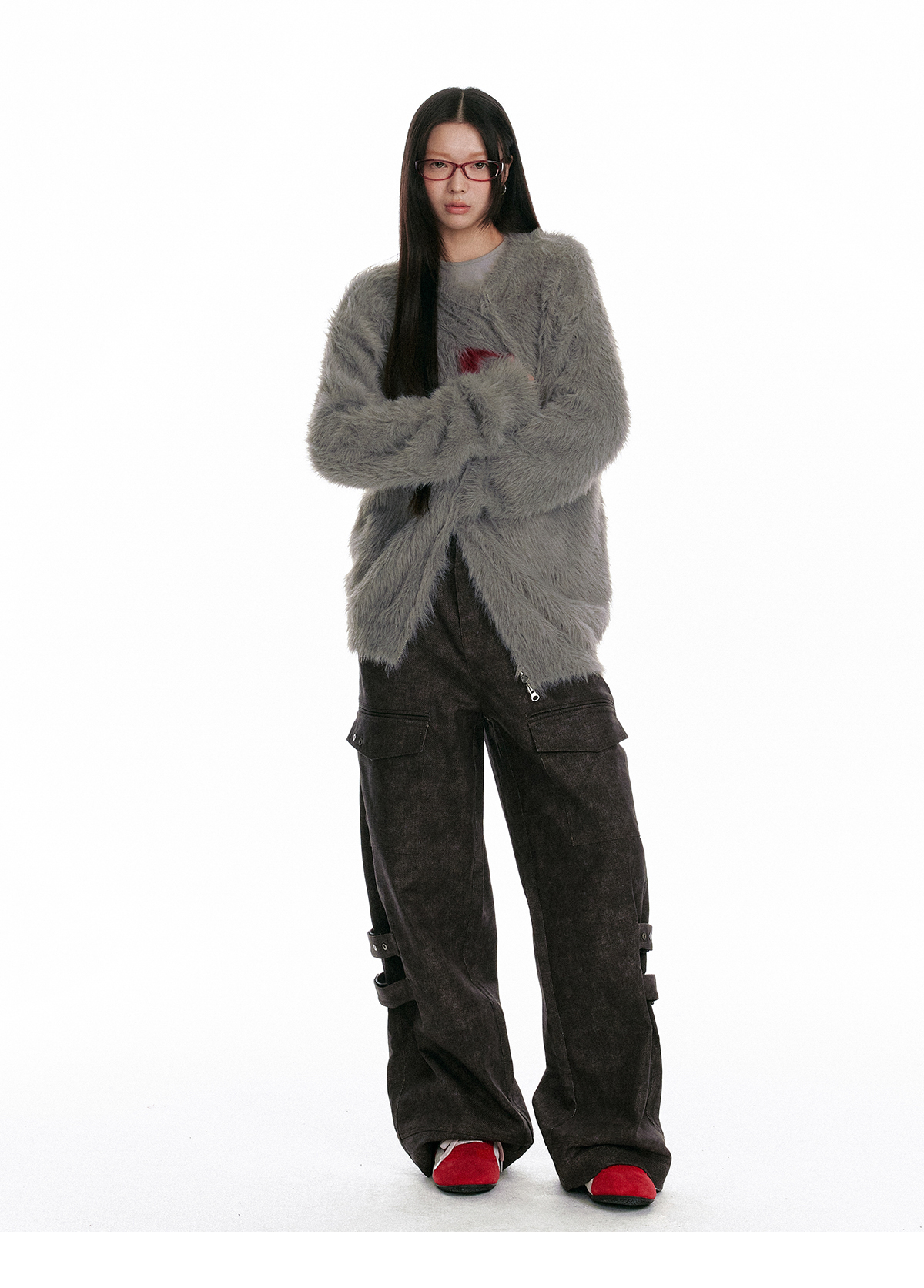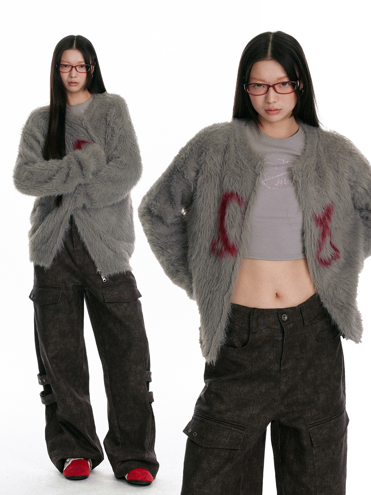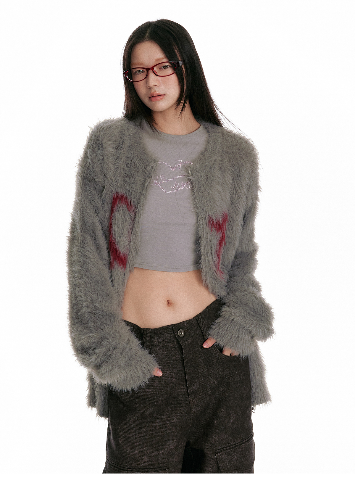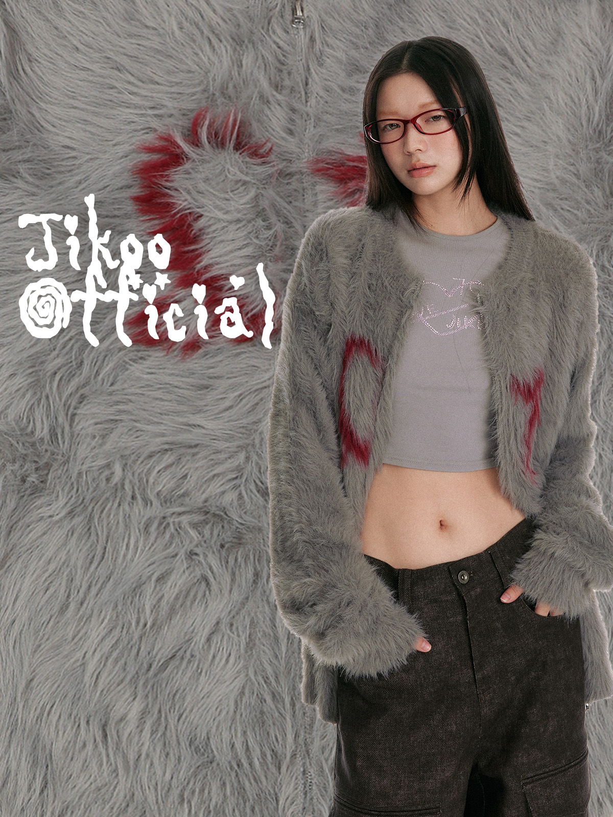 Fuzzy Soft Jacquard Zipper Knit Cardigan NA7084