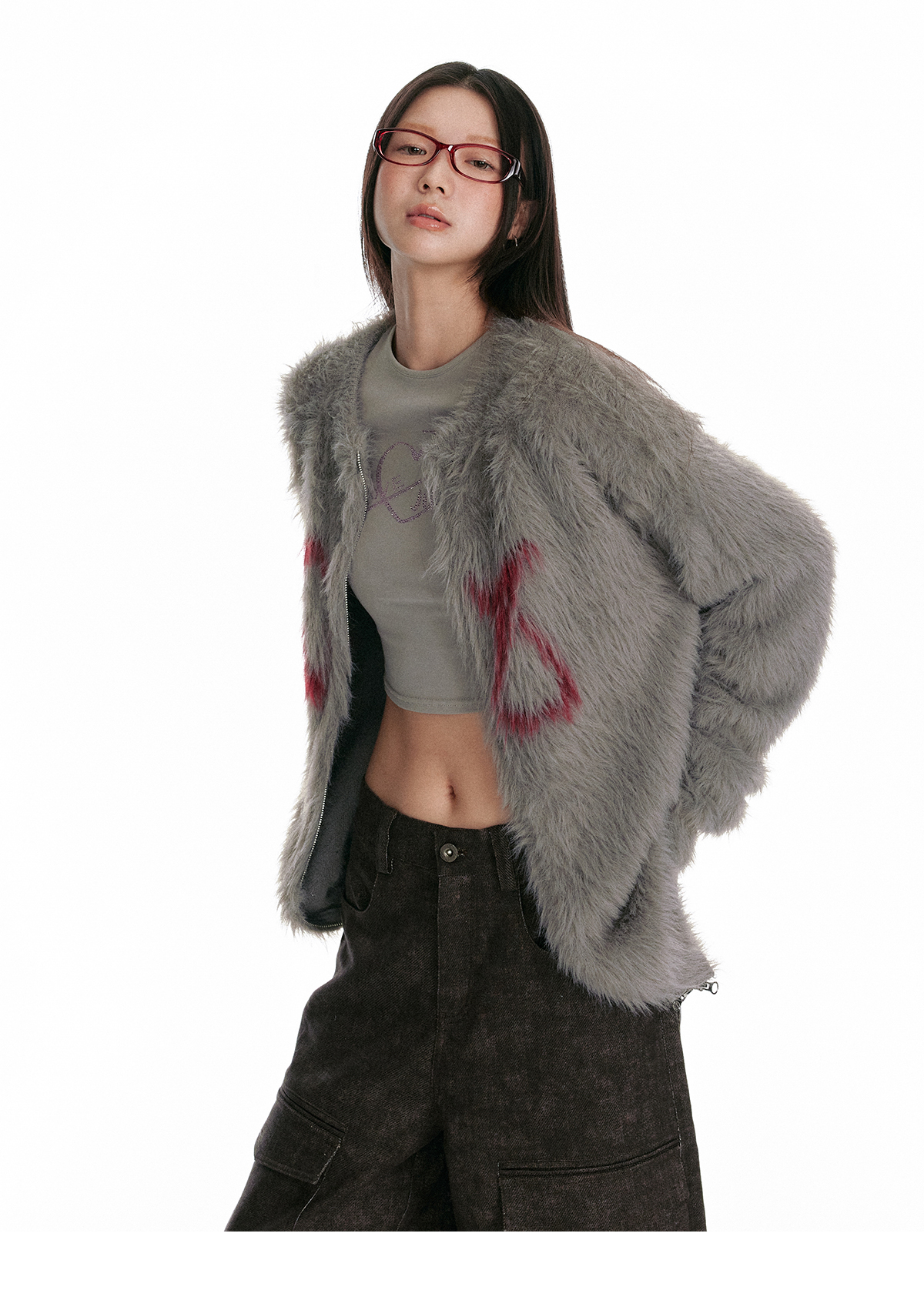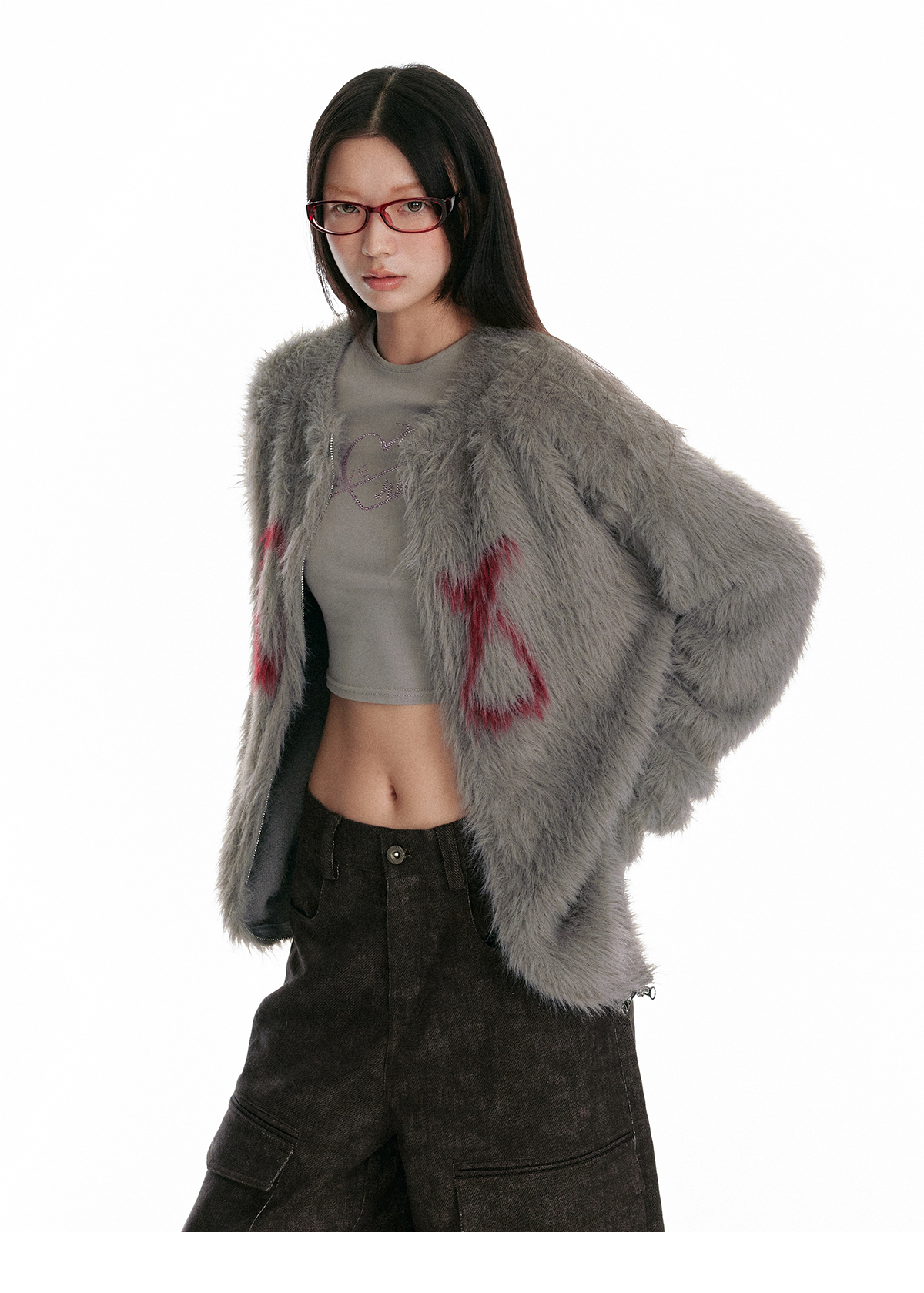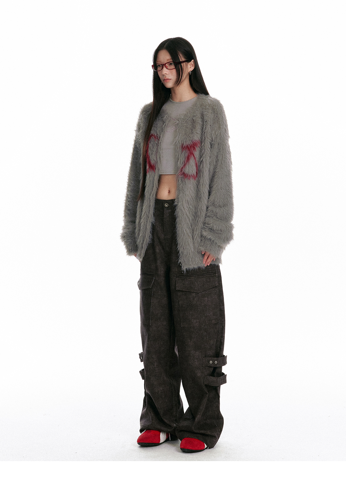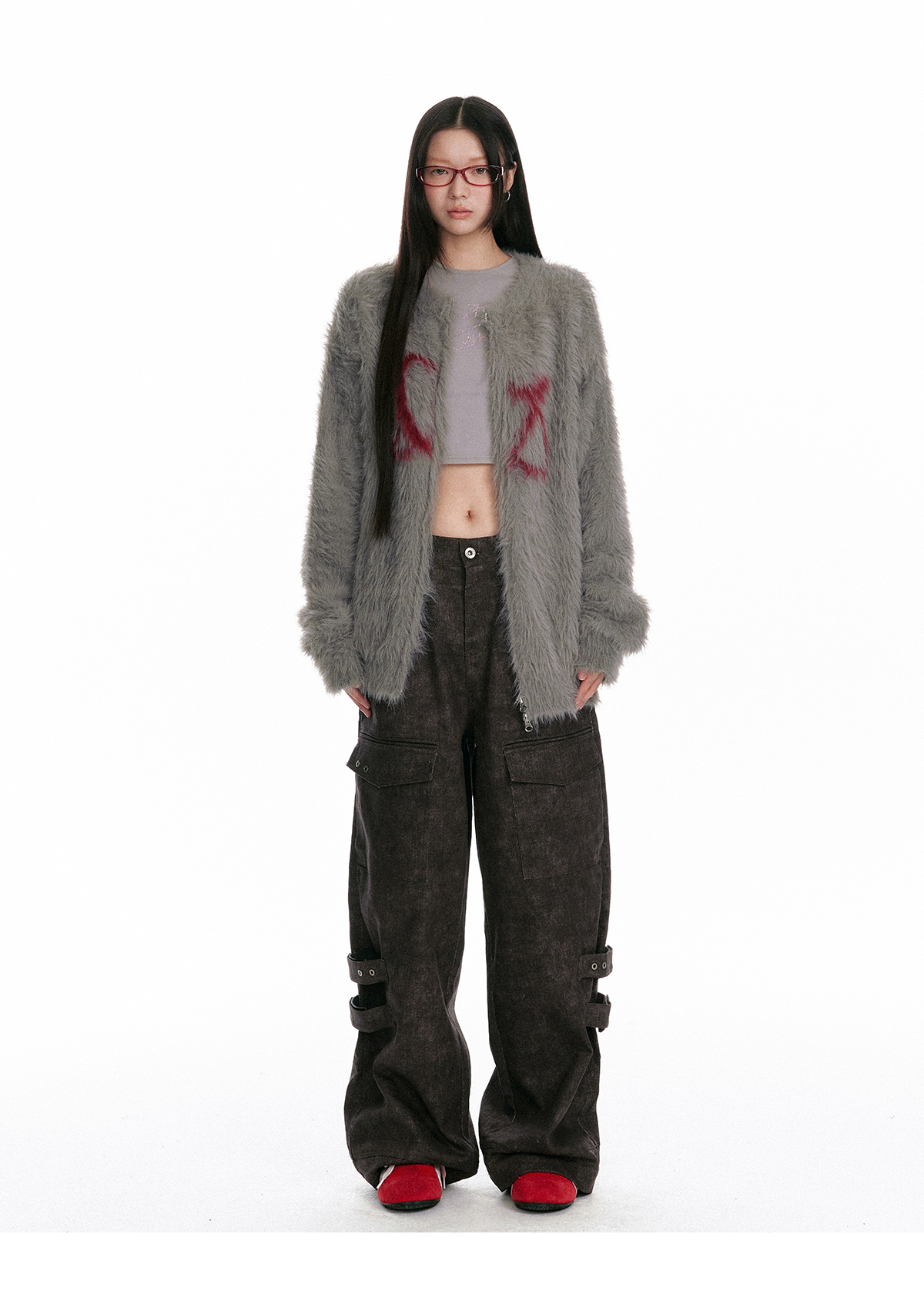 Fuzzy Soft Jacquard Zipper Knit Cardigan NA7084
