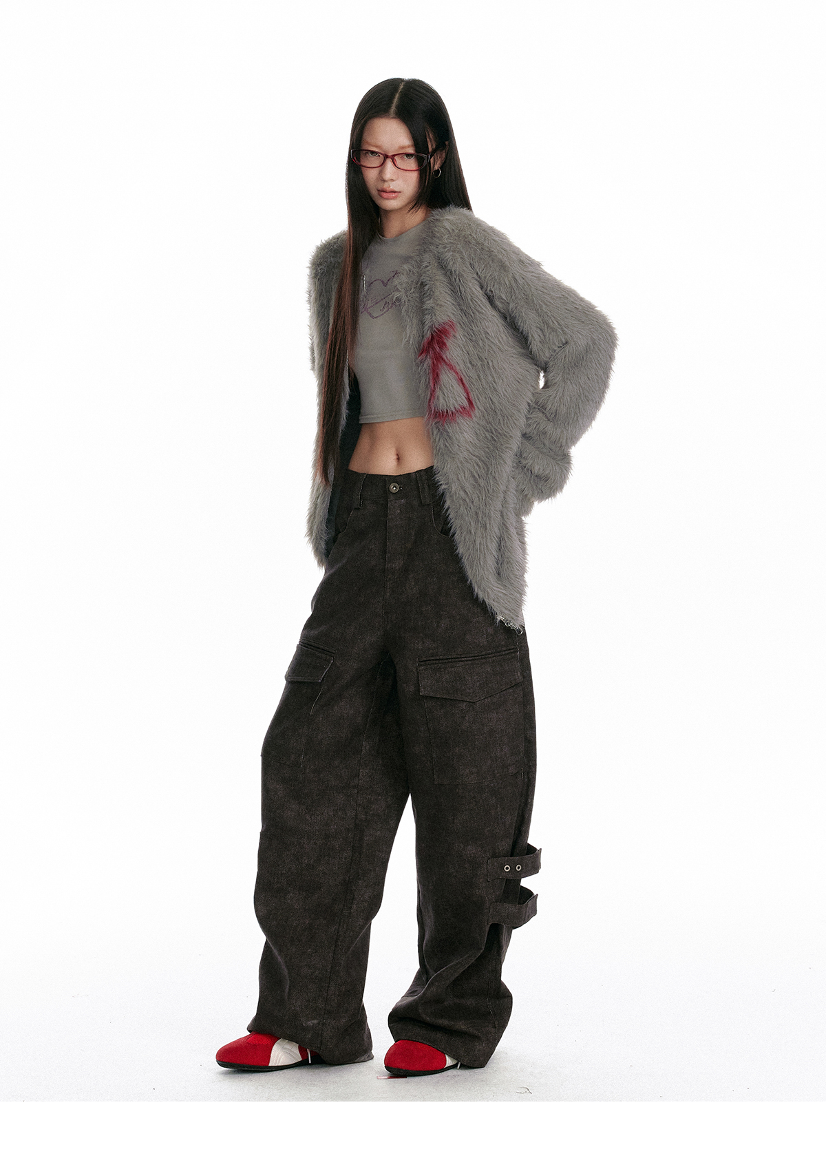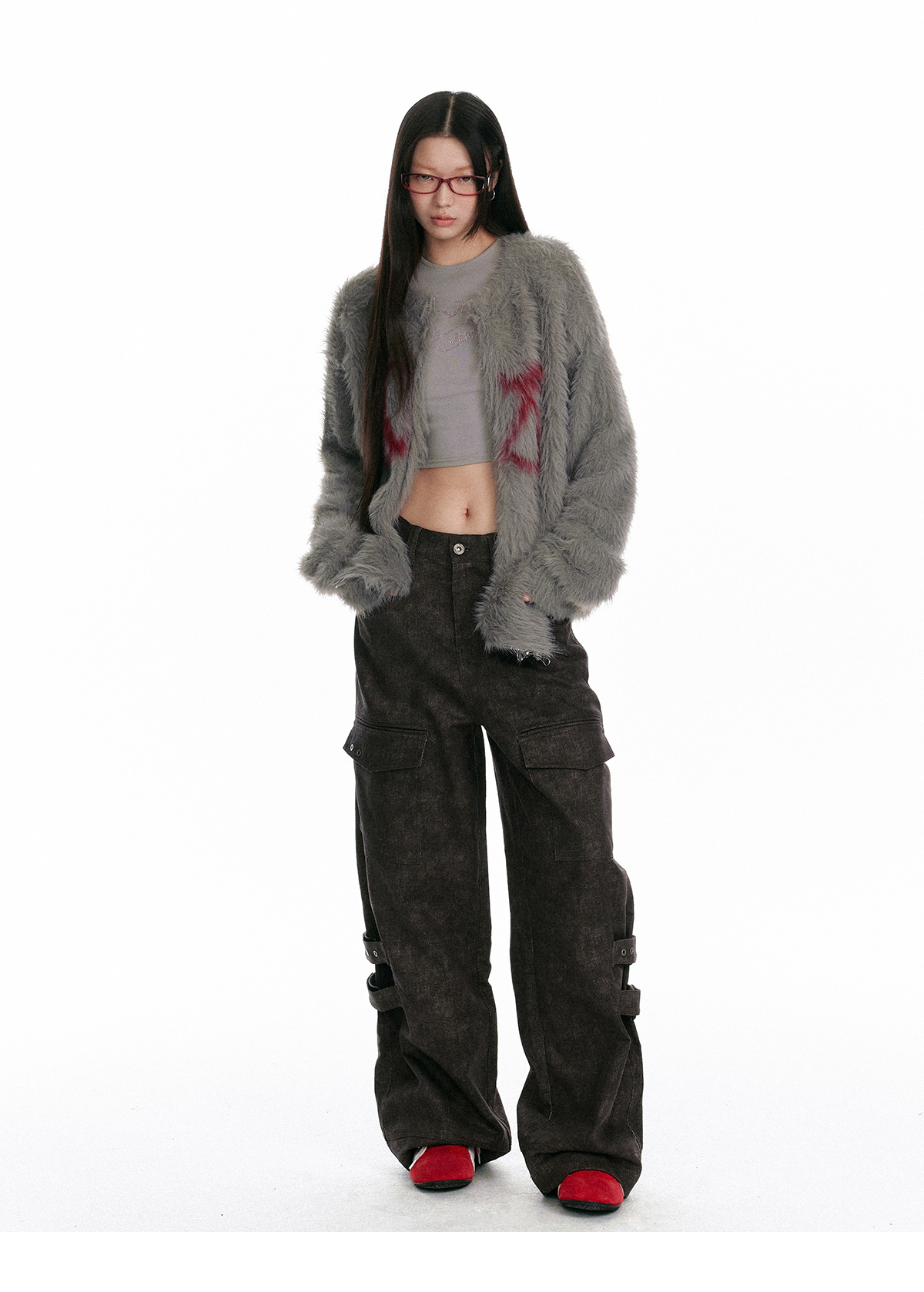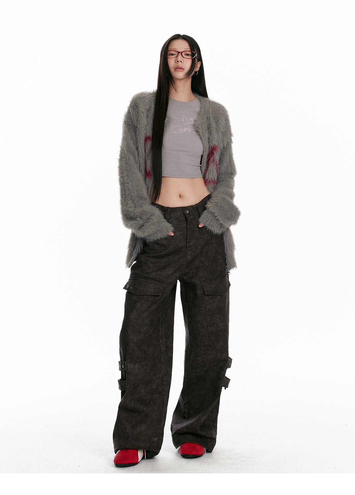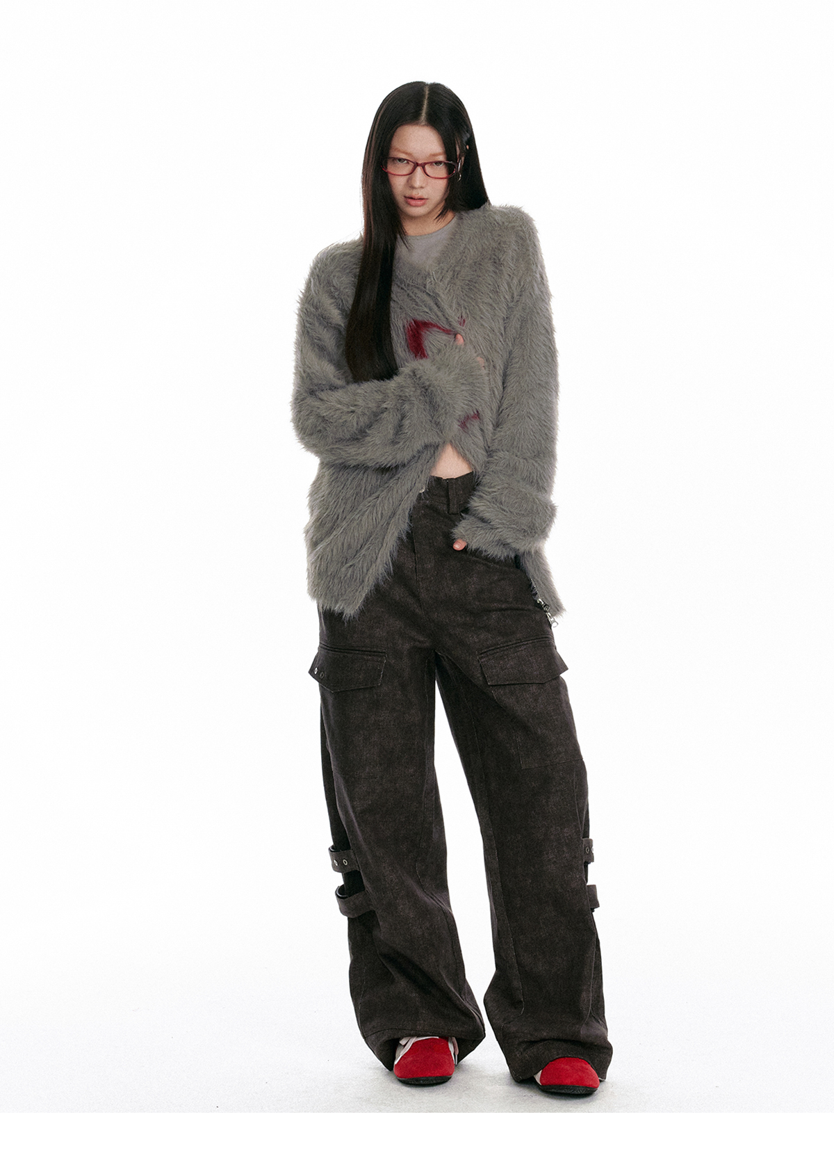 Fuzzy Soft Jacquard Zipper Knit Cardigan NA7084