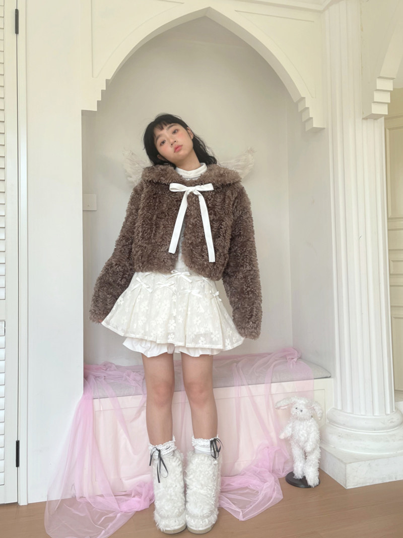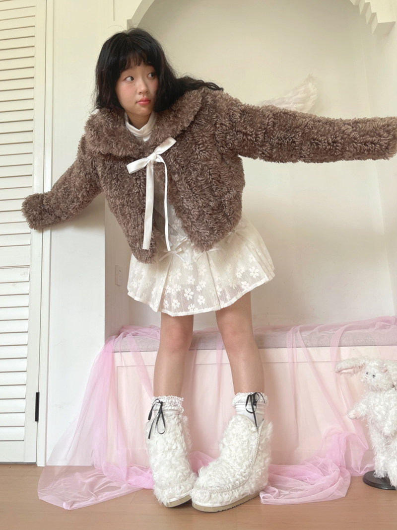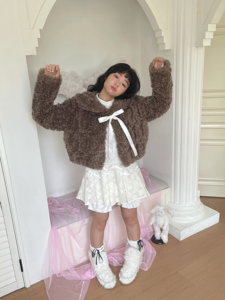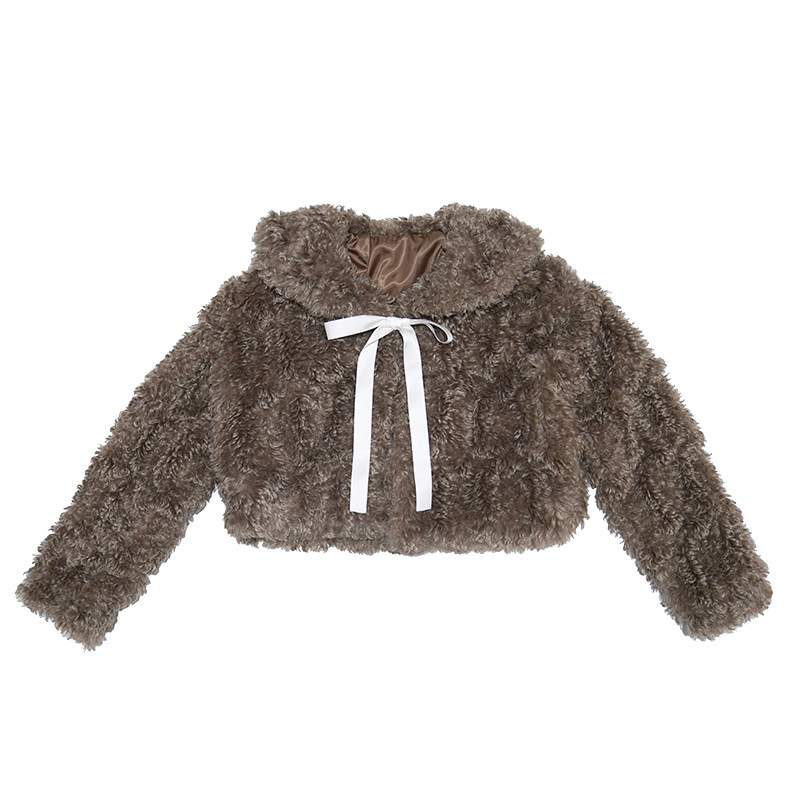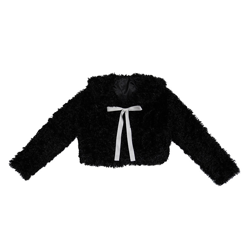 Fake Fur Bow Tie Plush Jacket NA8333