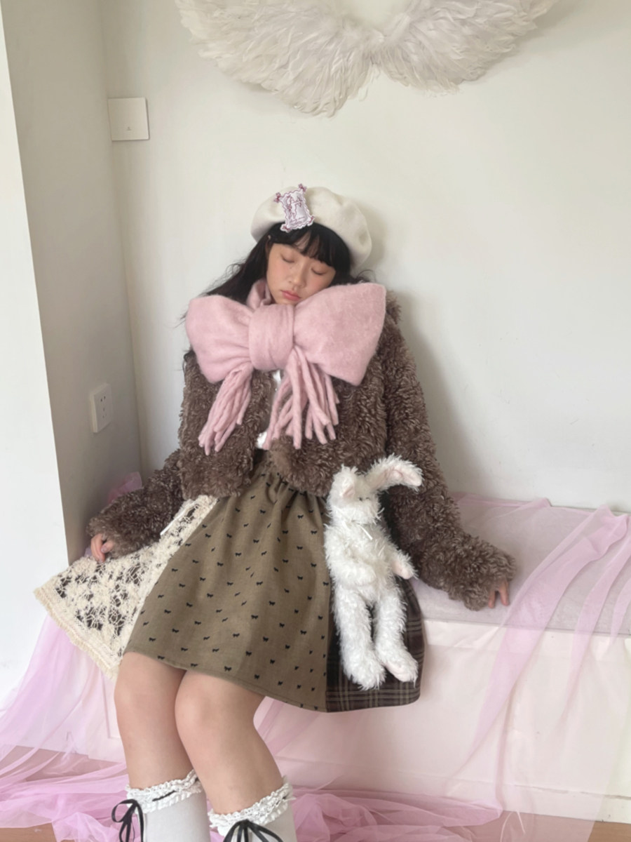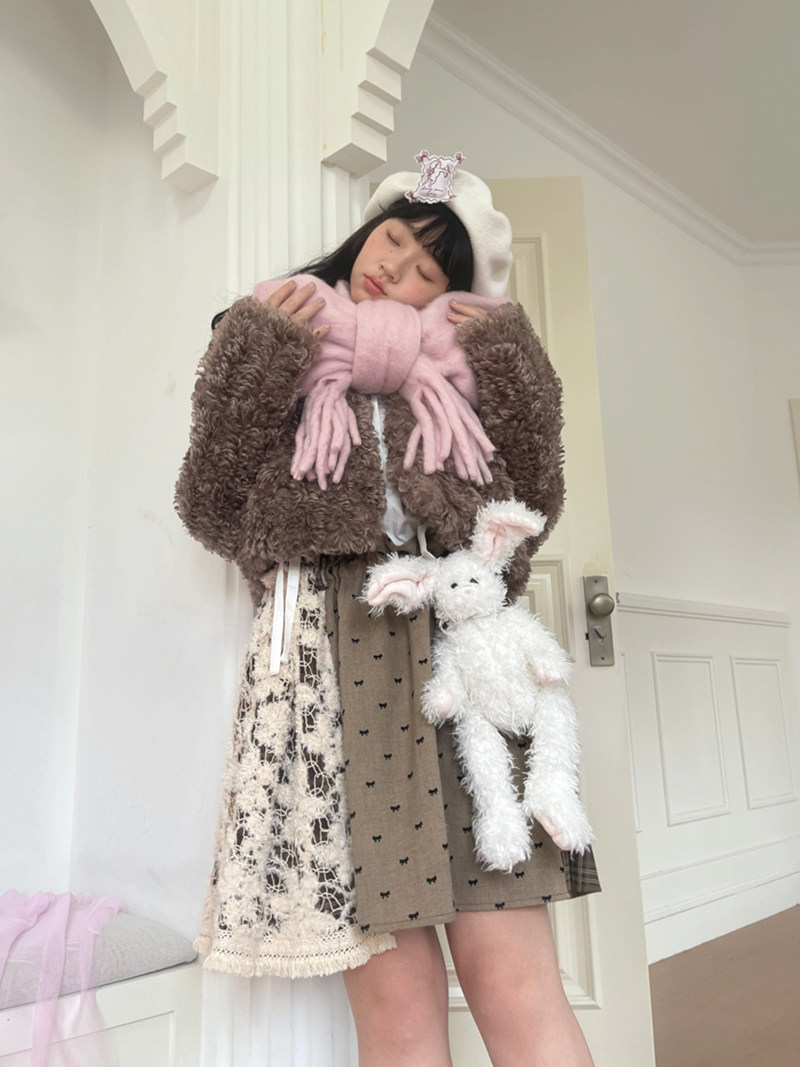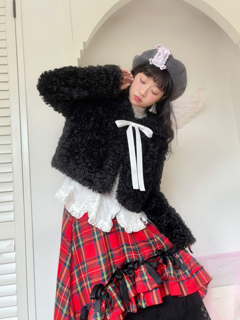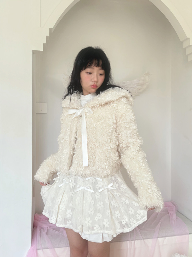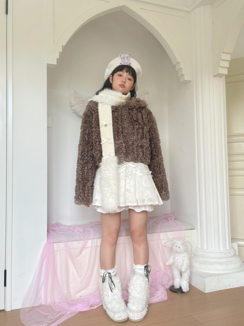 Fake Fur Bow Tie Plush Jacket NA8333