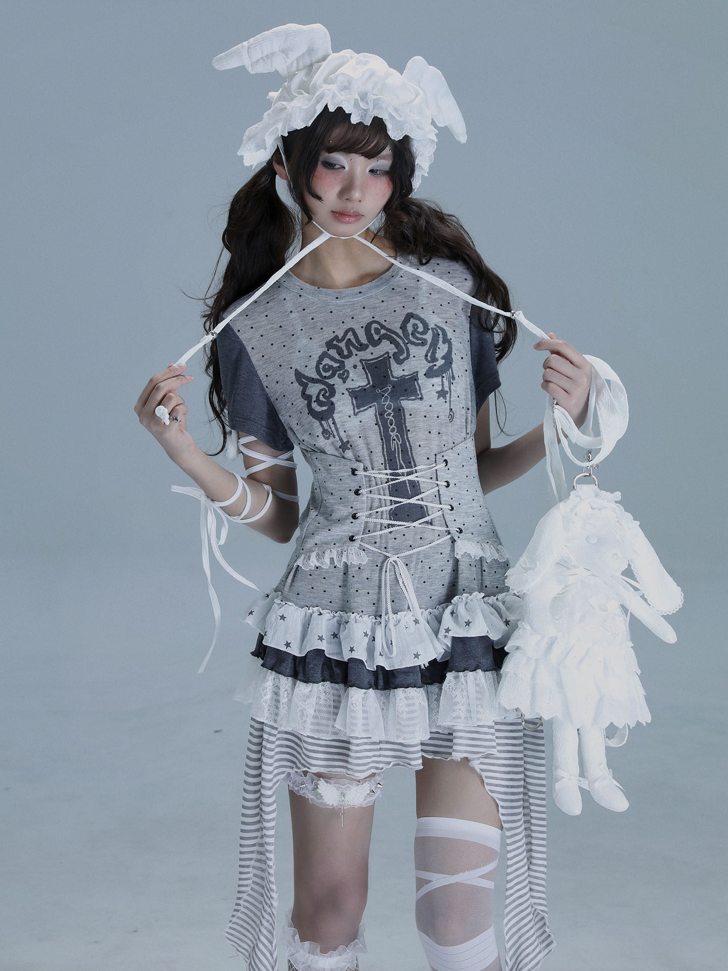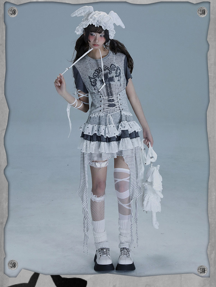 Asymmetric Ruffle Lace Dress NA8551