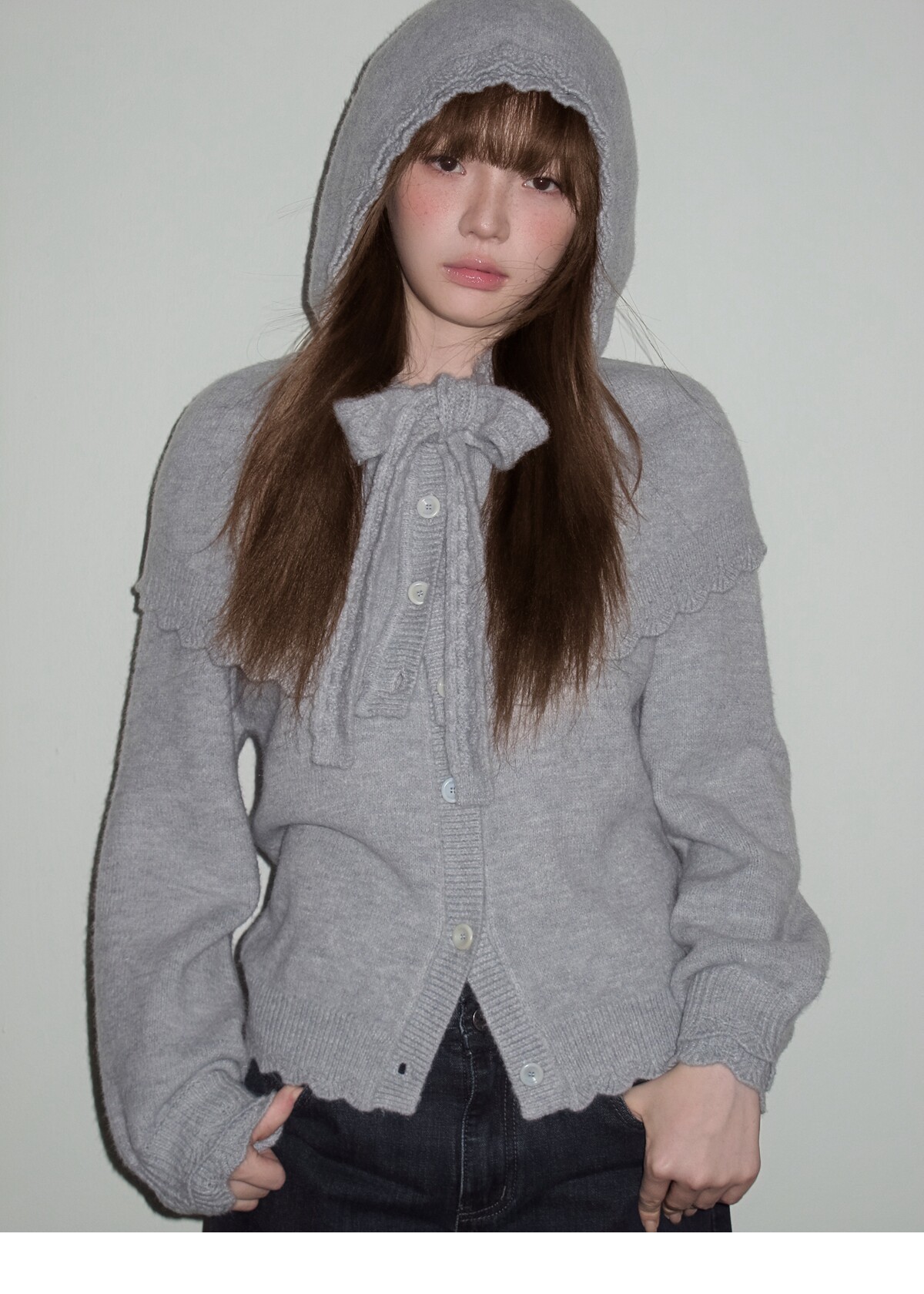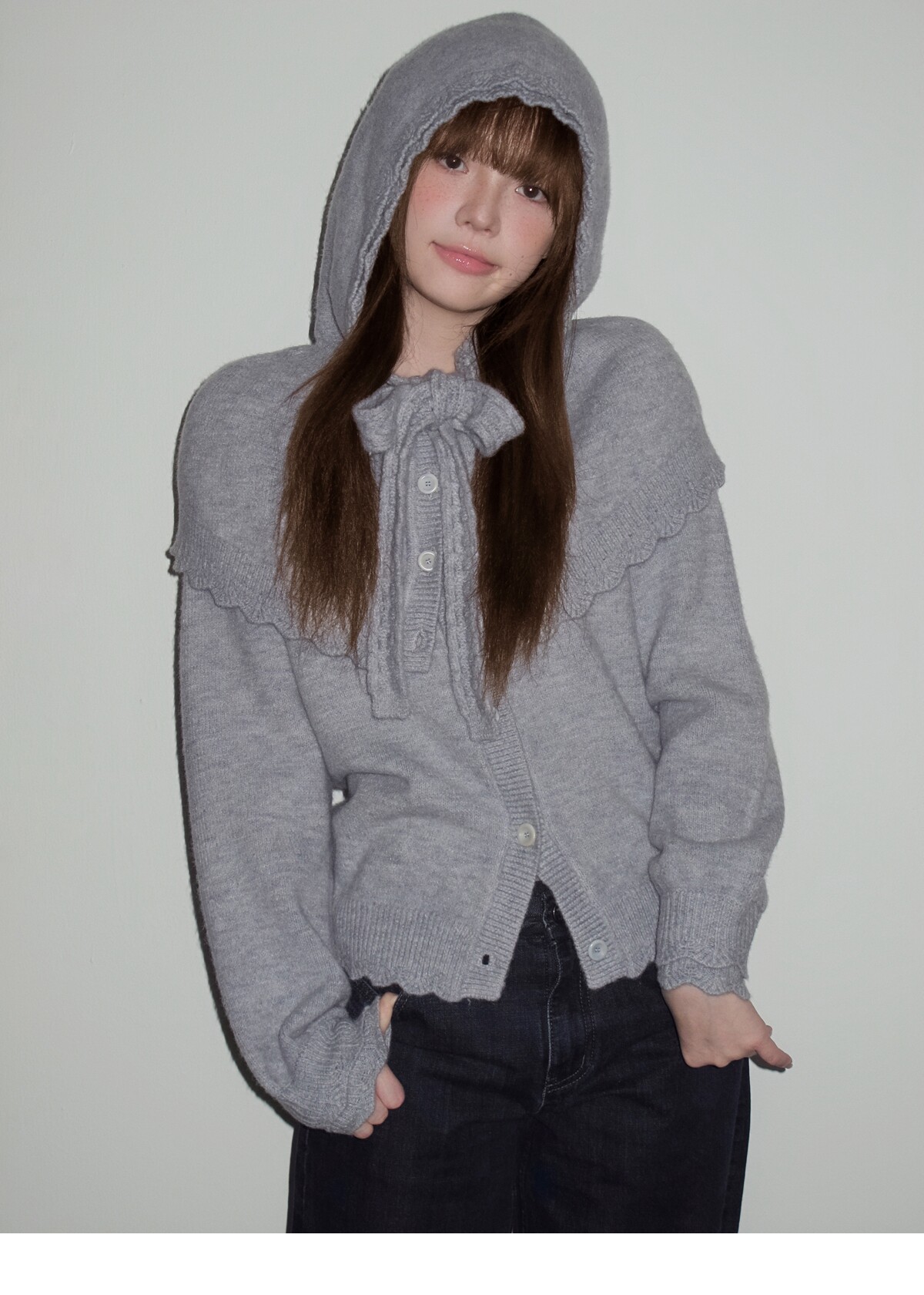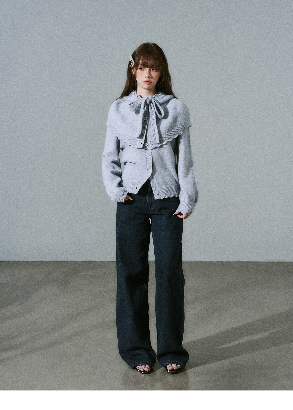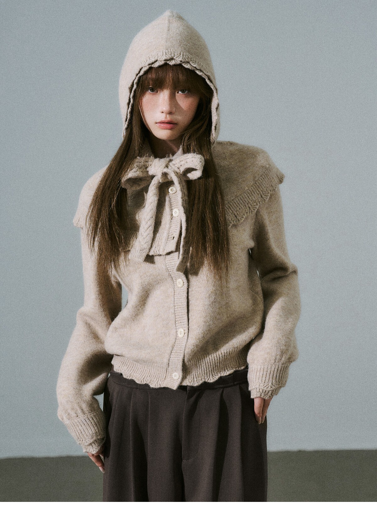 Ruffled Collar and Bow Detail Knit Cardigan NA8824
