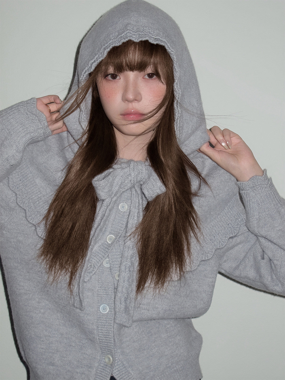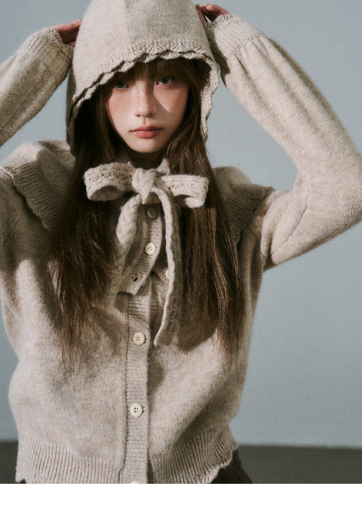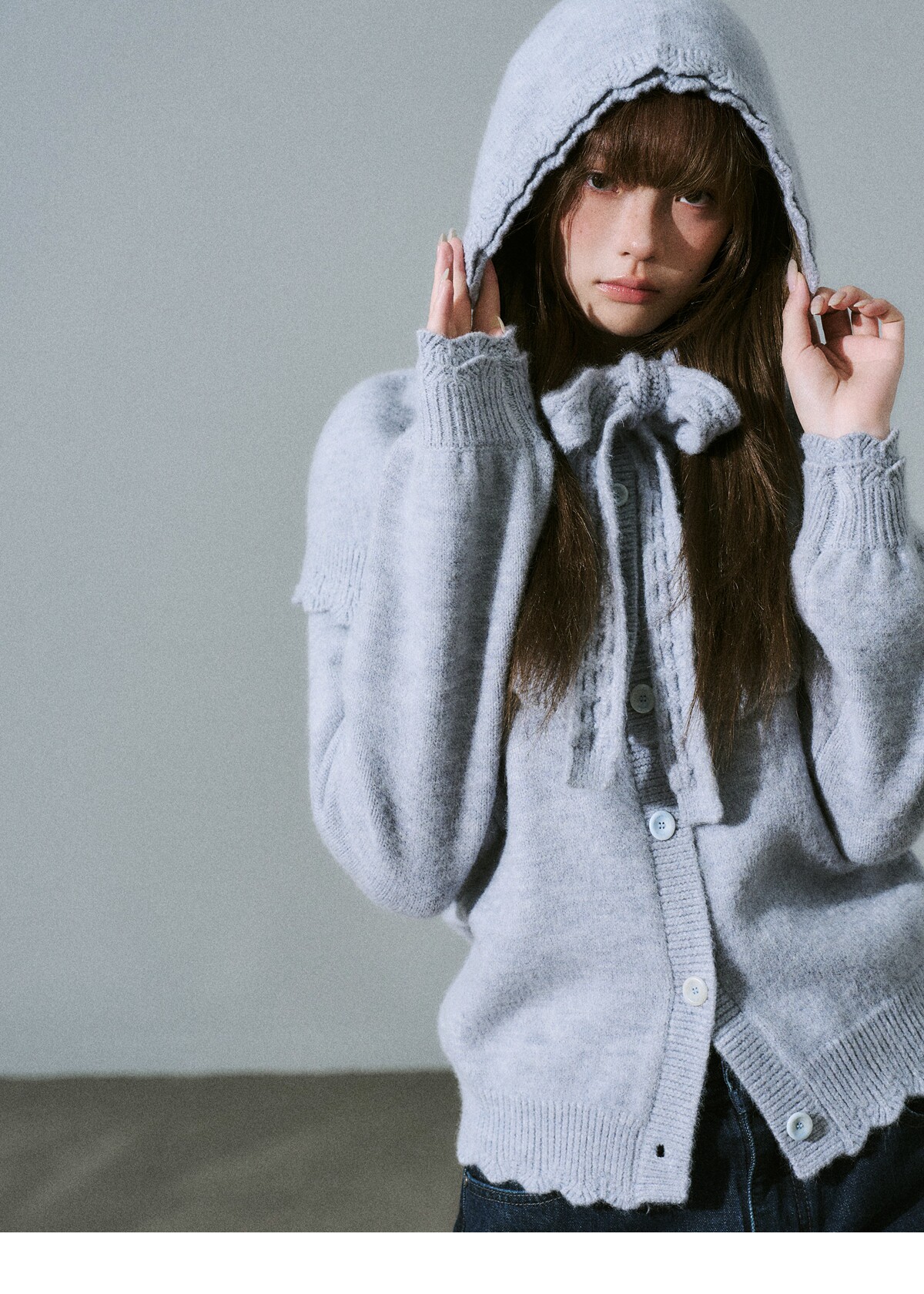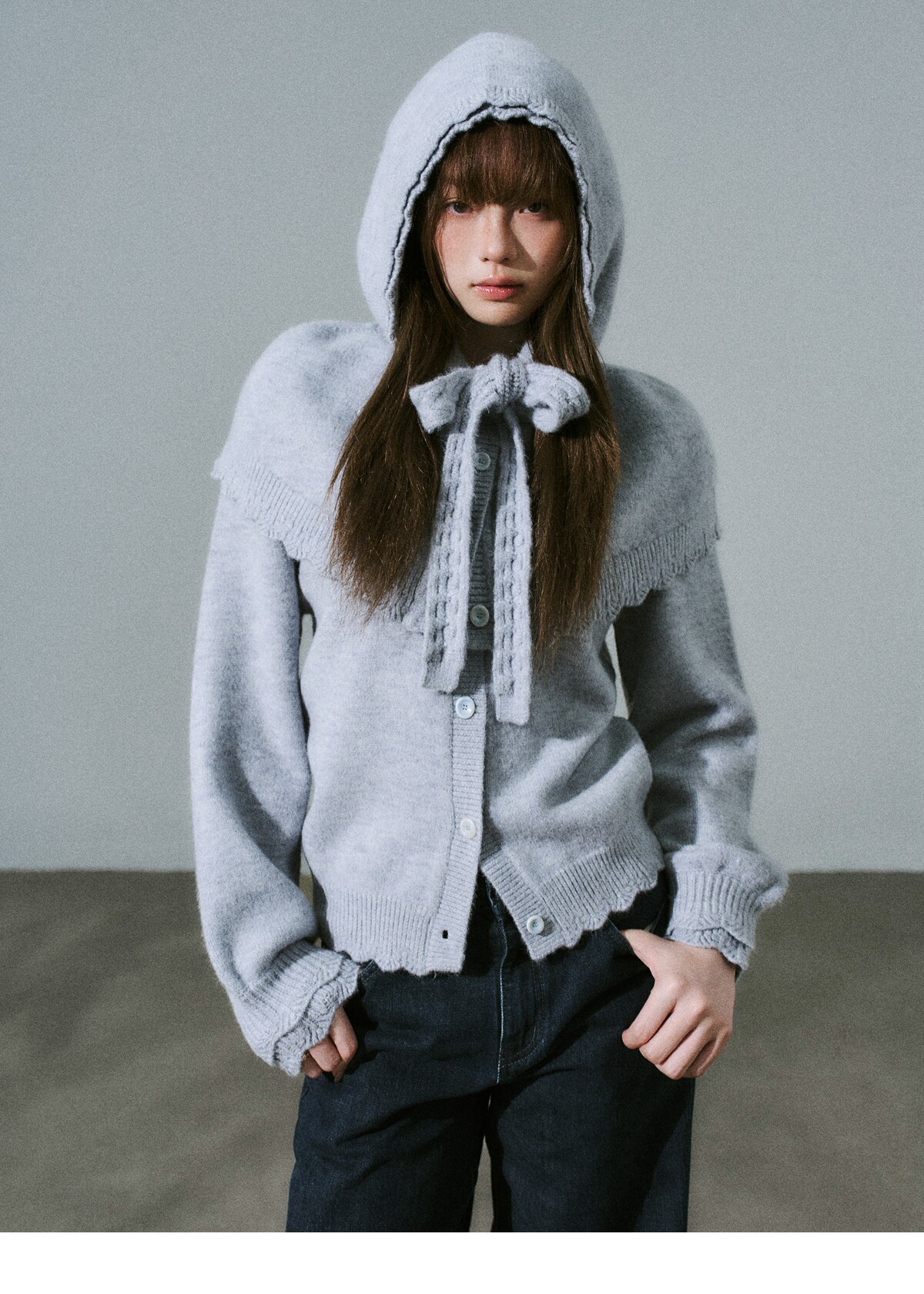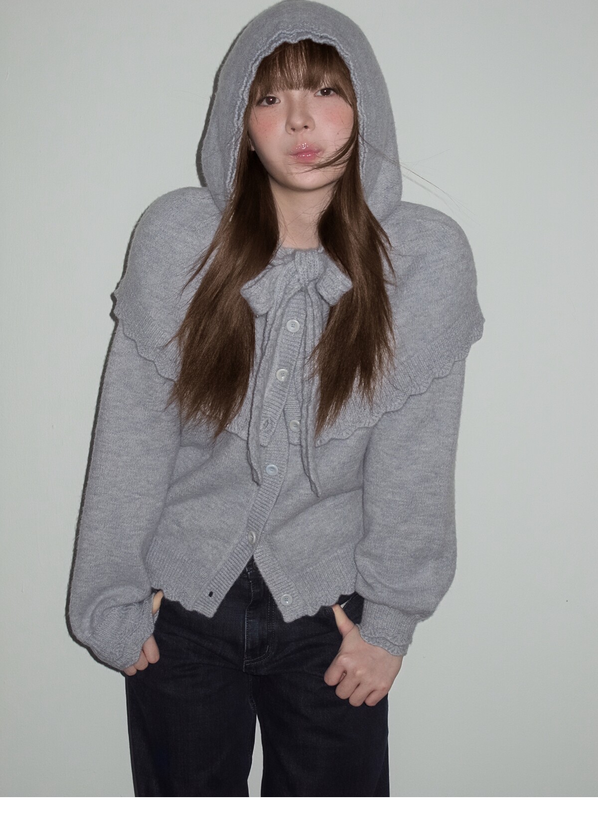 Ruffled Collar and Bow Detail Knit Cardigan NA8824