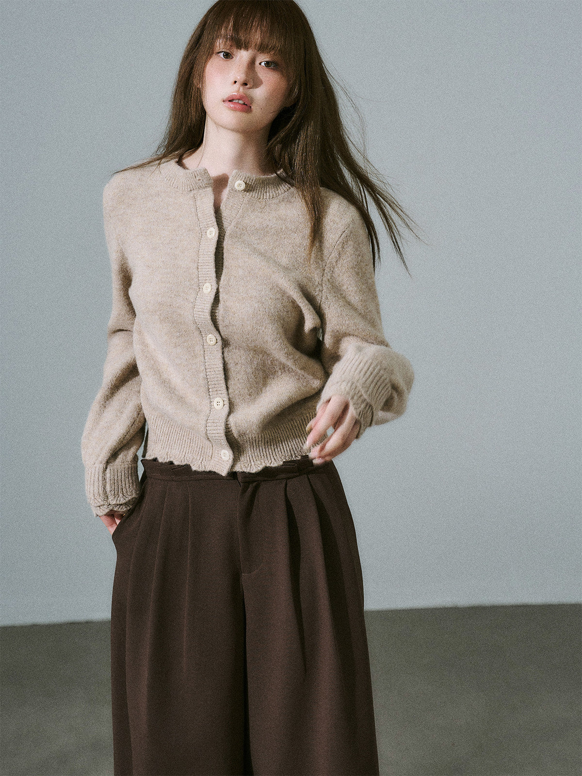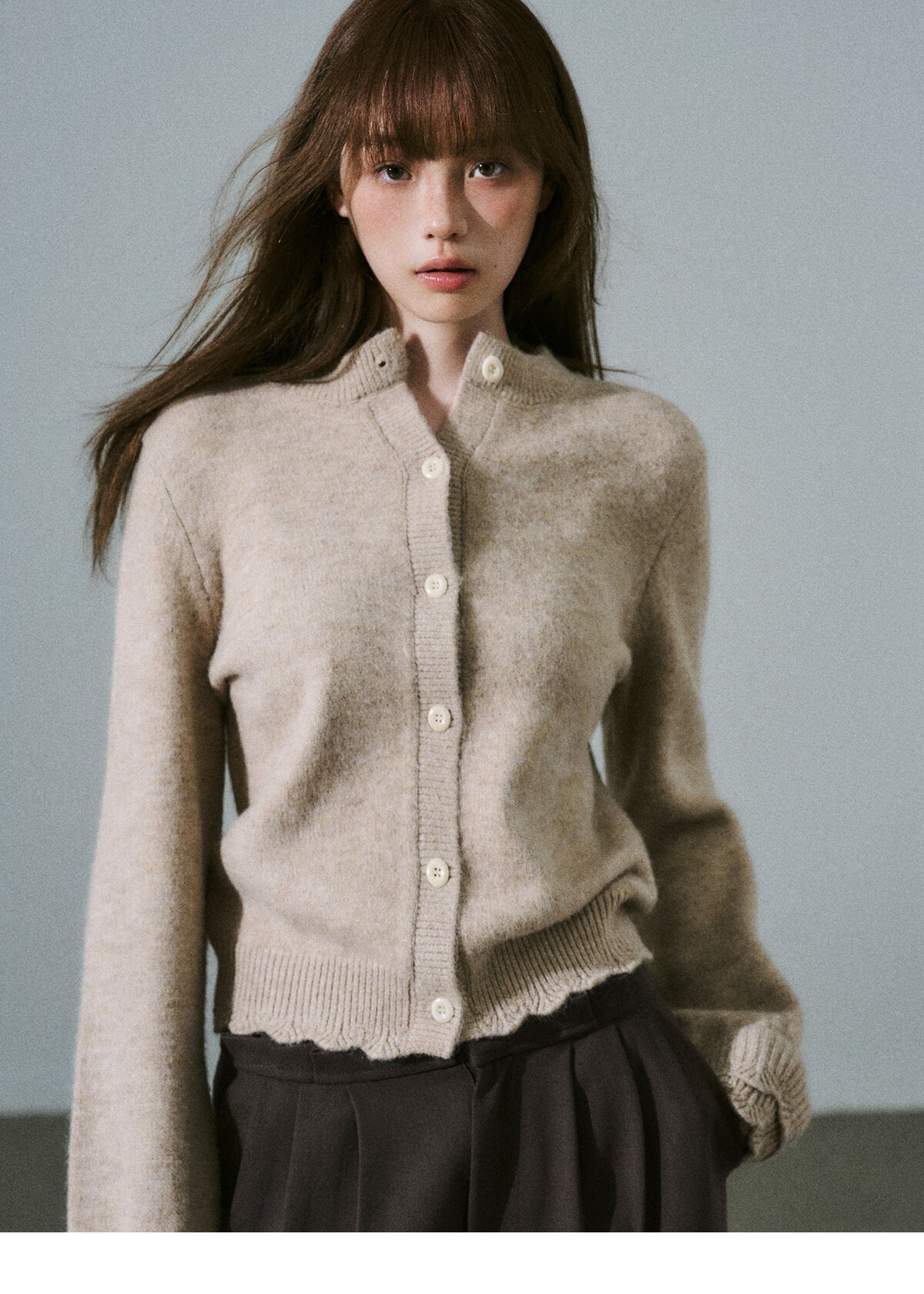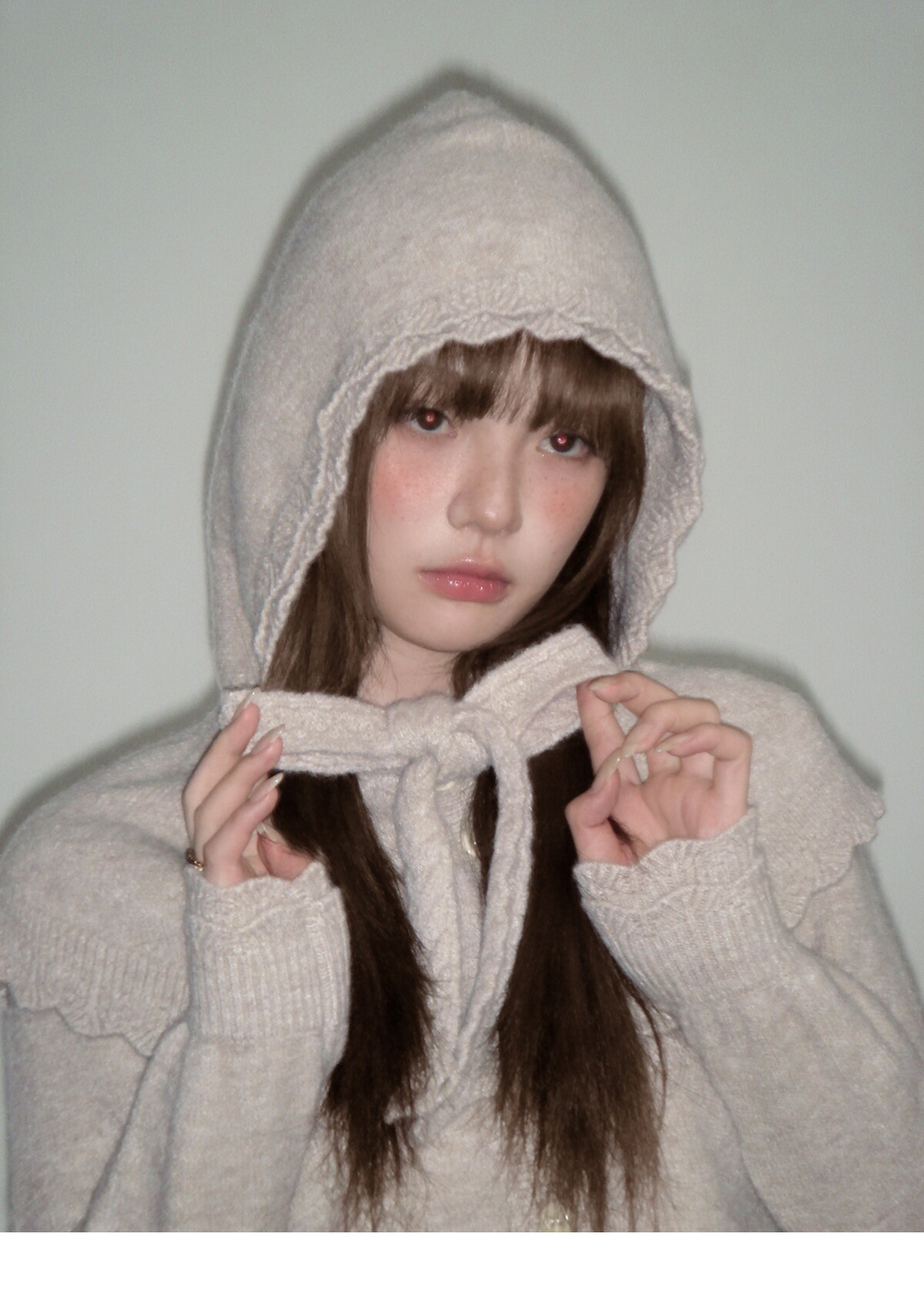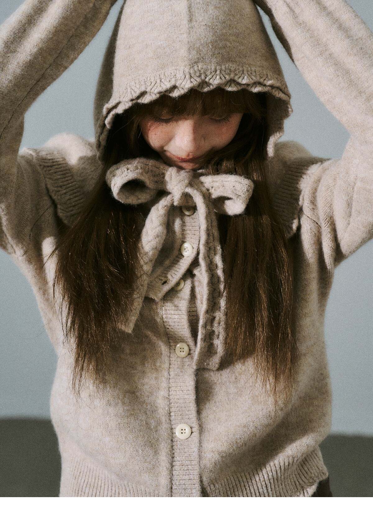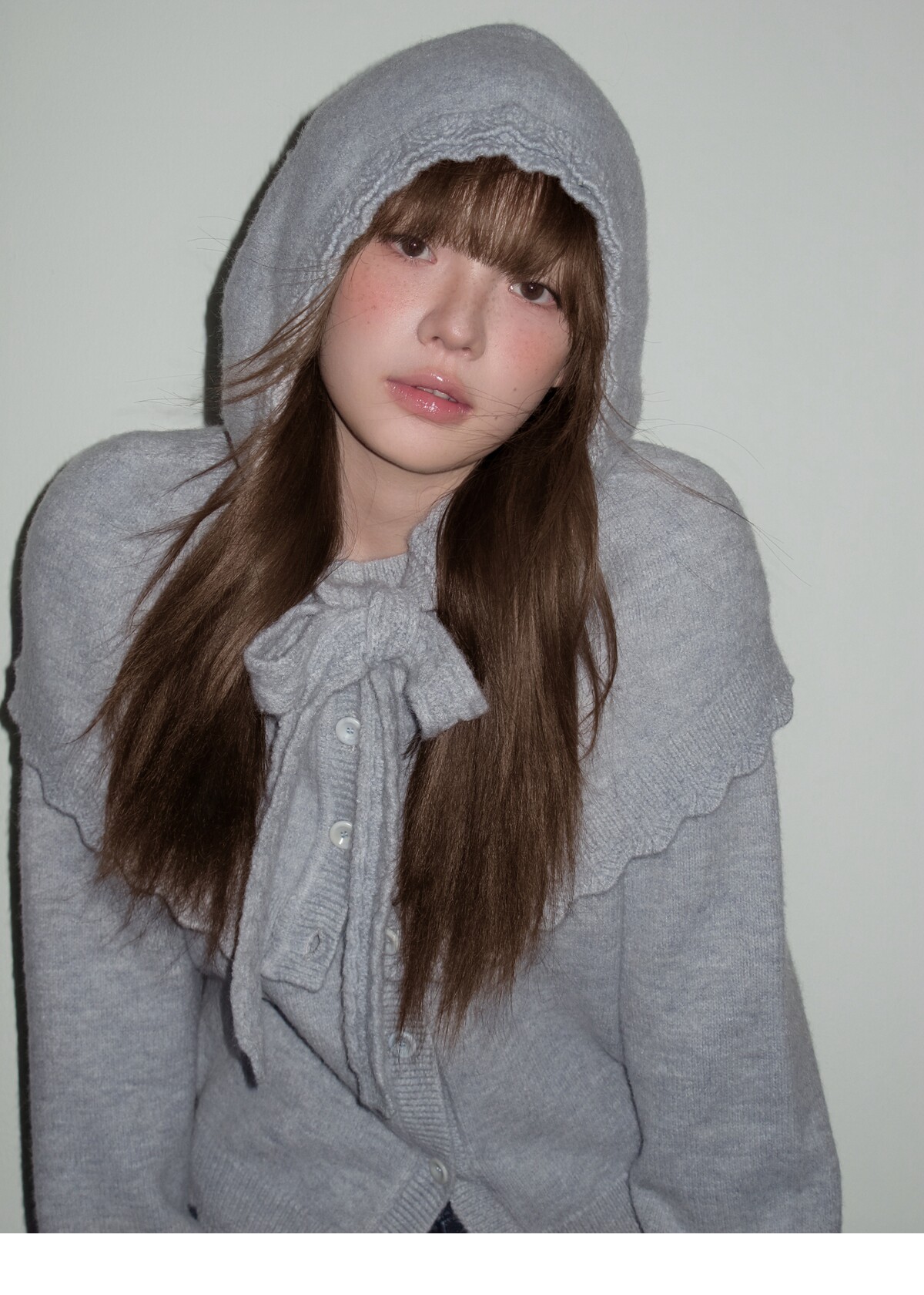 Ruffled Collar and Bow Detail Knit Cardigan NA8824