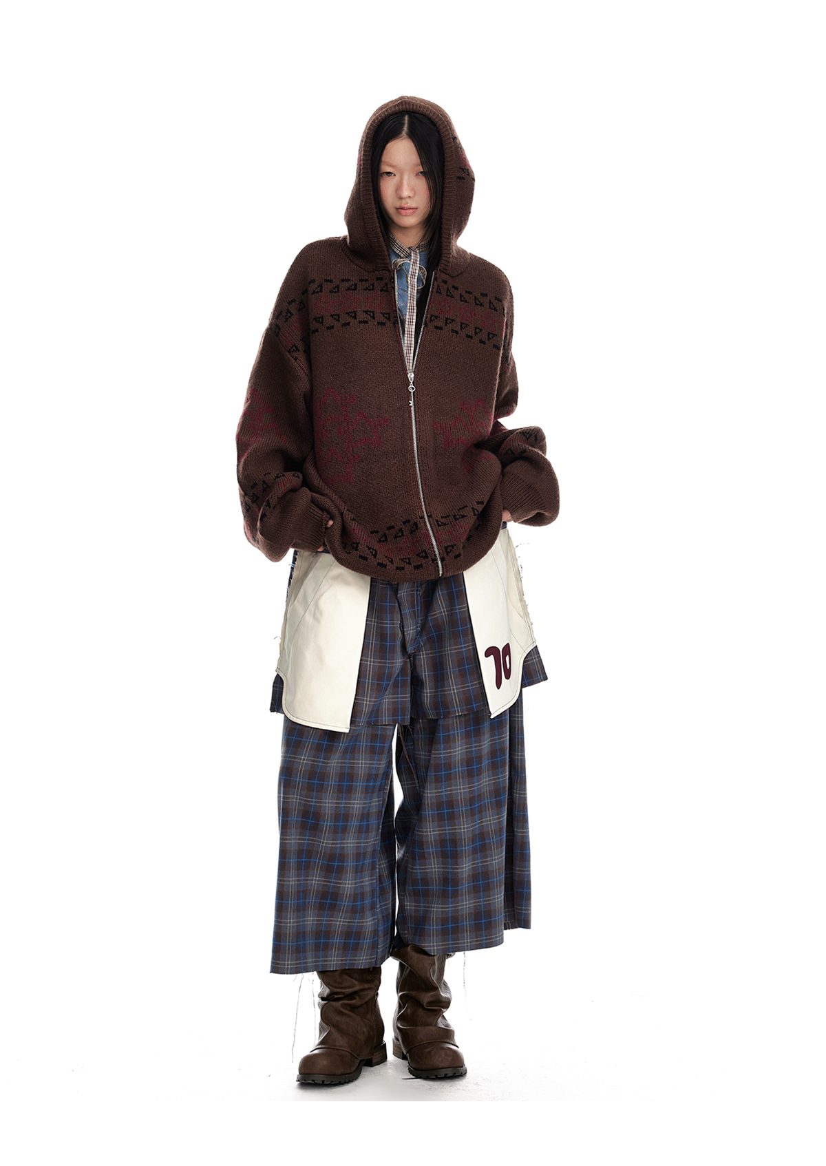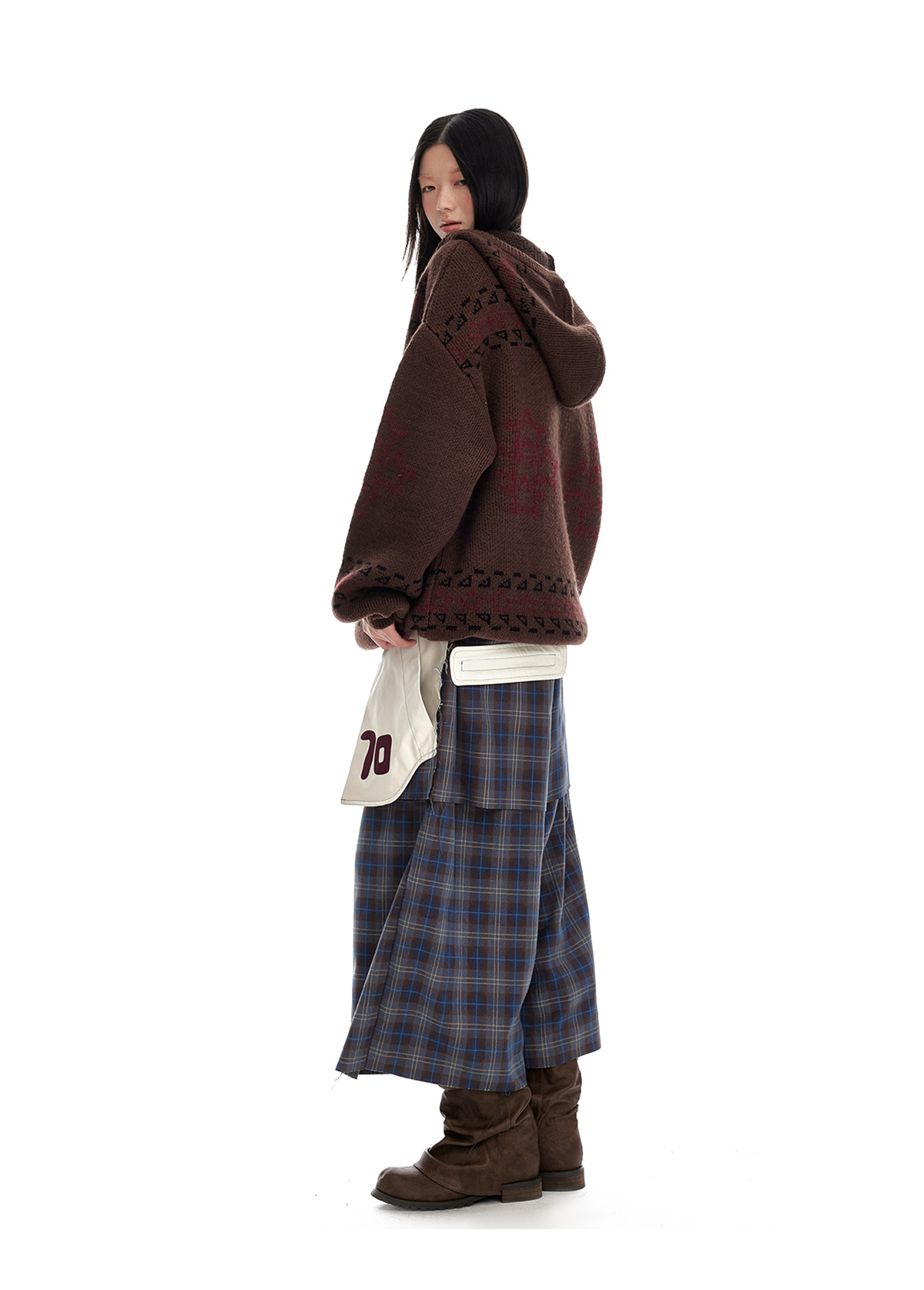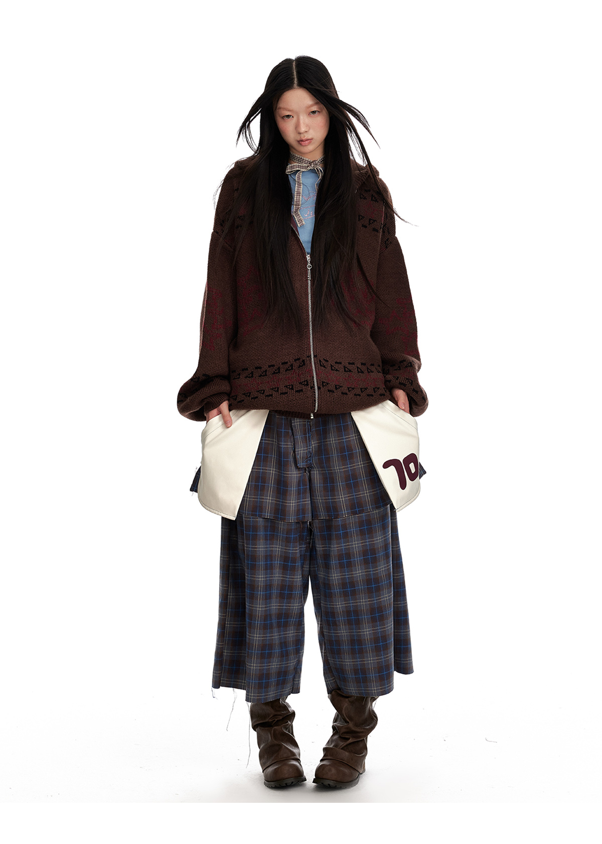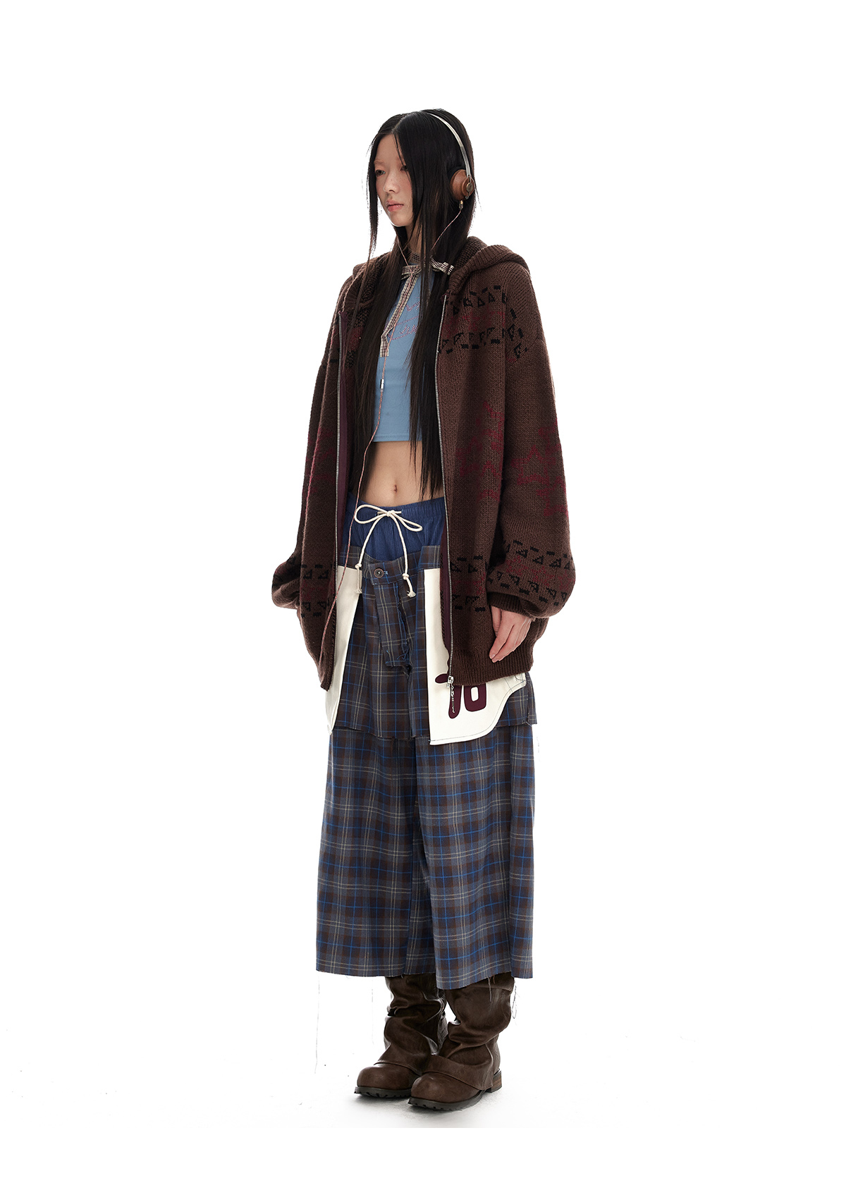 Plaid Fabric Fake Layered Patchwork Wide-Leg Pants NA7071