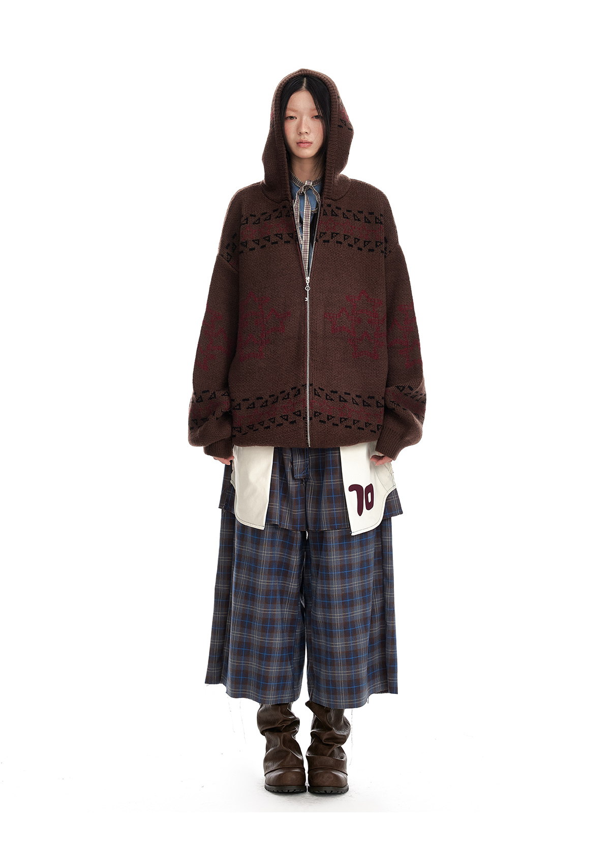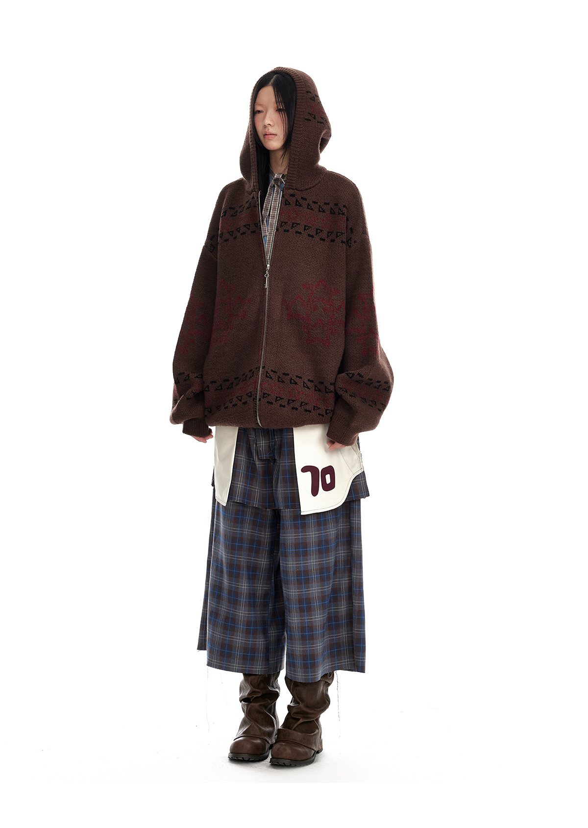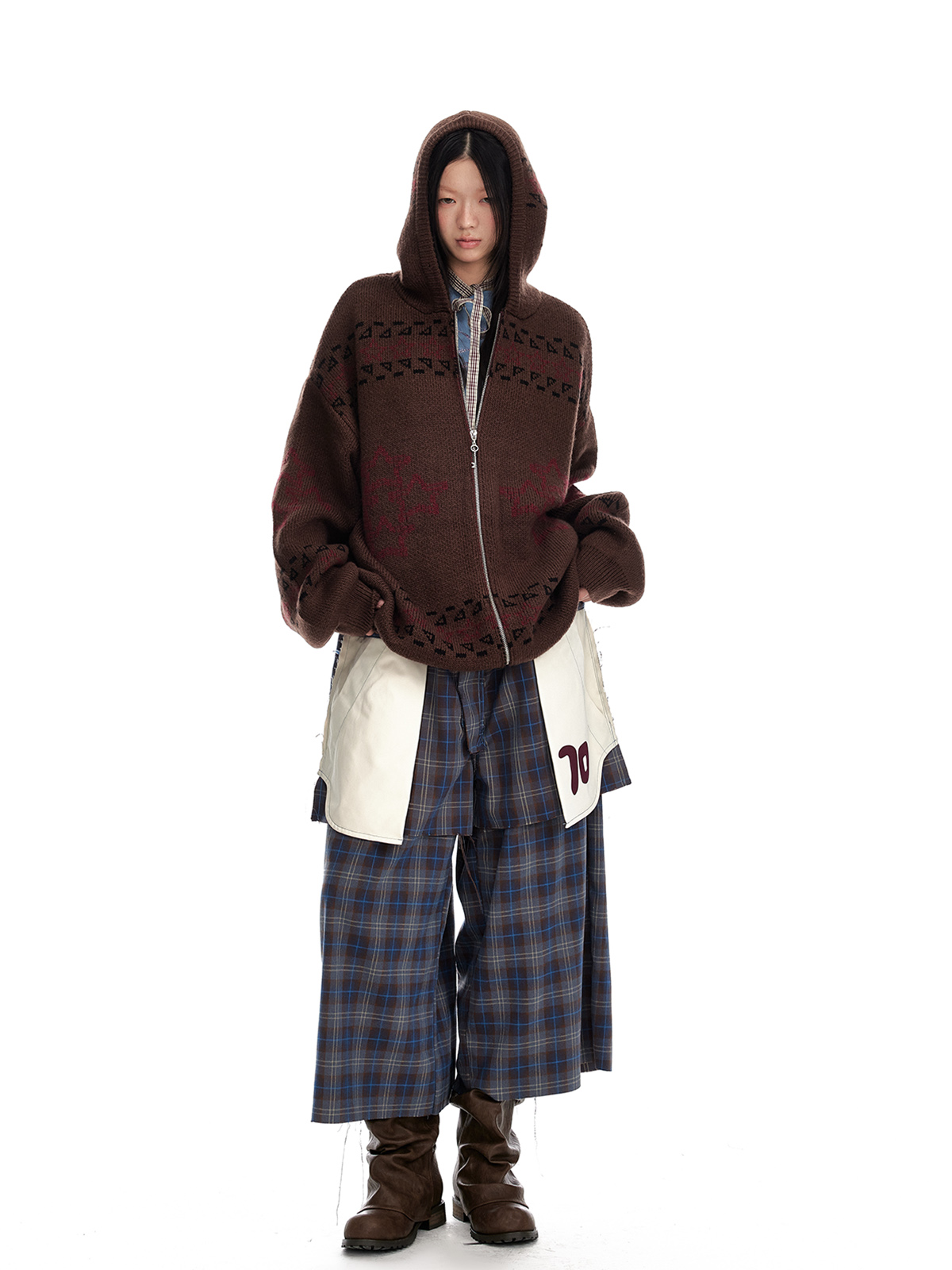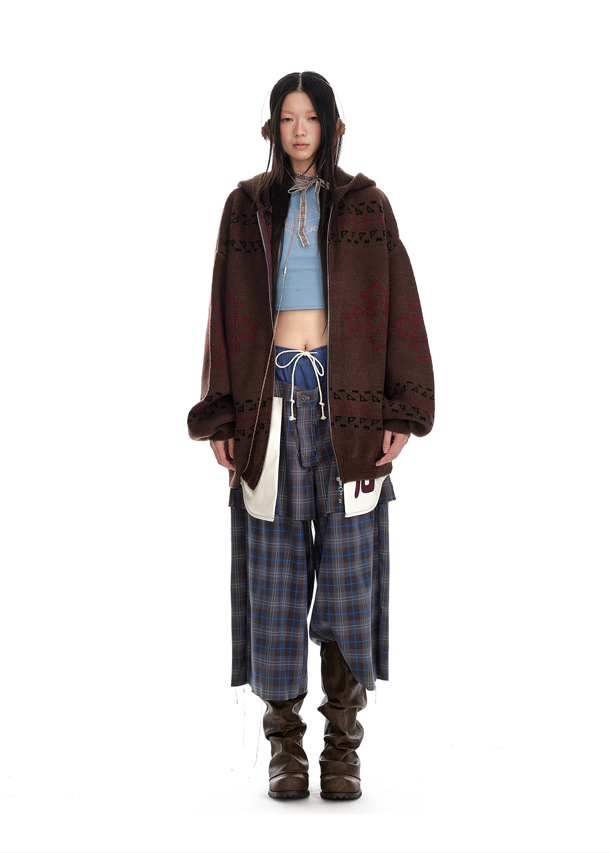Plaid Fabric Fake Layered Patchwork Wide-Leg Pants NA7071