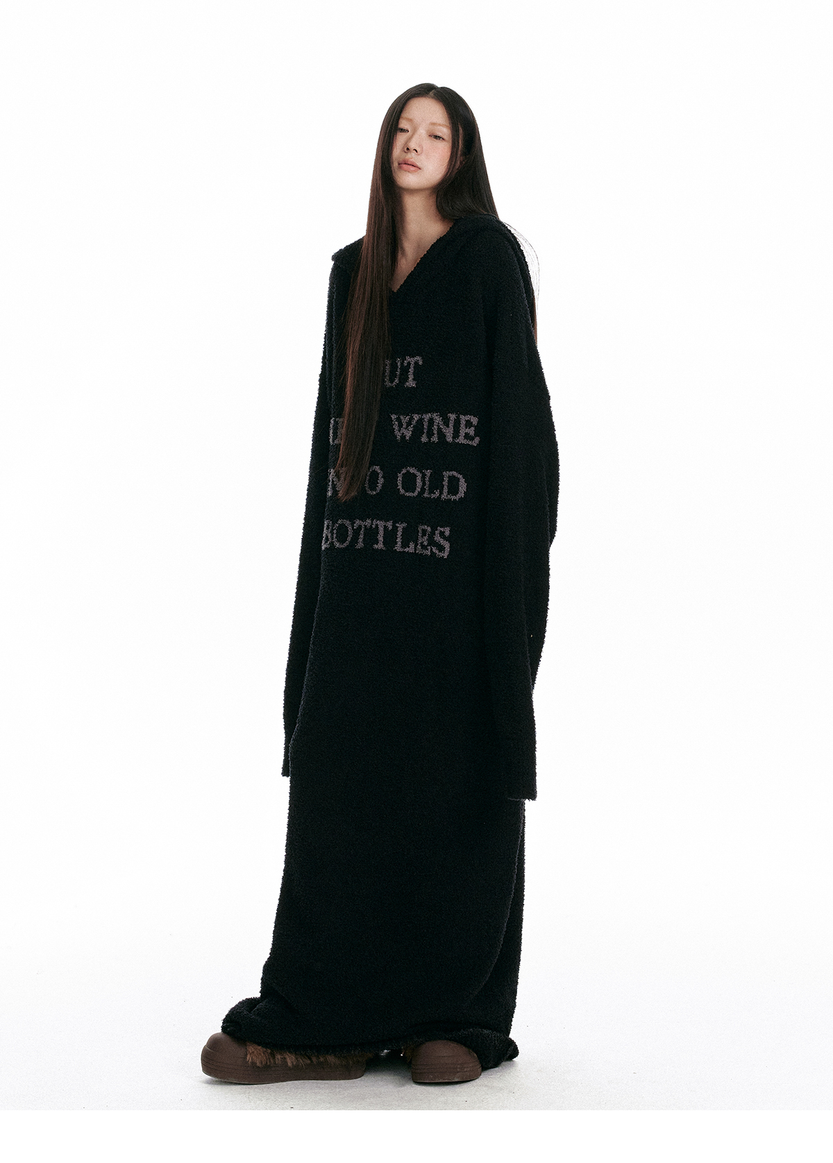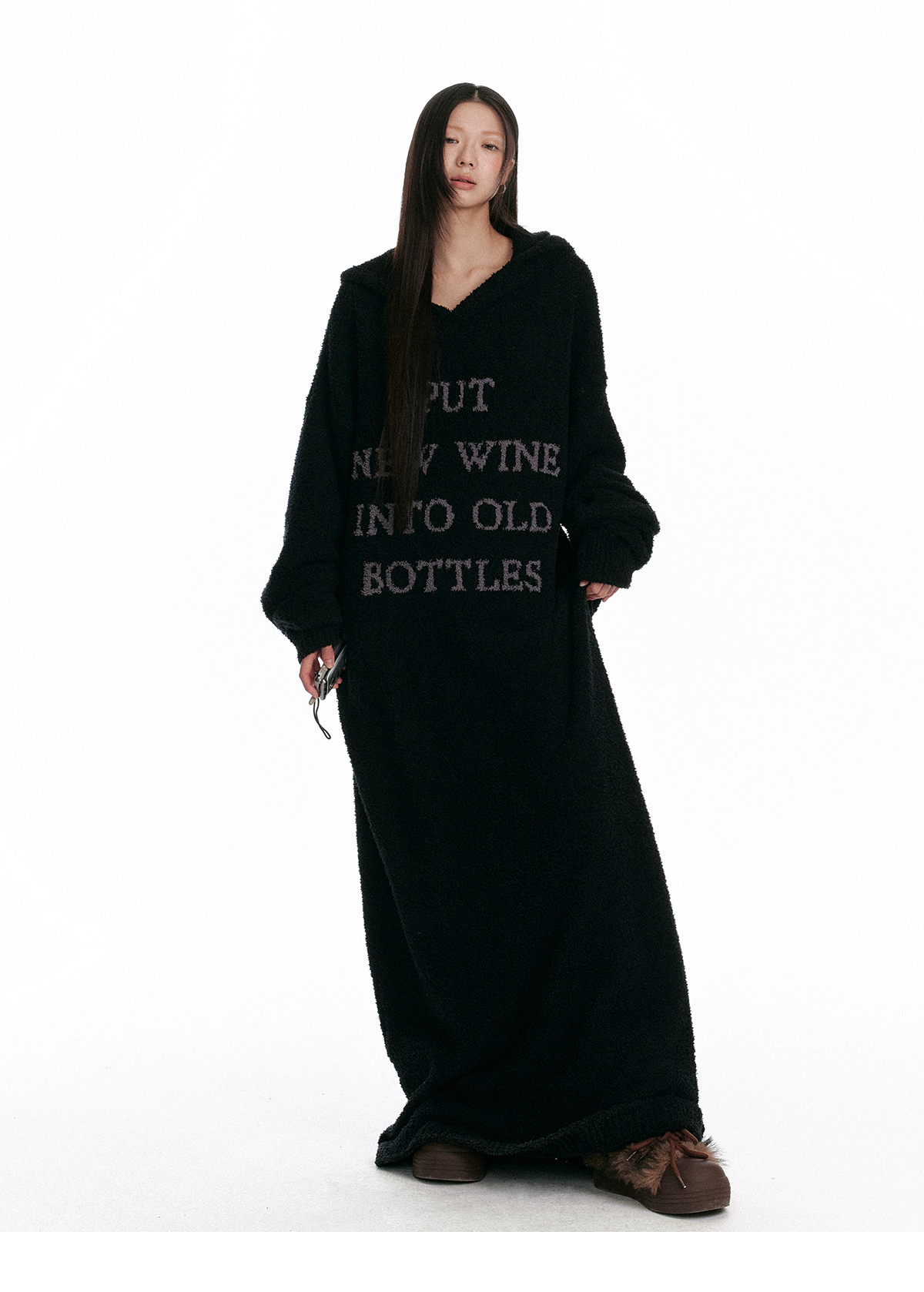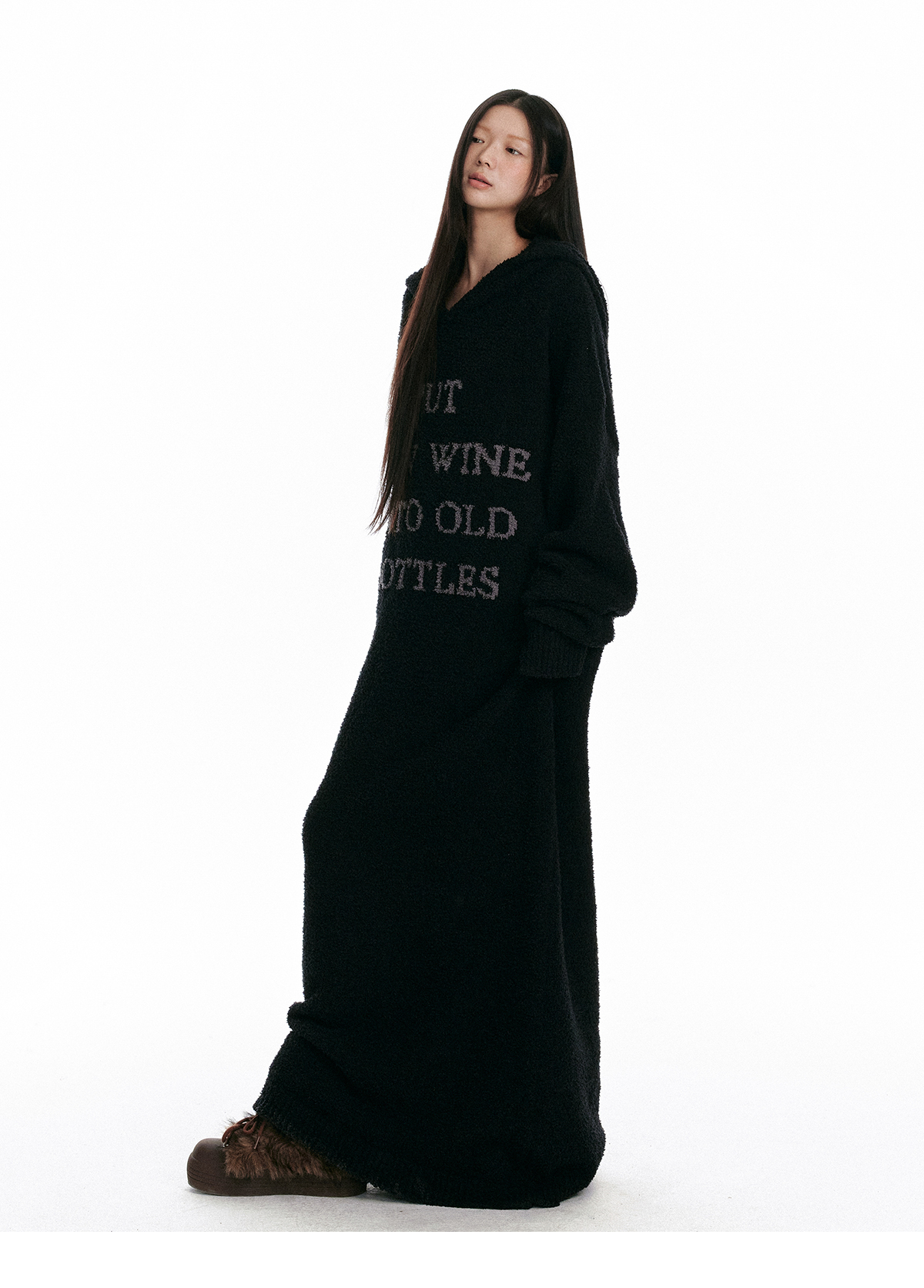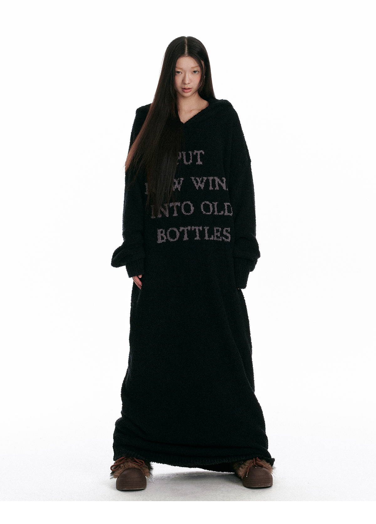 Fuzzy Hooded Knit Over-Knee Robe Dress NA7088