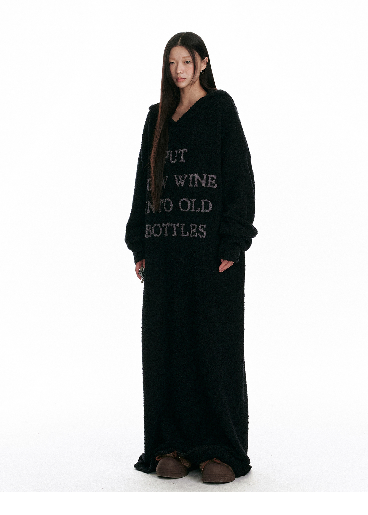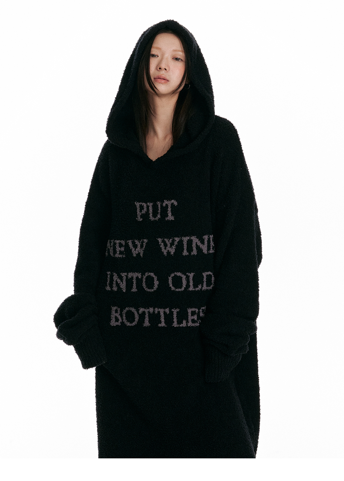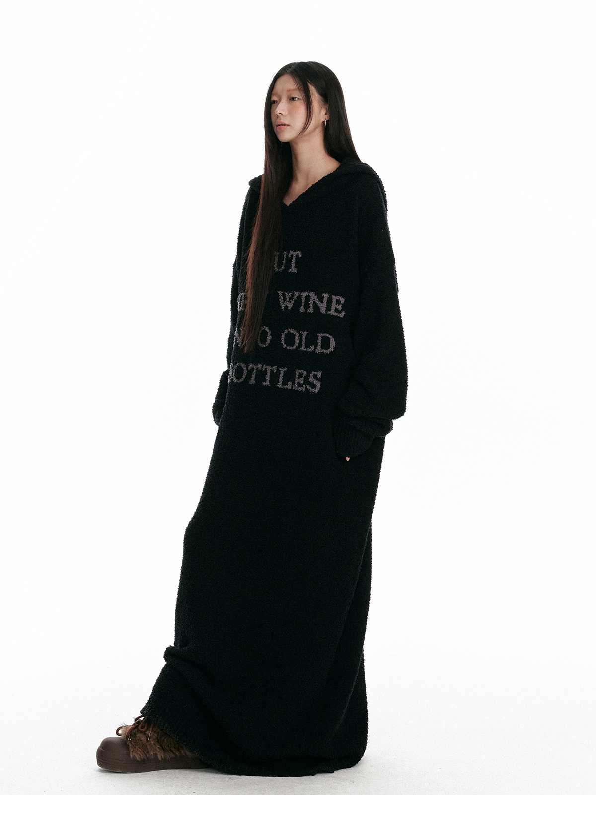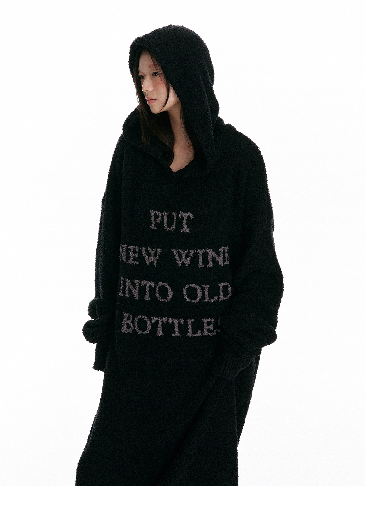 Fuzzy Hooded Knit Over-Knee Robe Dress NA7088