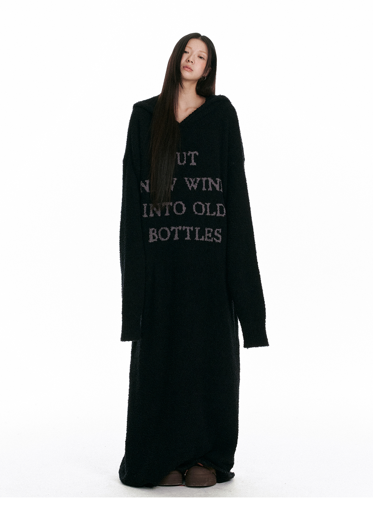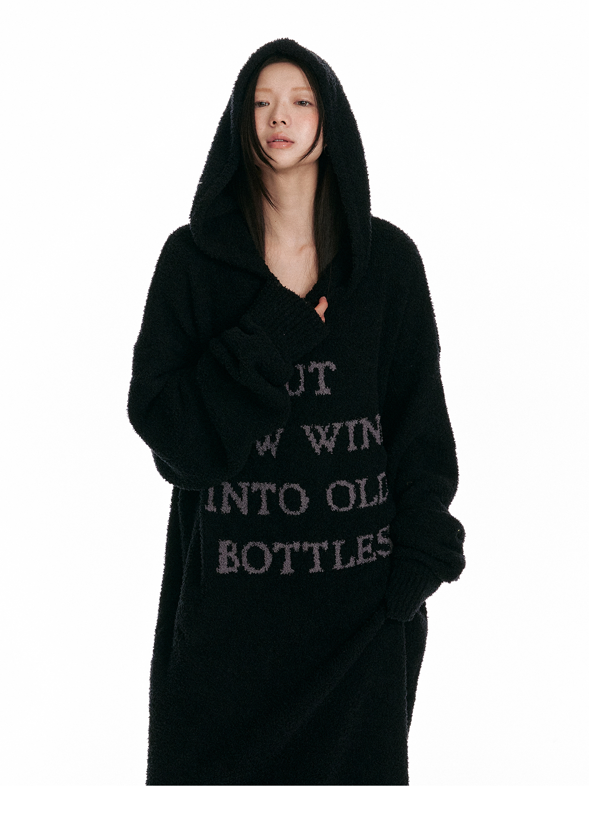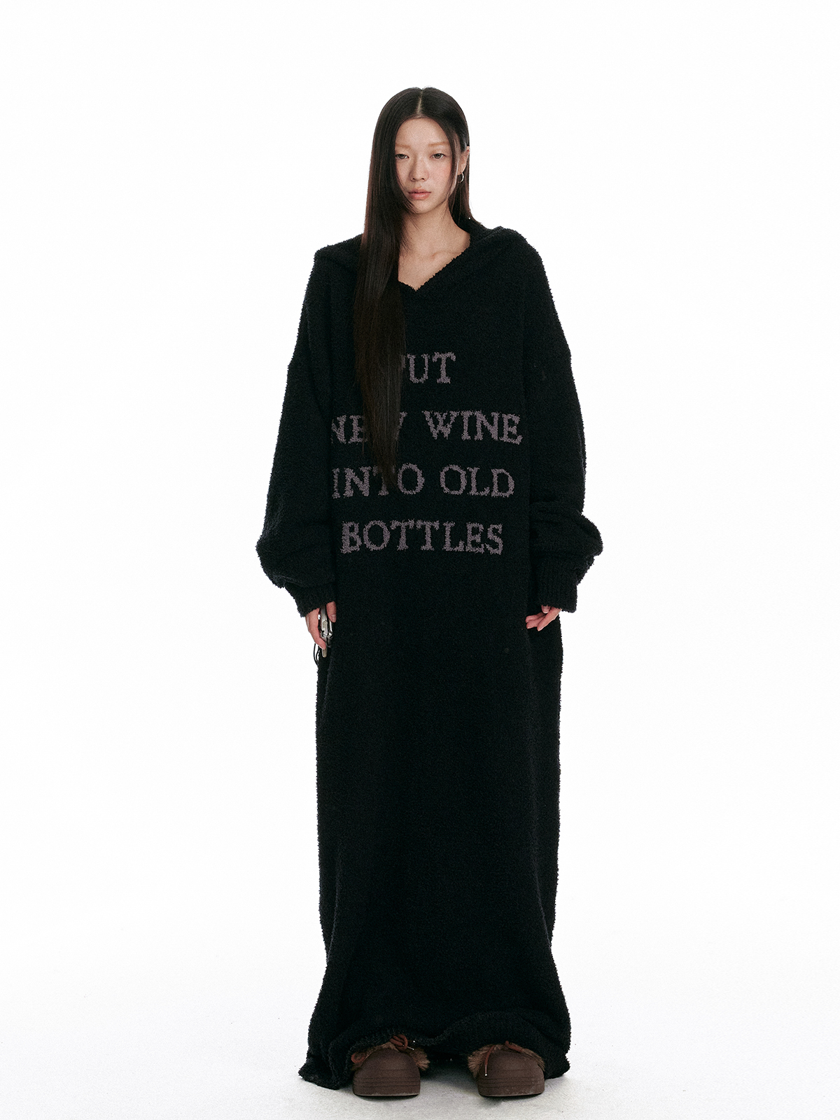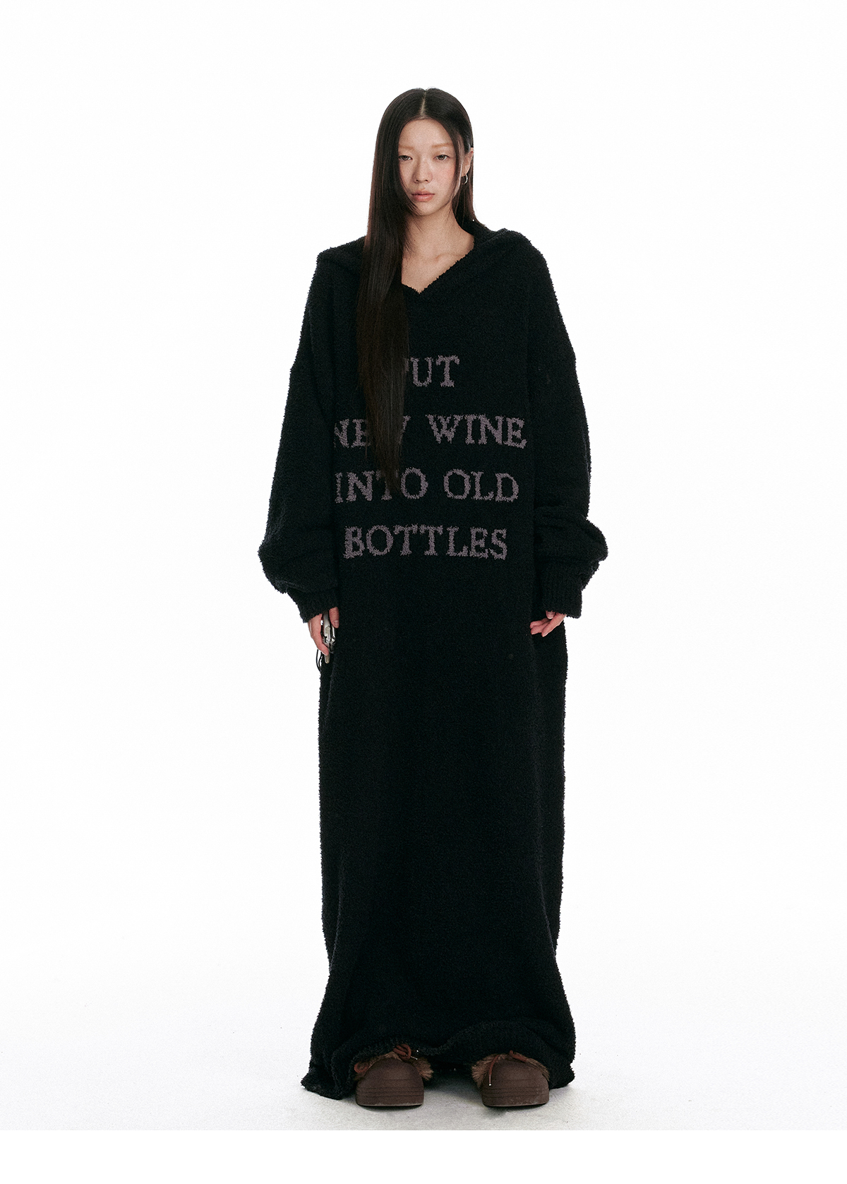 Fuzzy Hooded Knit Over-Knee Robe Dress NA7088