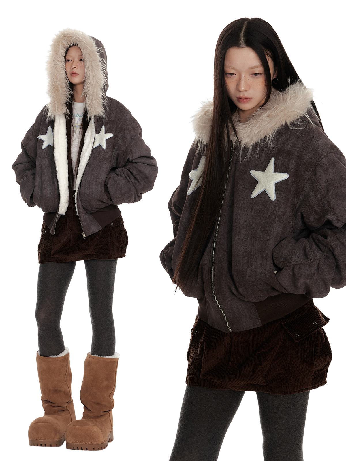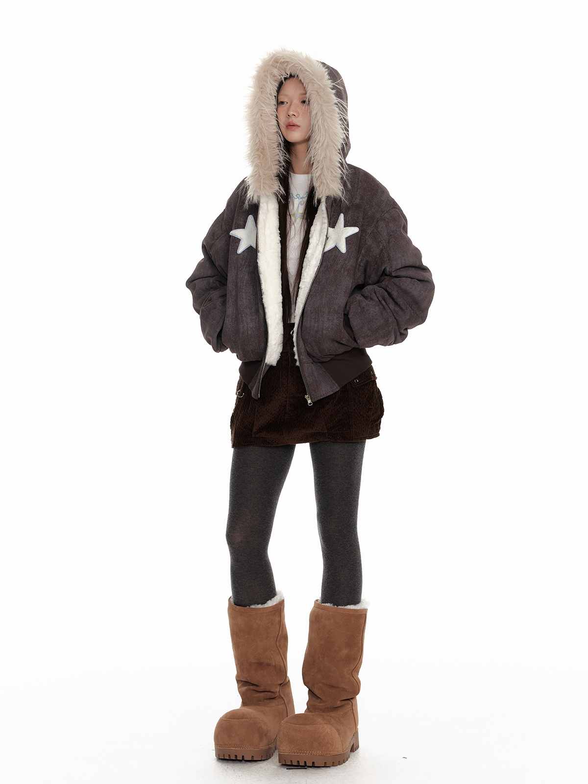 Fur Trim Patchwork Hooded Puffer Jacket NA7104