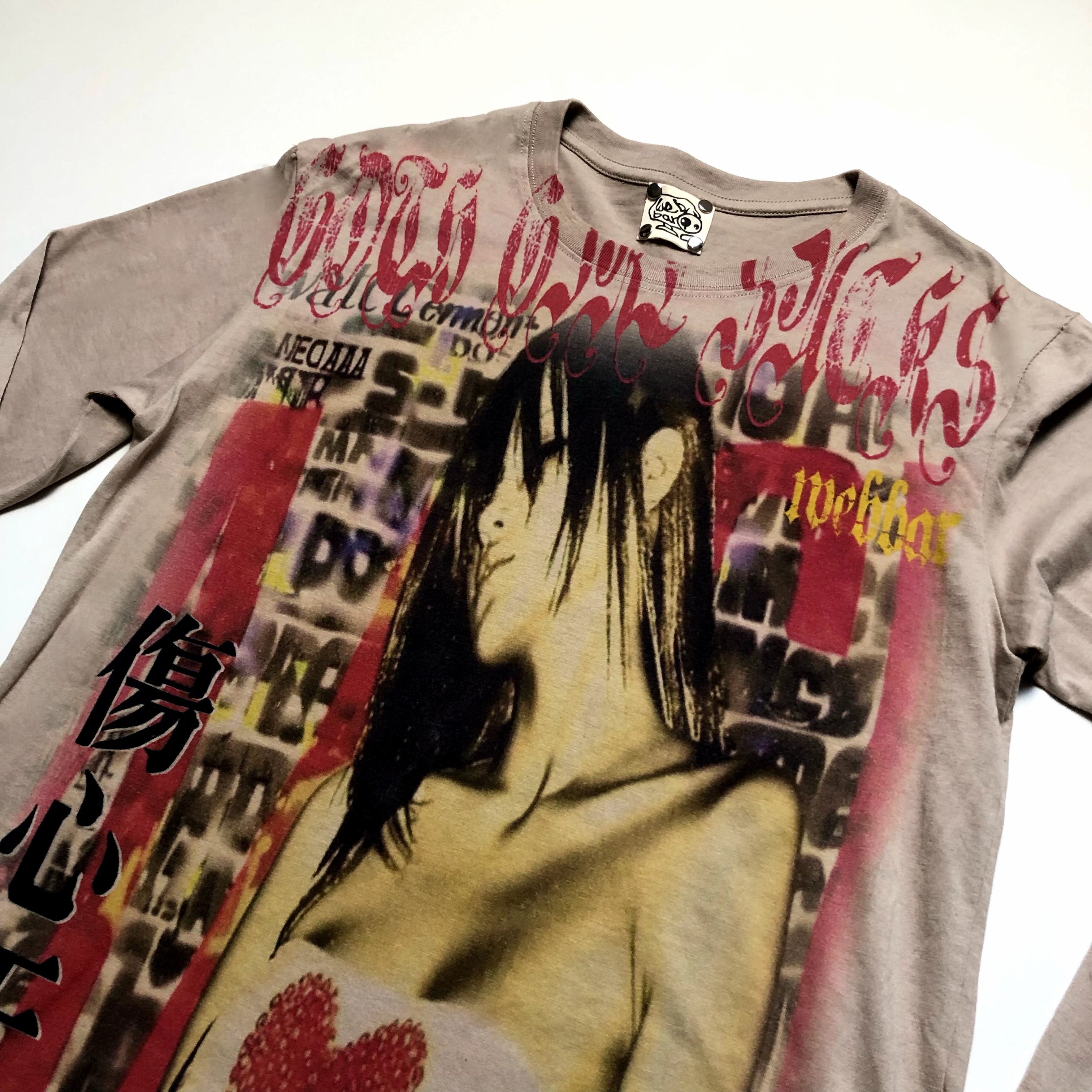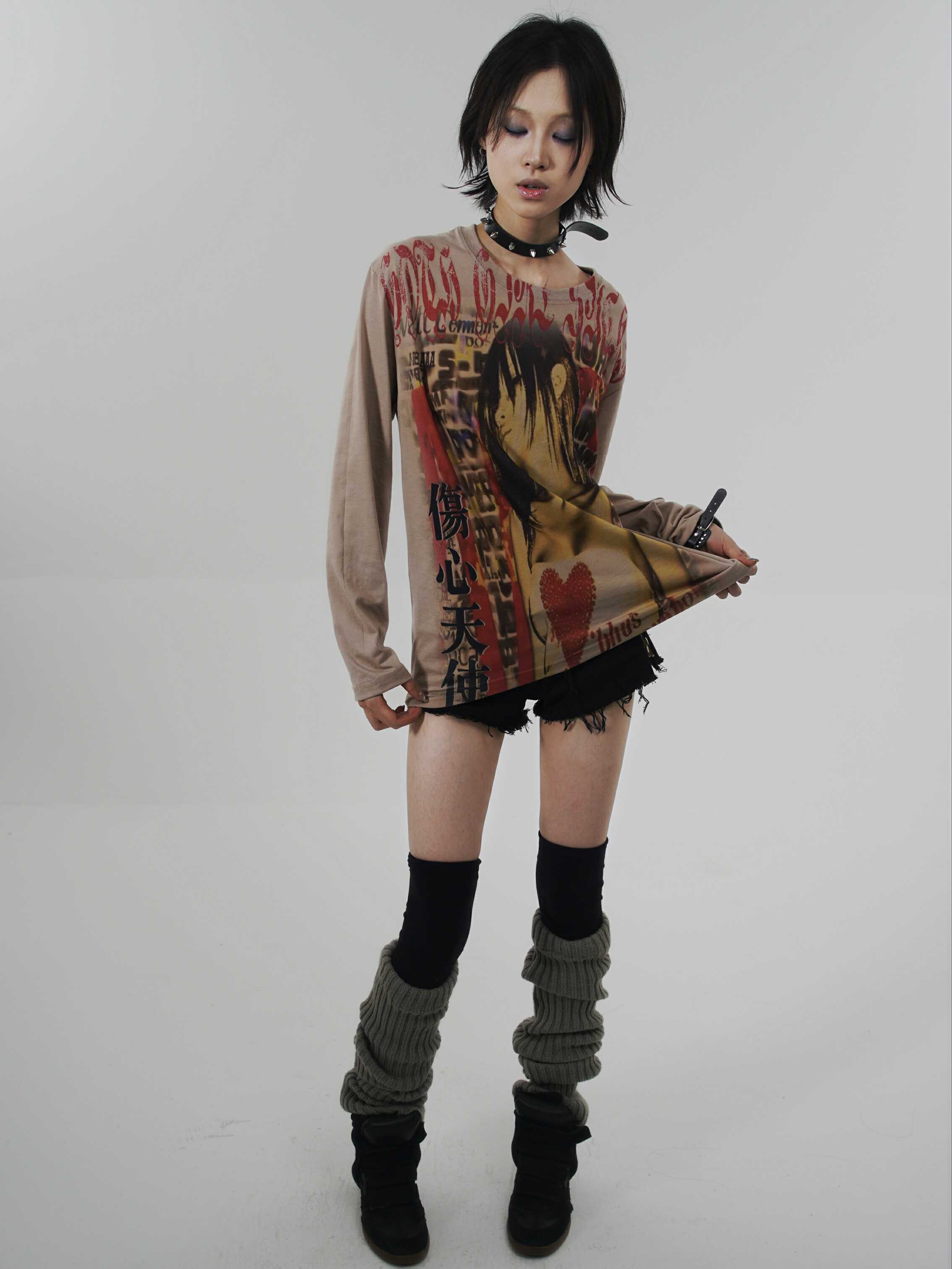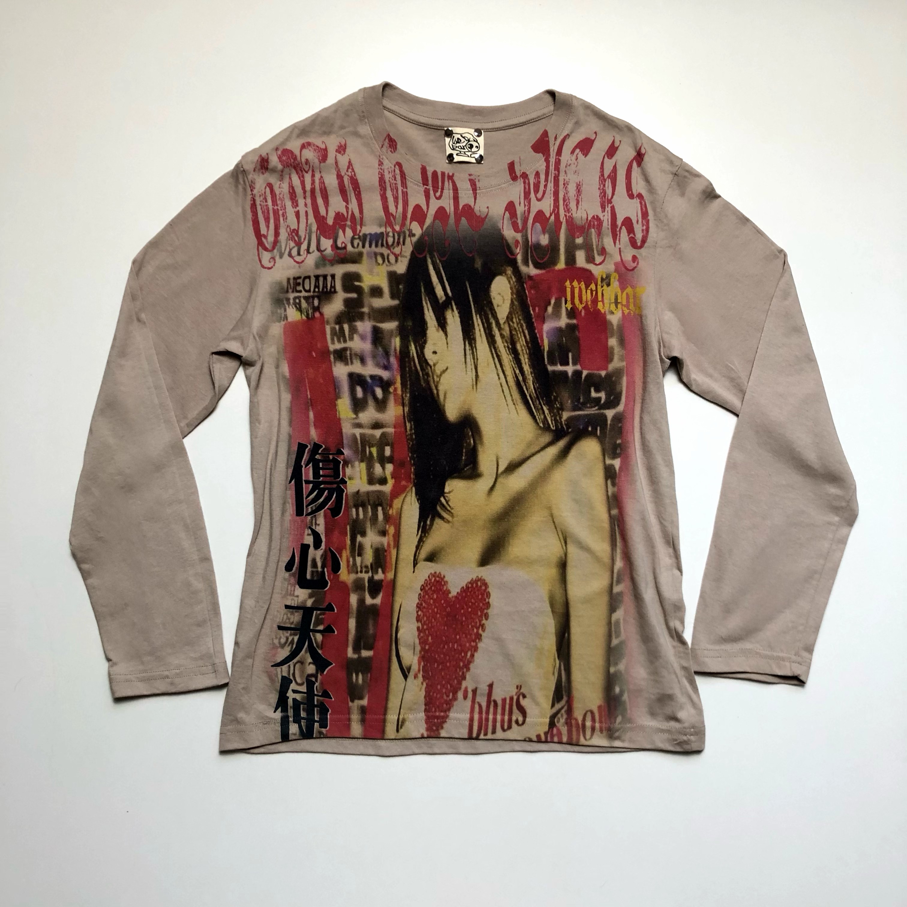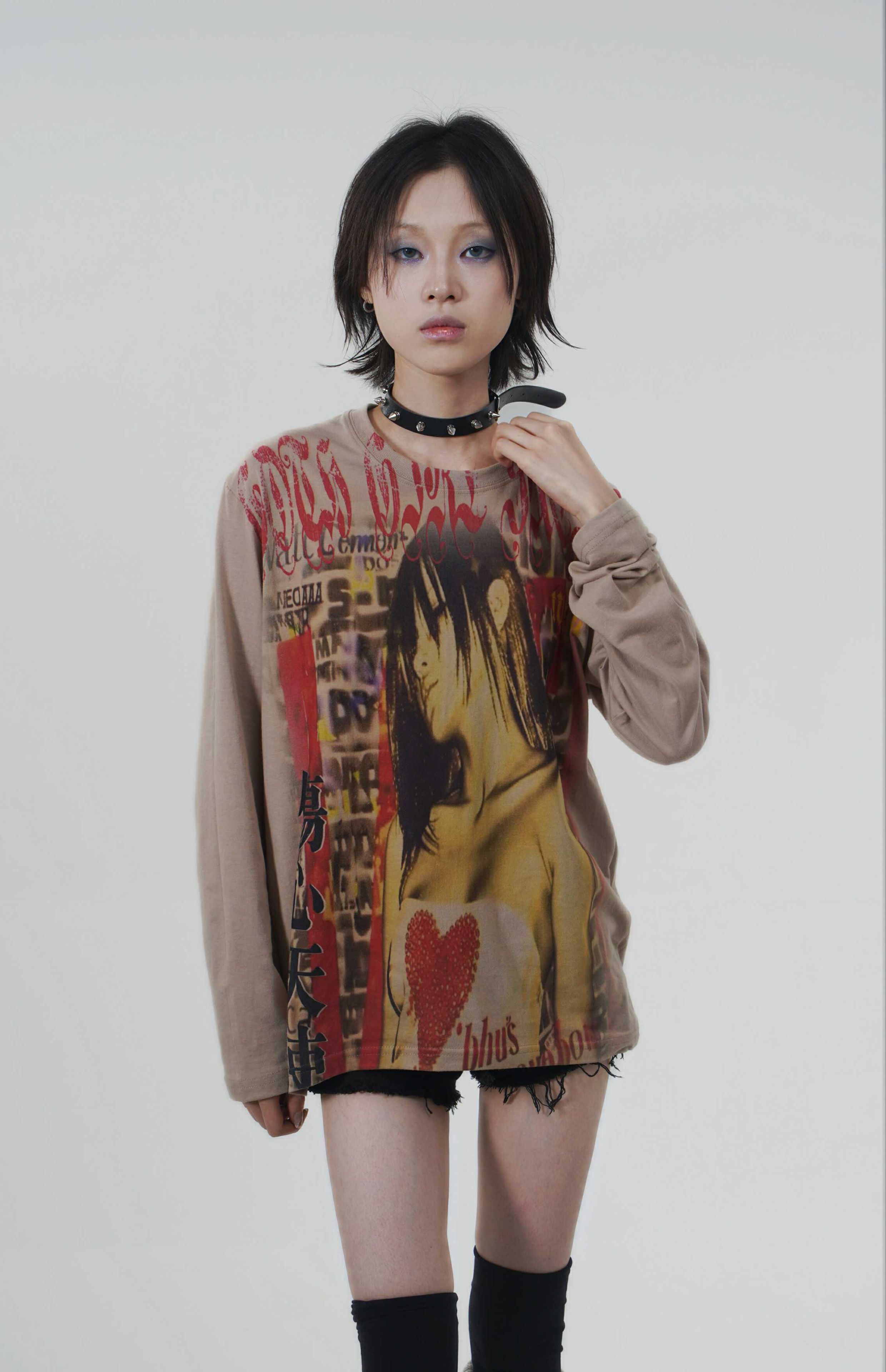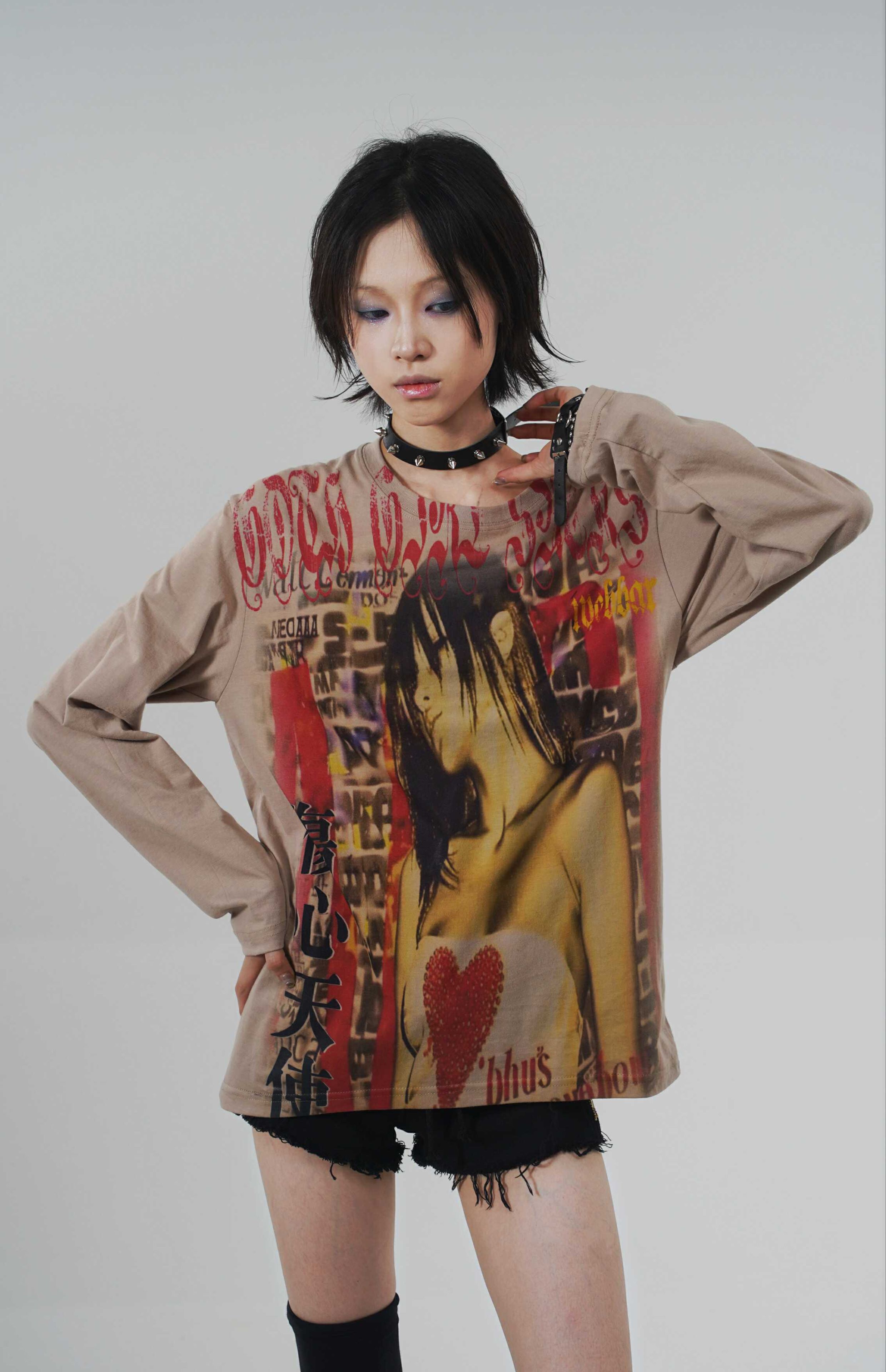 Y2K Japanese Punk Style "Sad Angel" Brown Long Sleeve T-Shirt NA7617