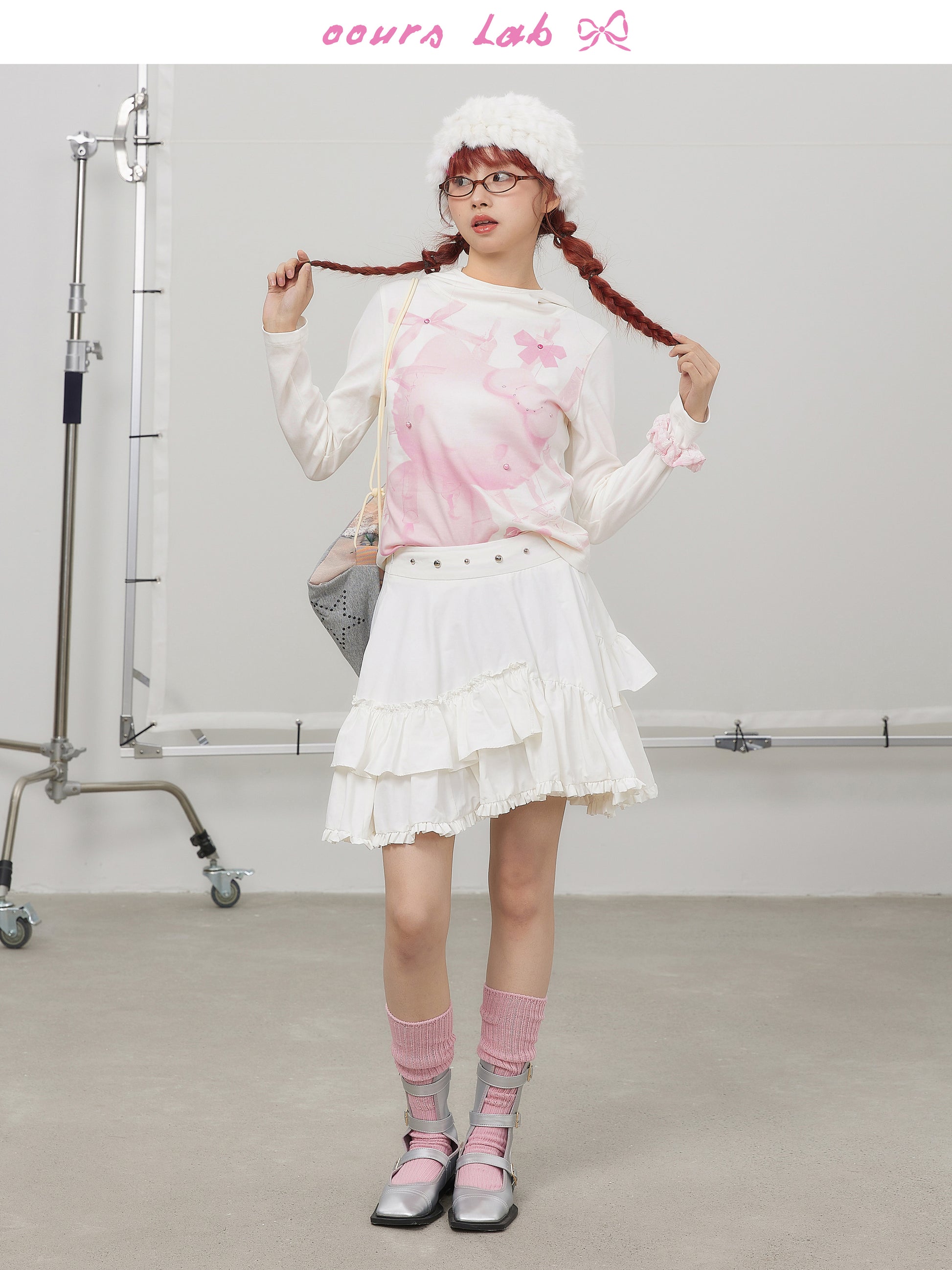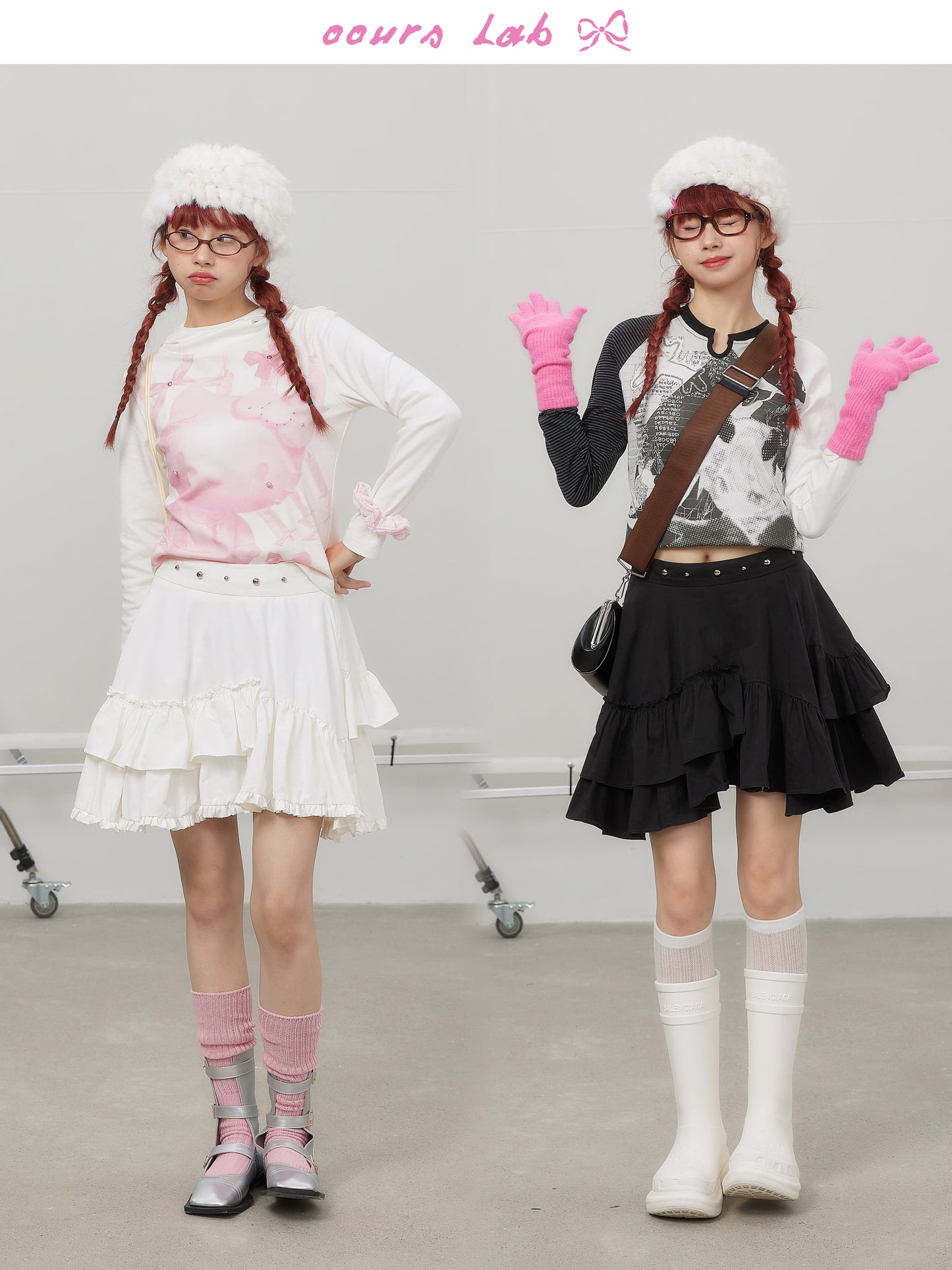 Ballet Style Asymmetrical Studs Tiered A-Line Skirt NA8214