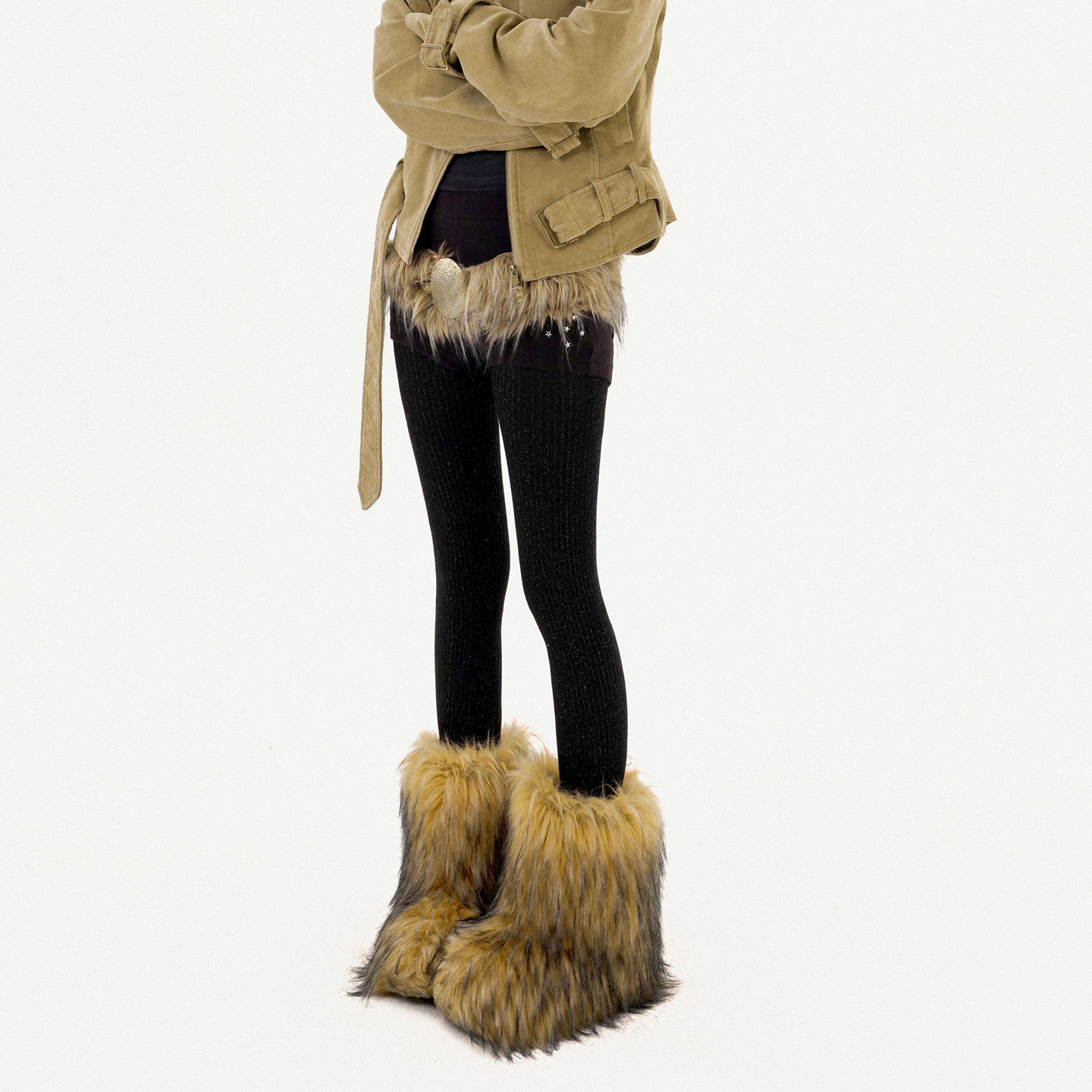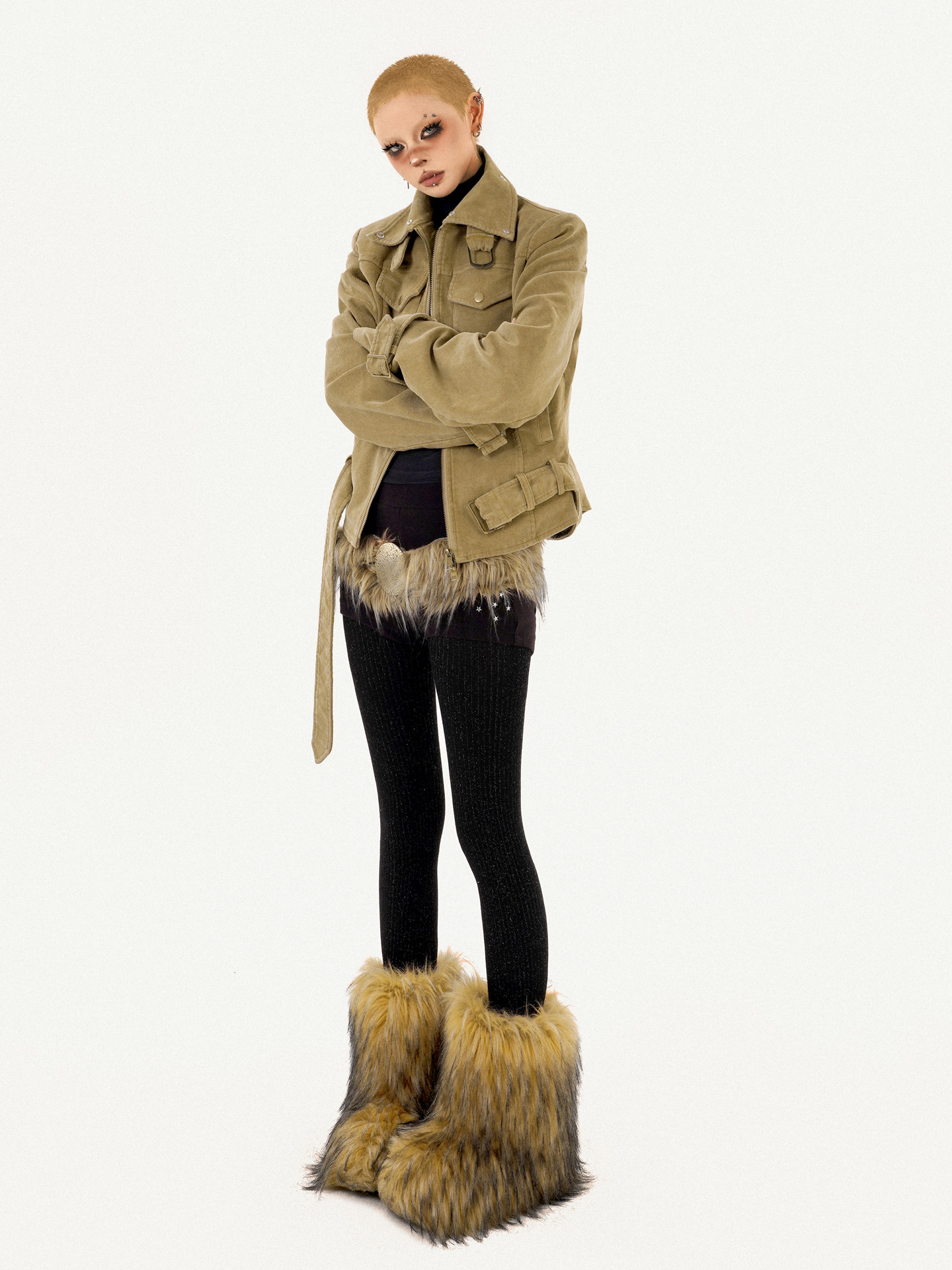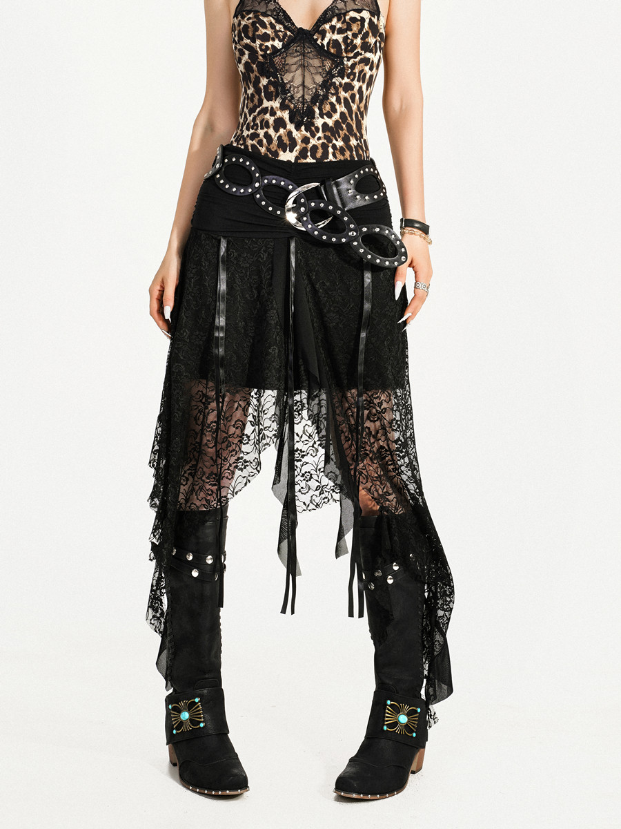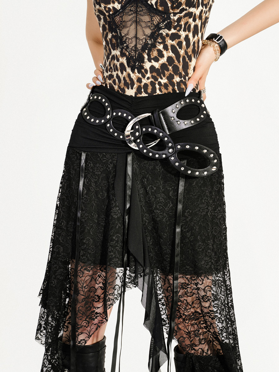 Cutout Ring PU Leather Furry Belt NA8638
