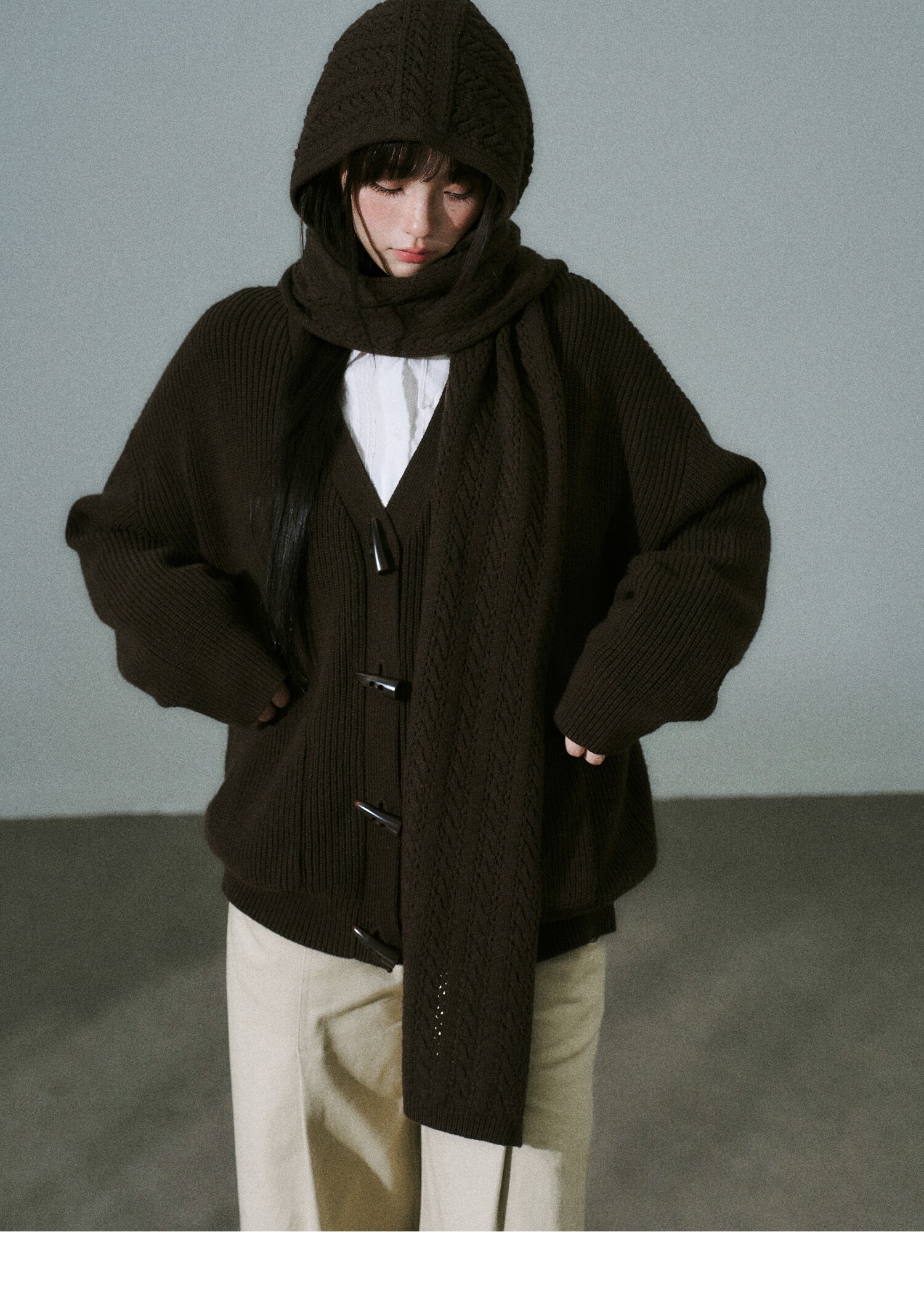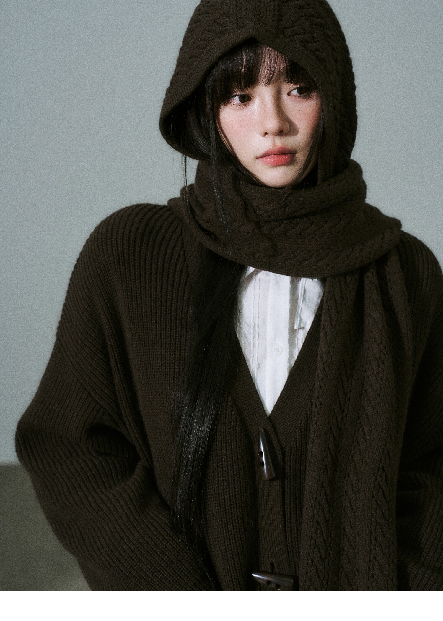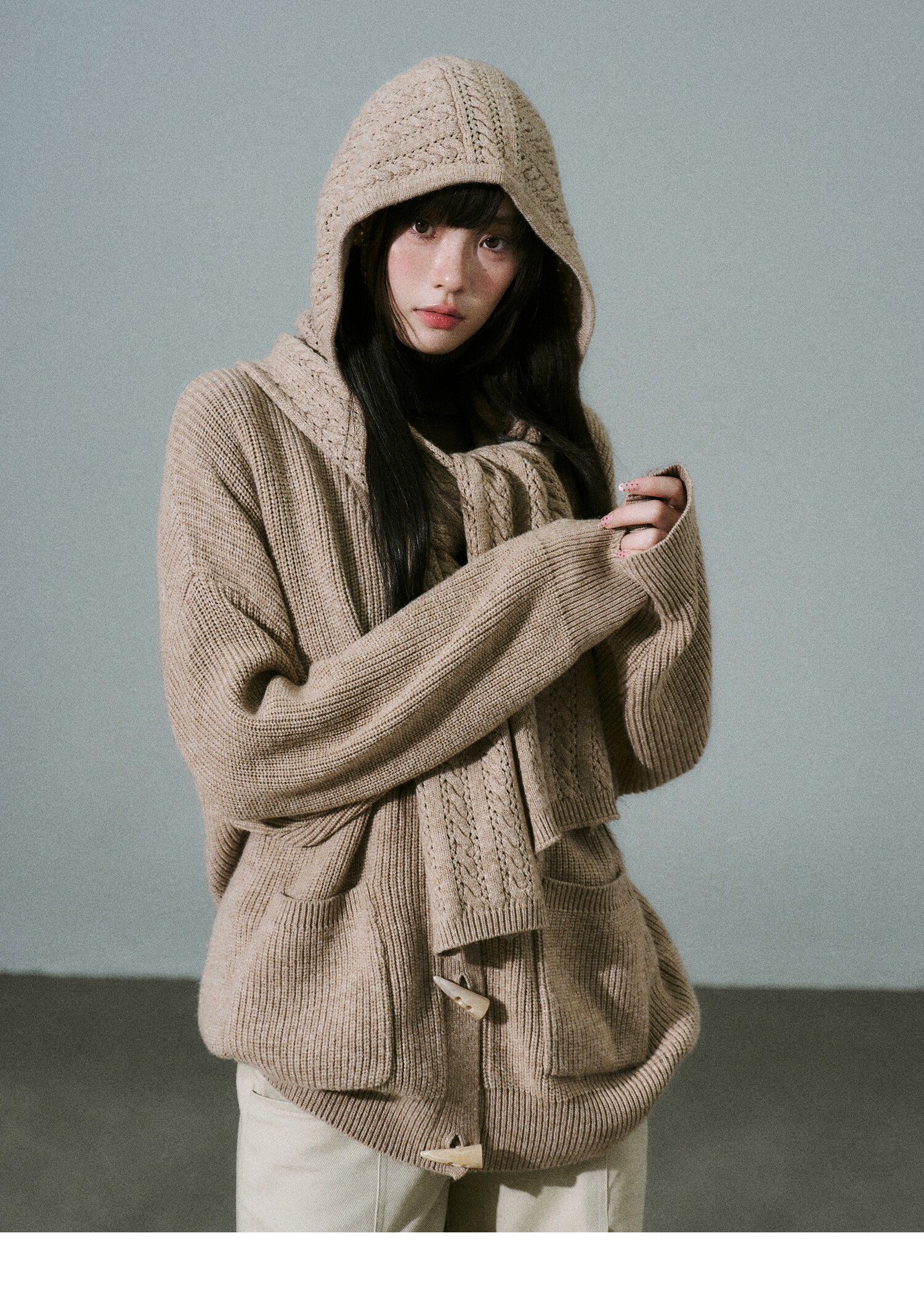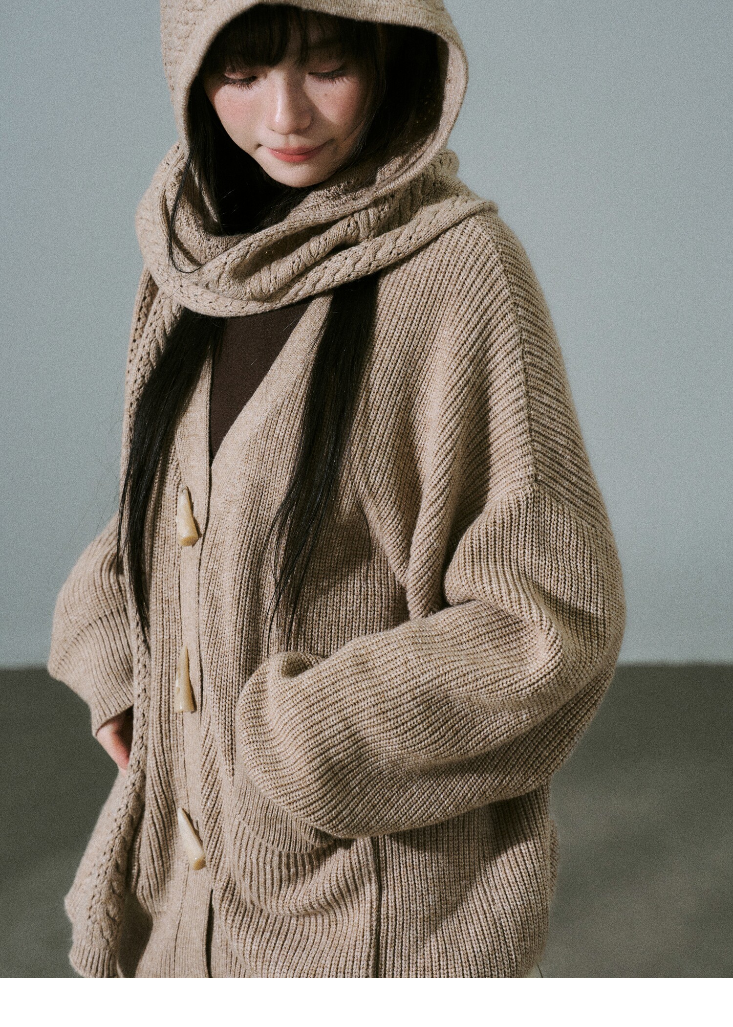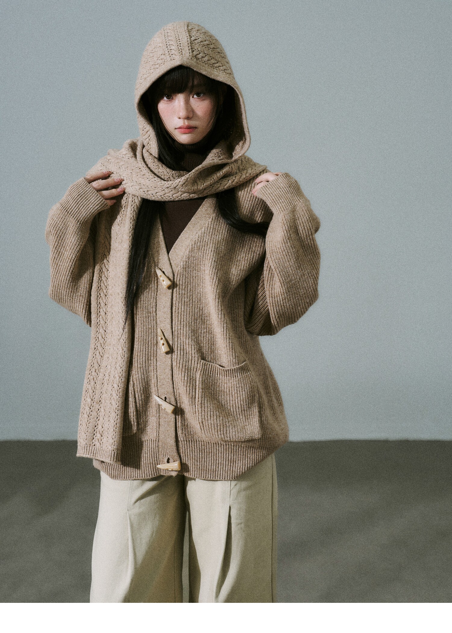 Hooded Horn Button Fleece Lining Knit Cardigan NA8782