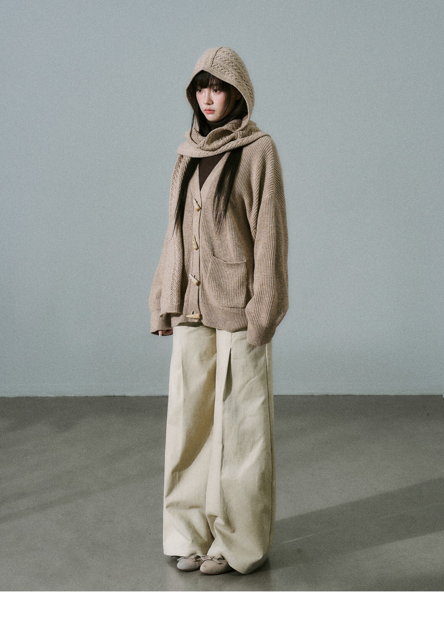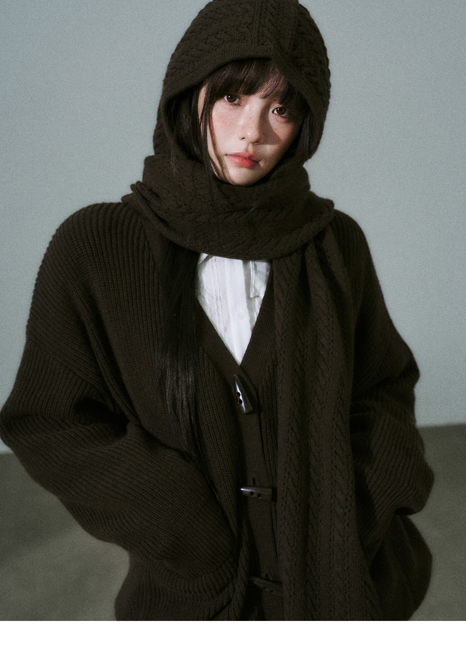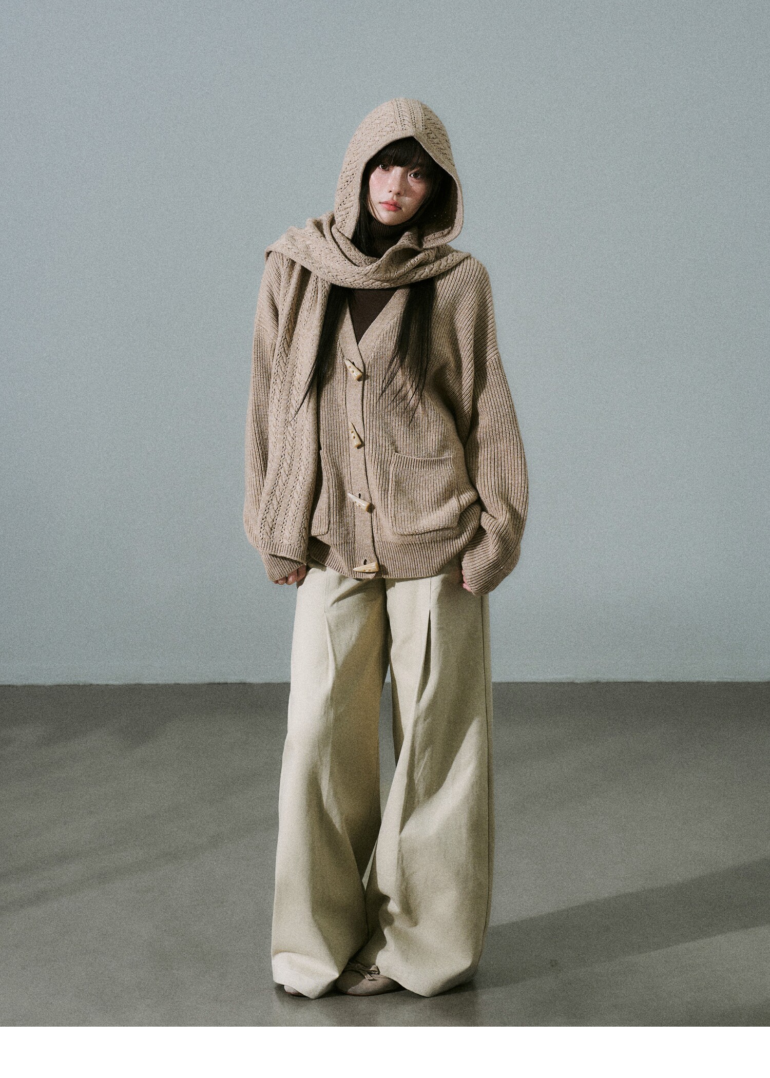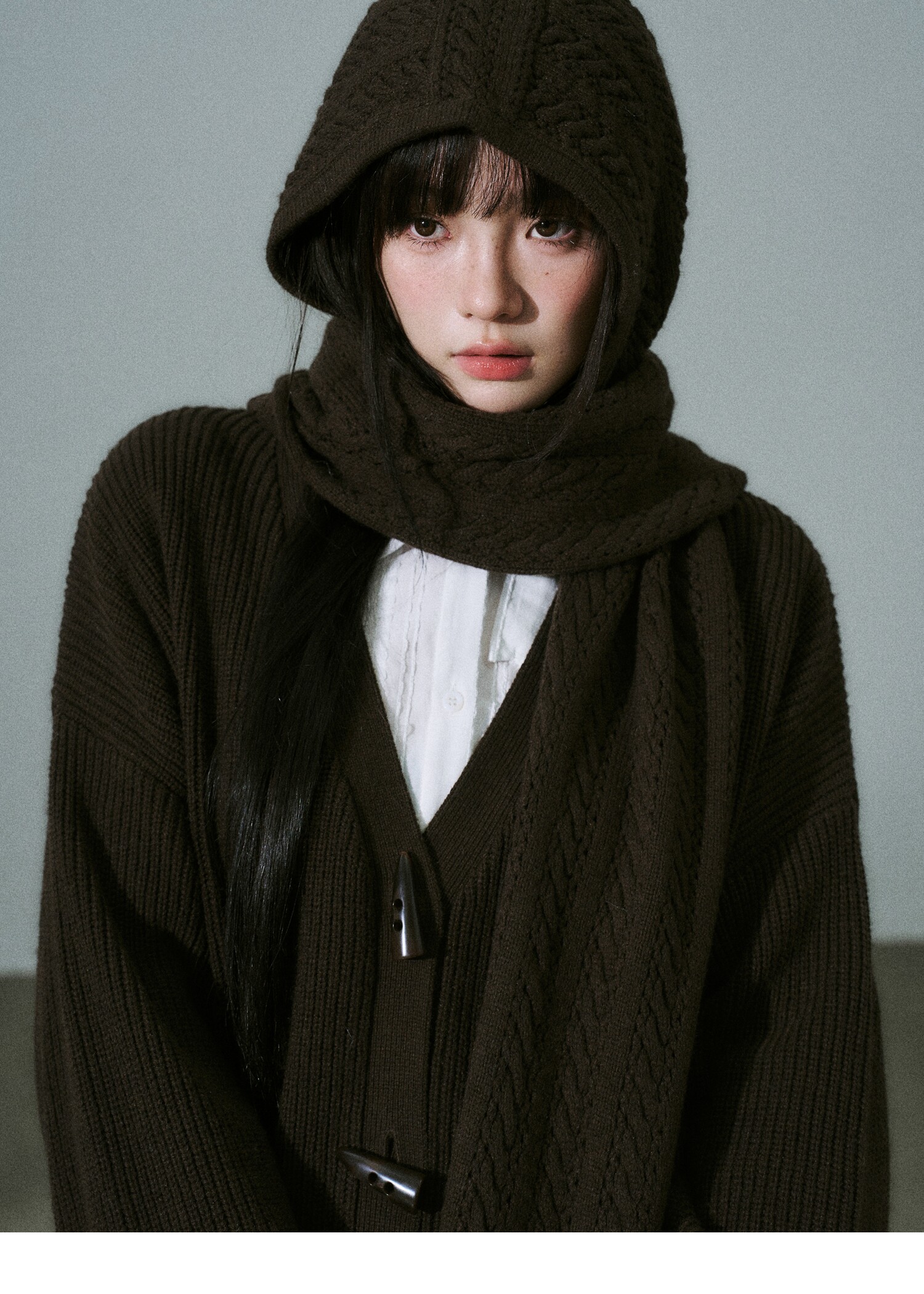 Hooded Horn Button Fleece Lining Knit Cardigan NA8782