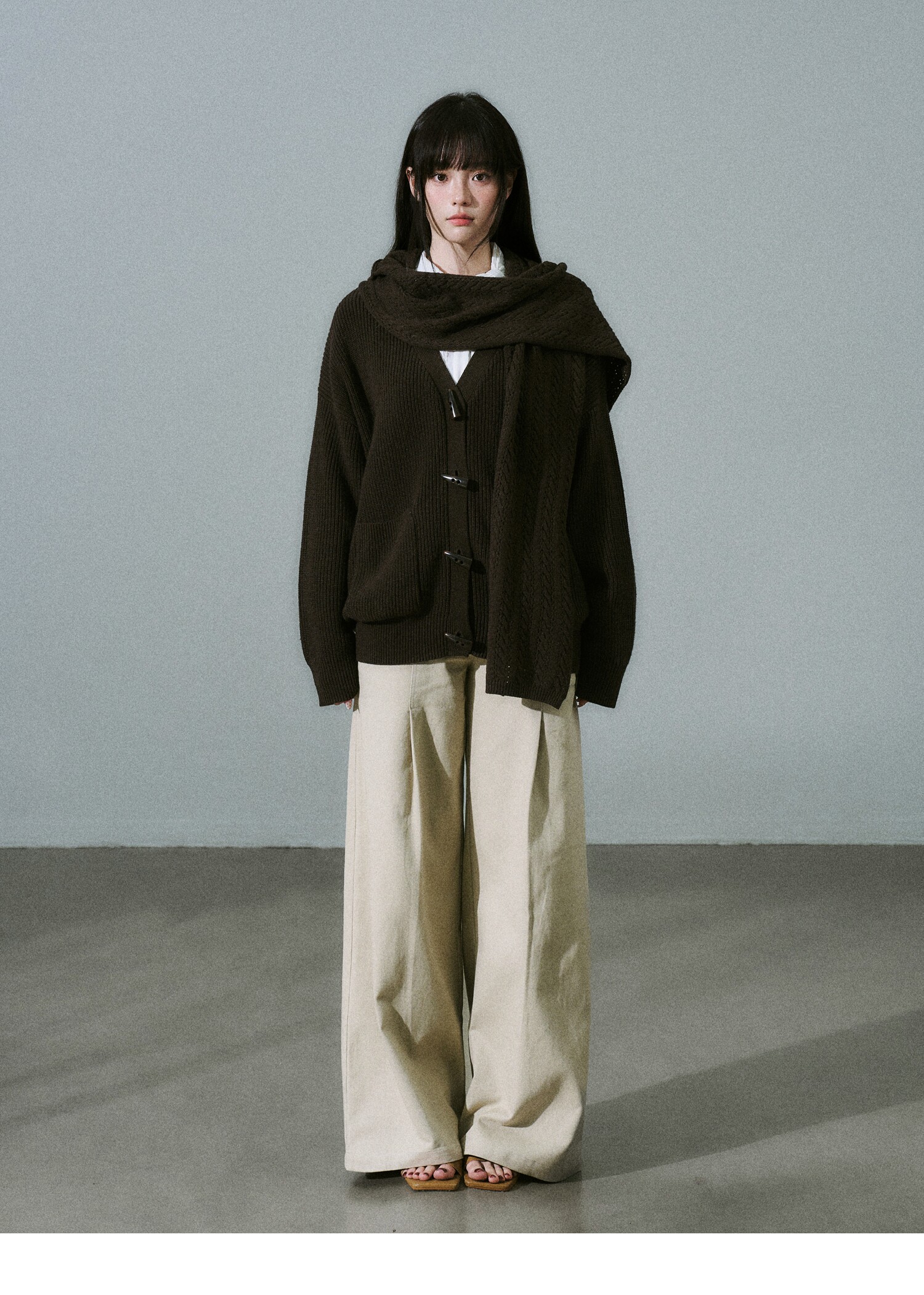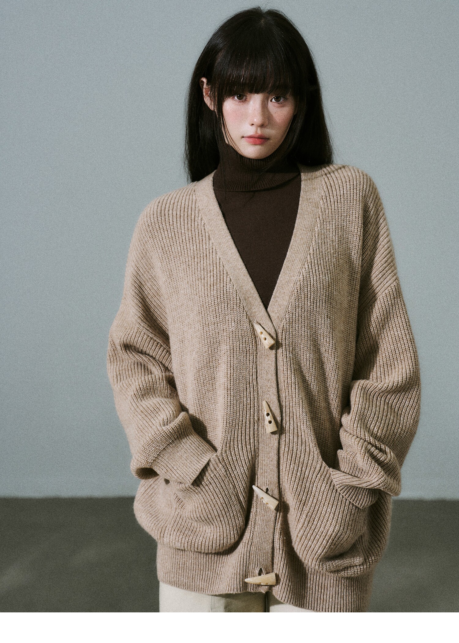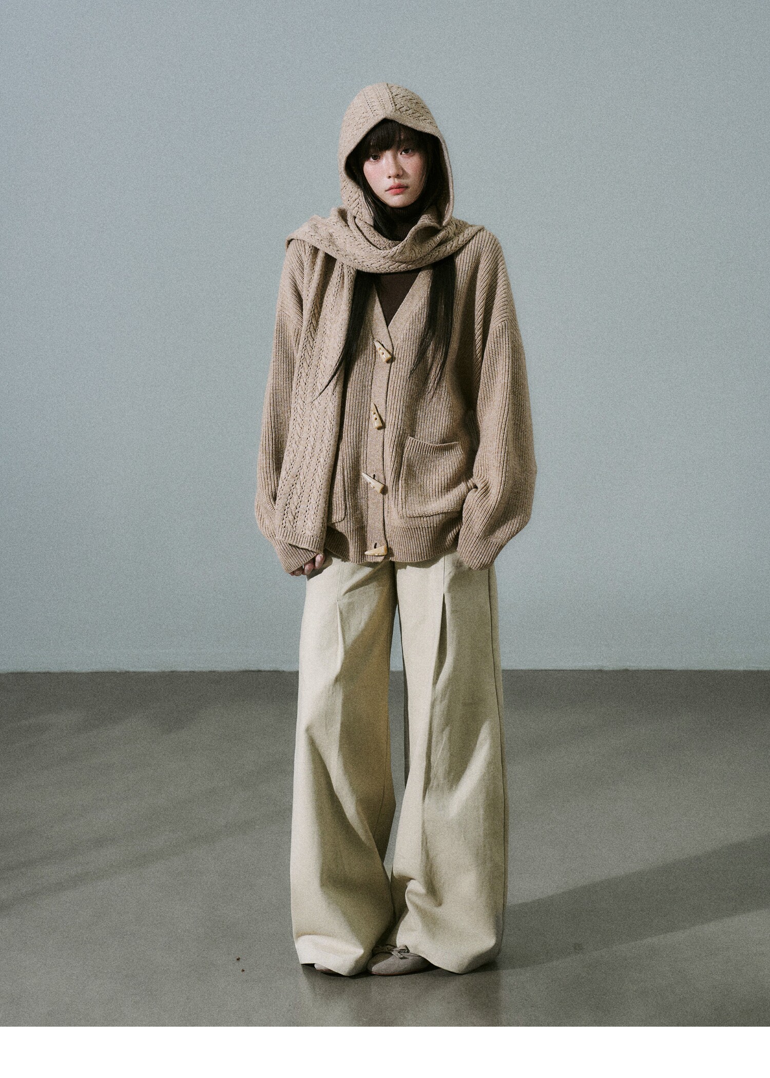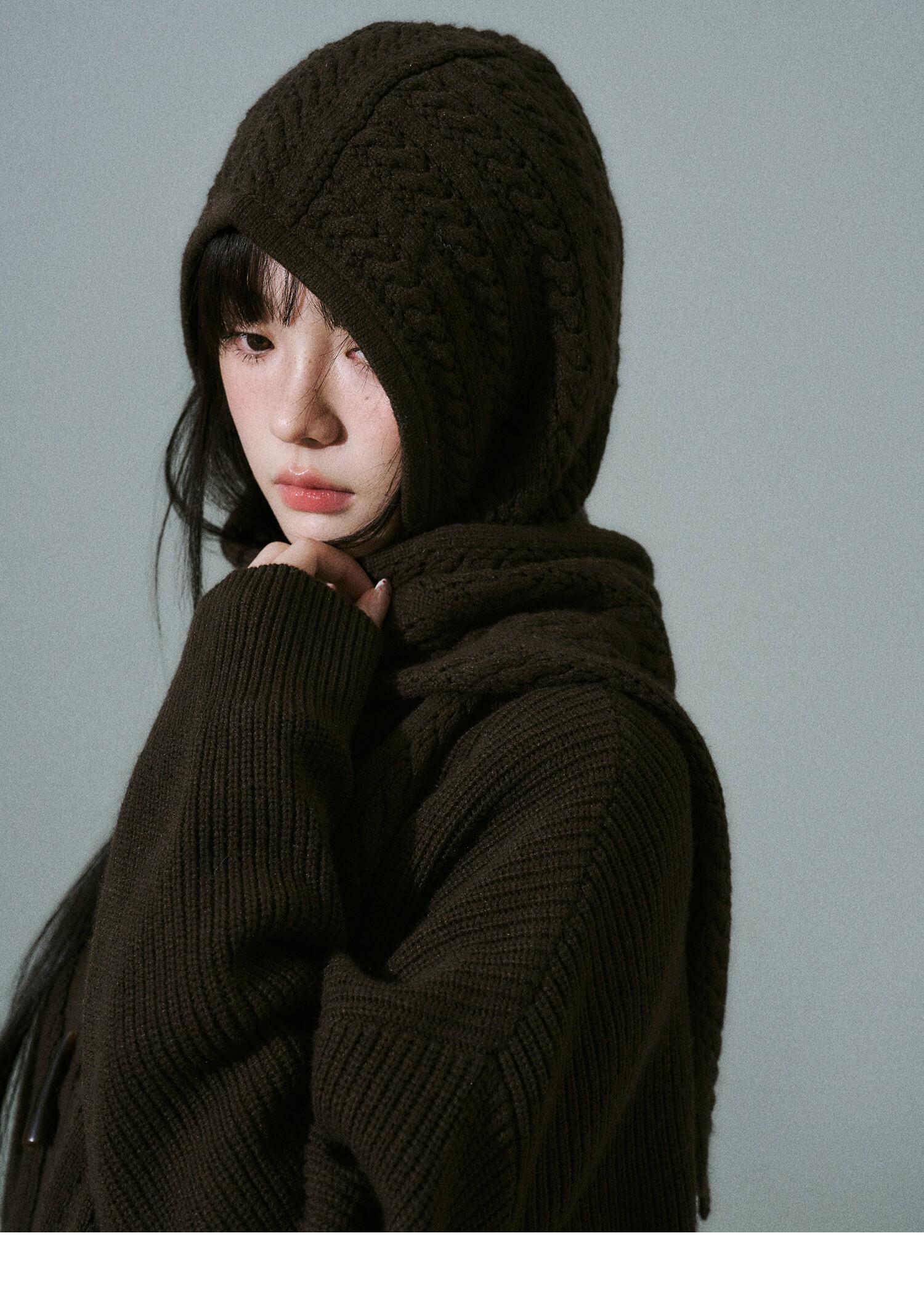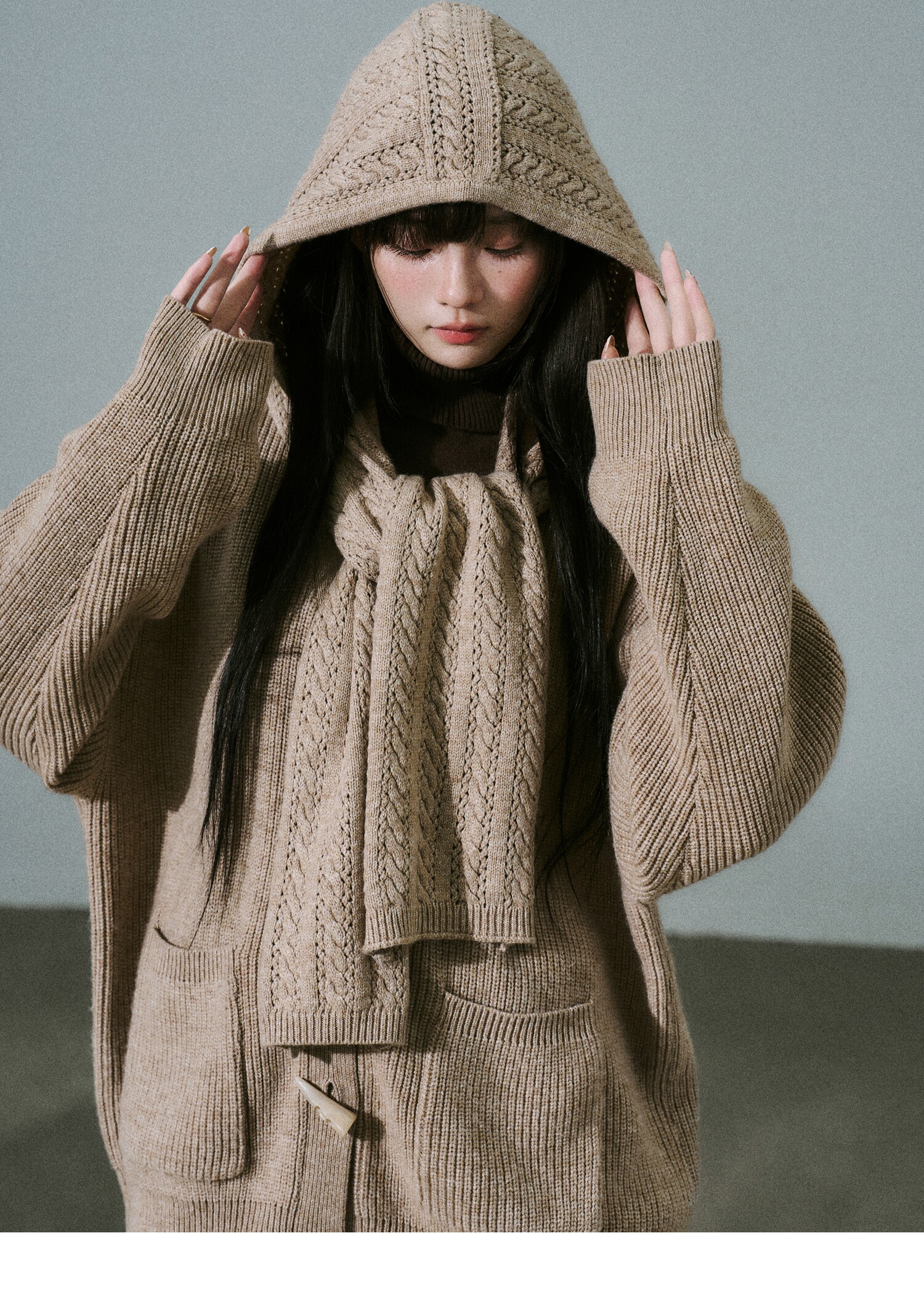 Hooded Horn Button Fleece Lining Knit Cardigan NA8782