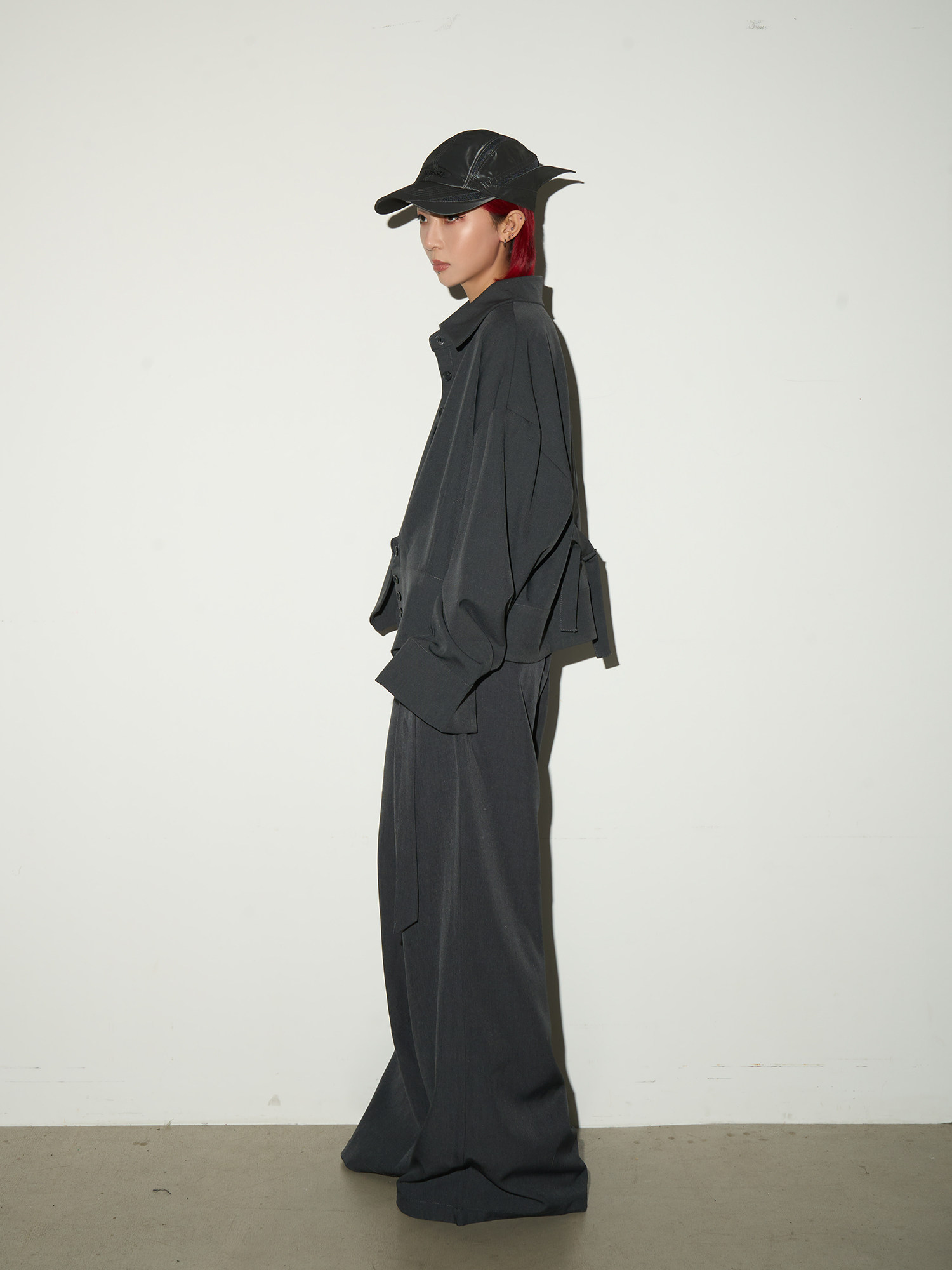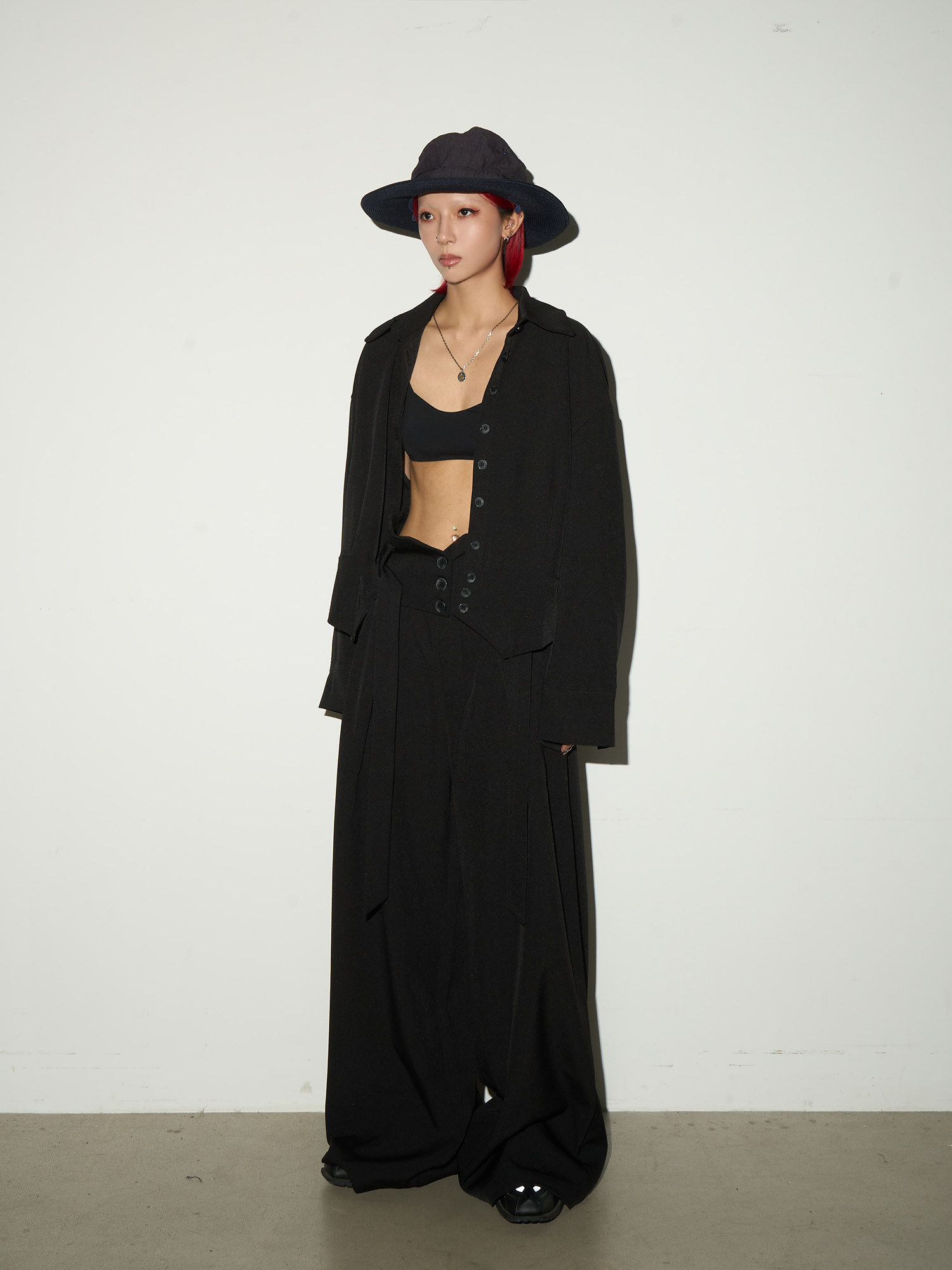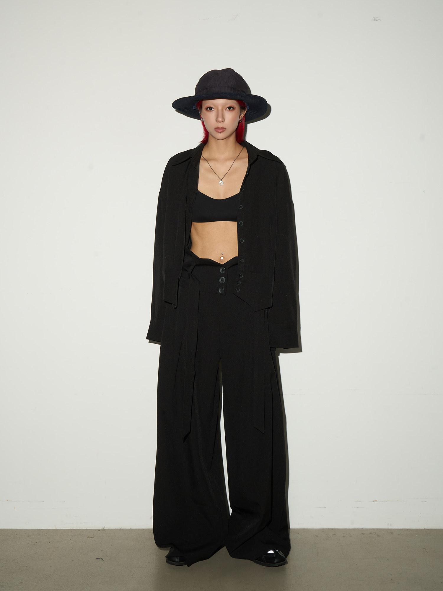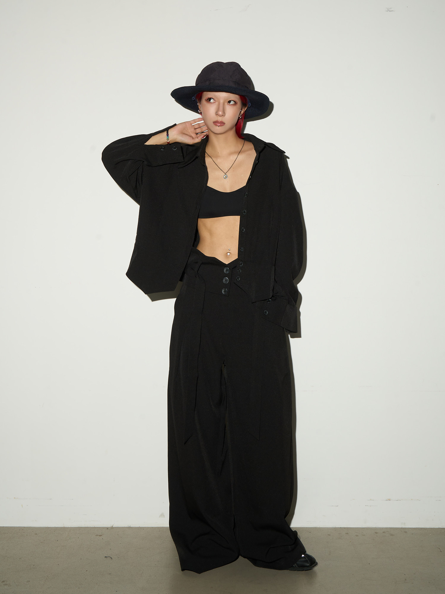 Button Front Long Sleeve Shirt & Pleats Wide Leg Trousers Setup NA9095