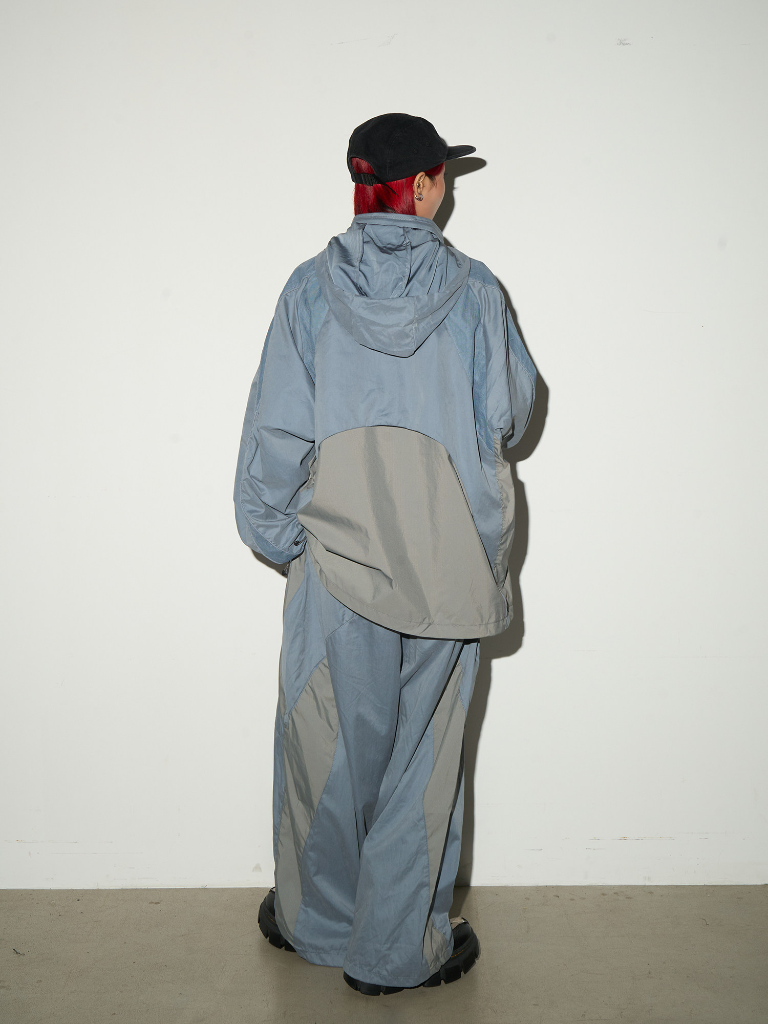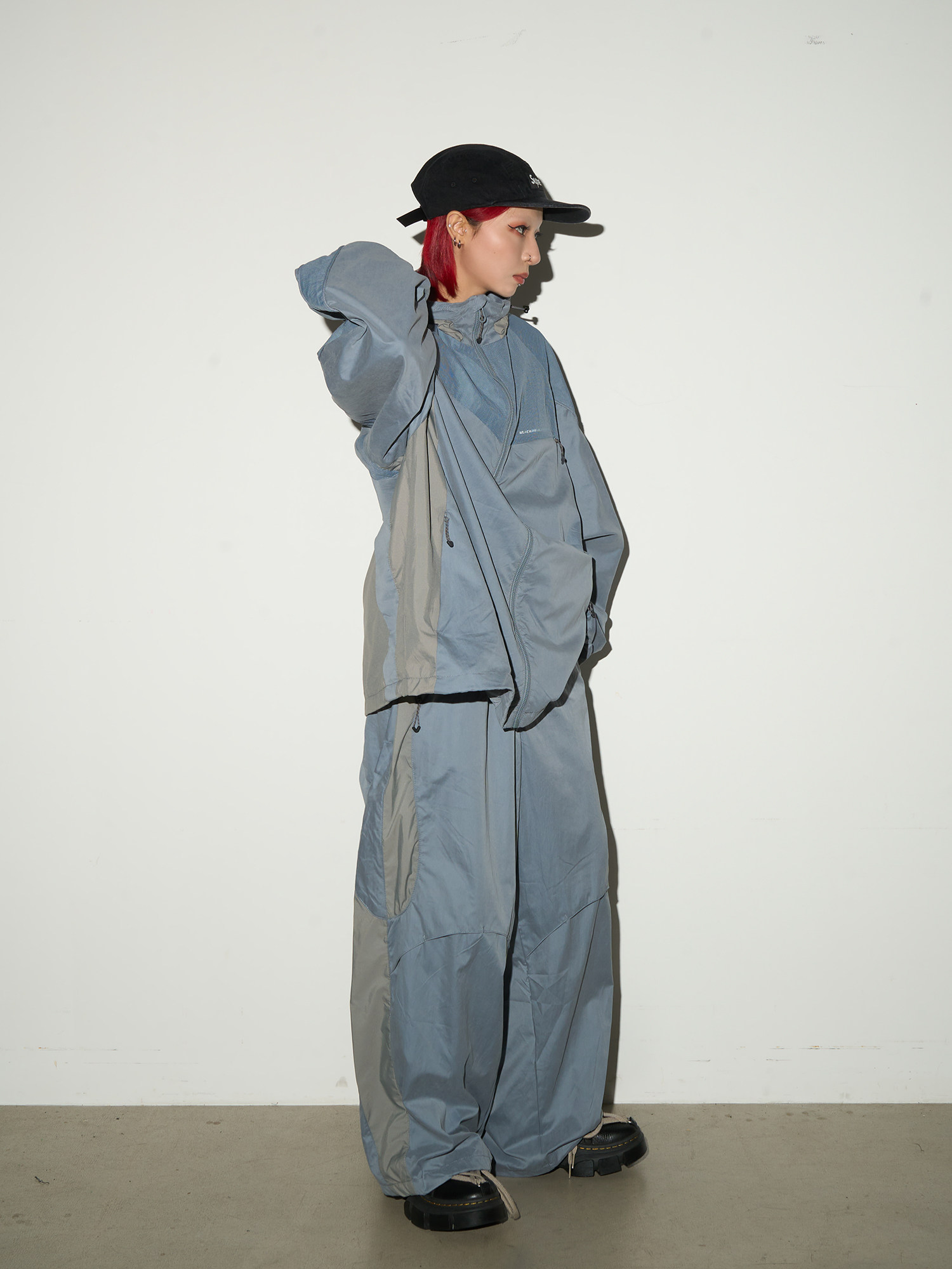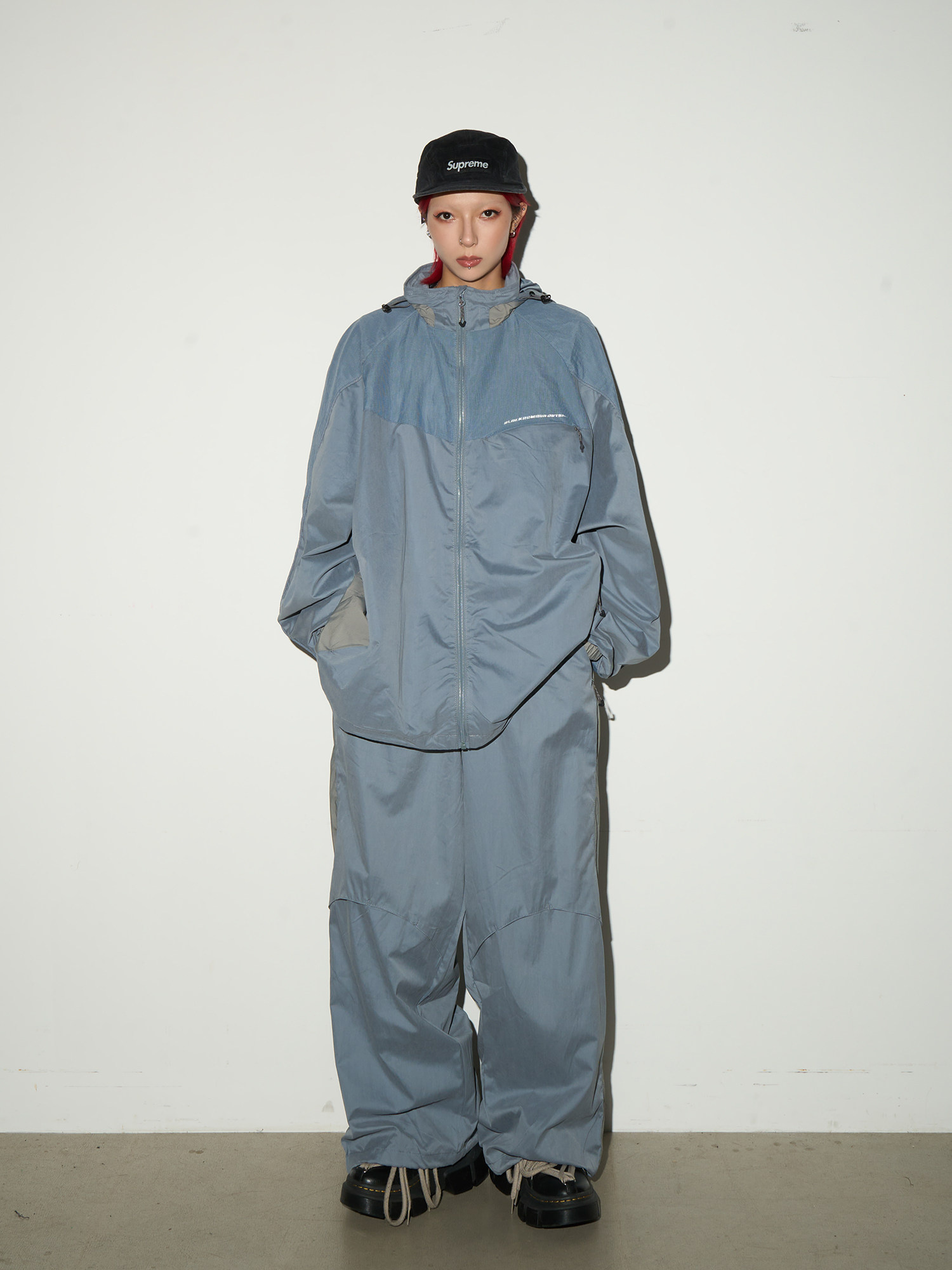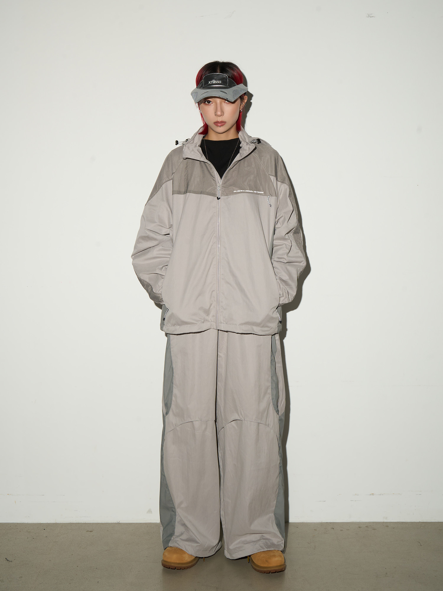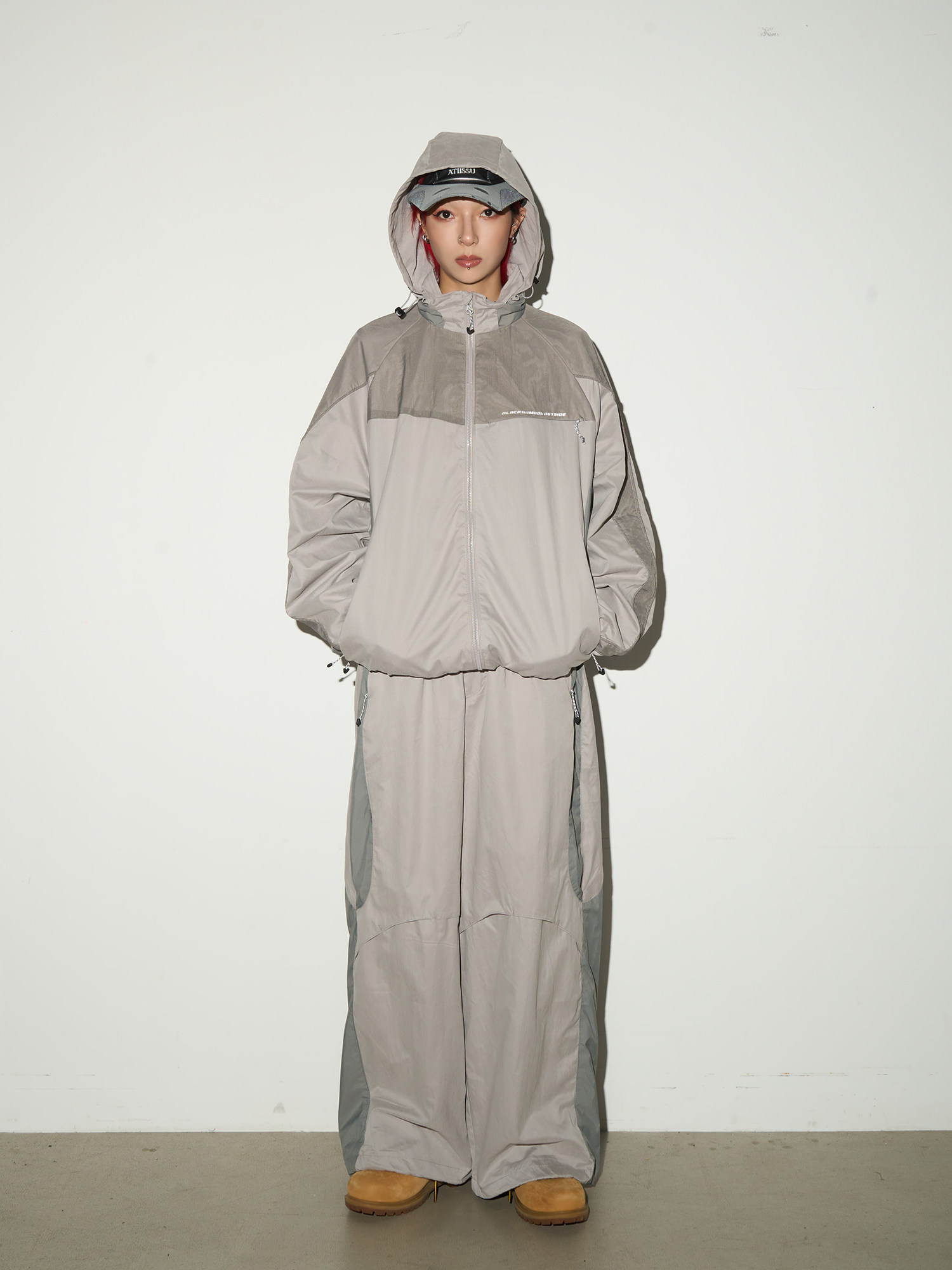 Oversize Nylon Hooded Jacket & Panel Wide Leg Pants Setup NA9111