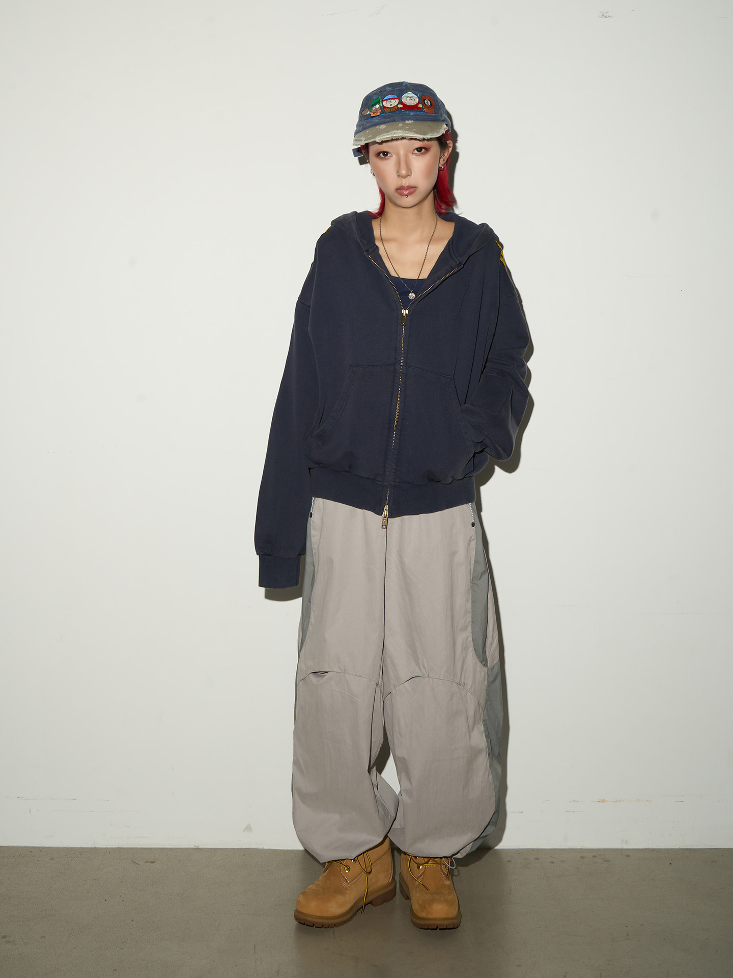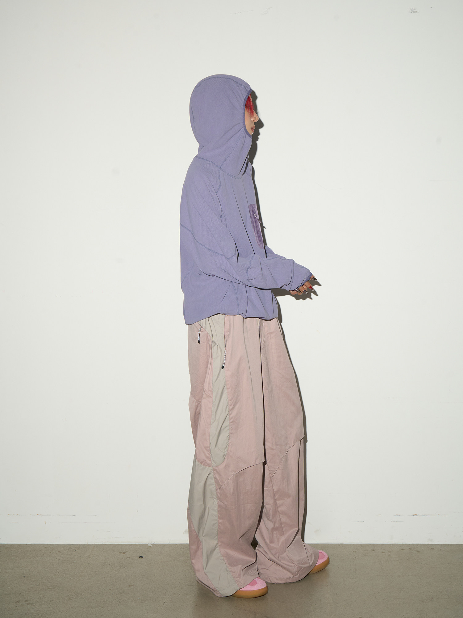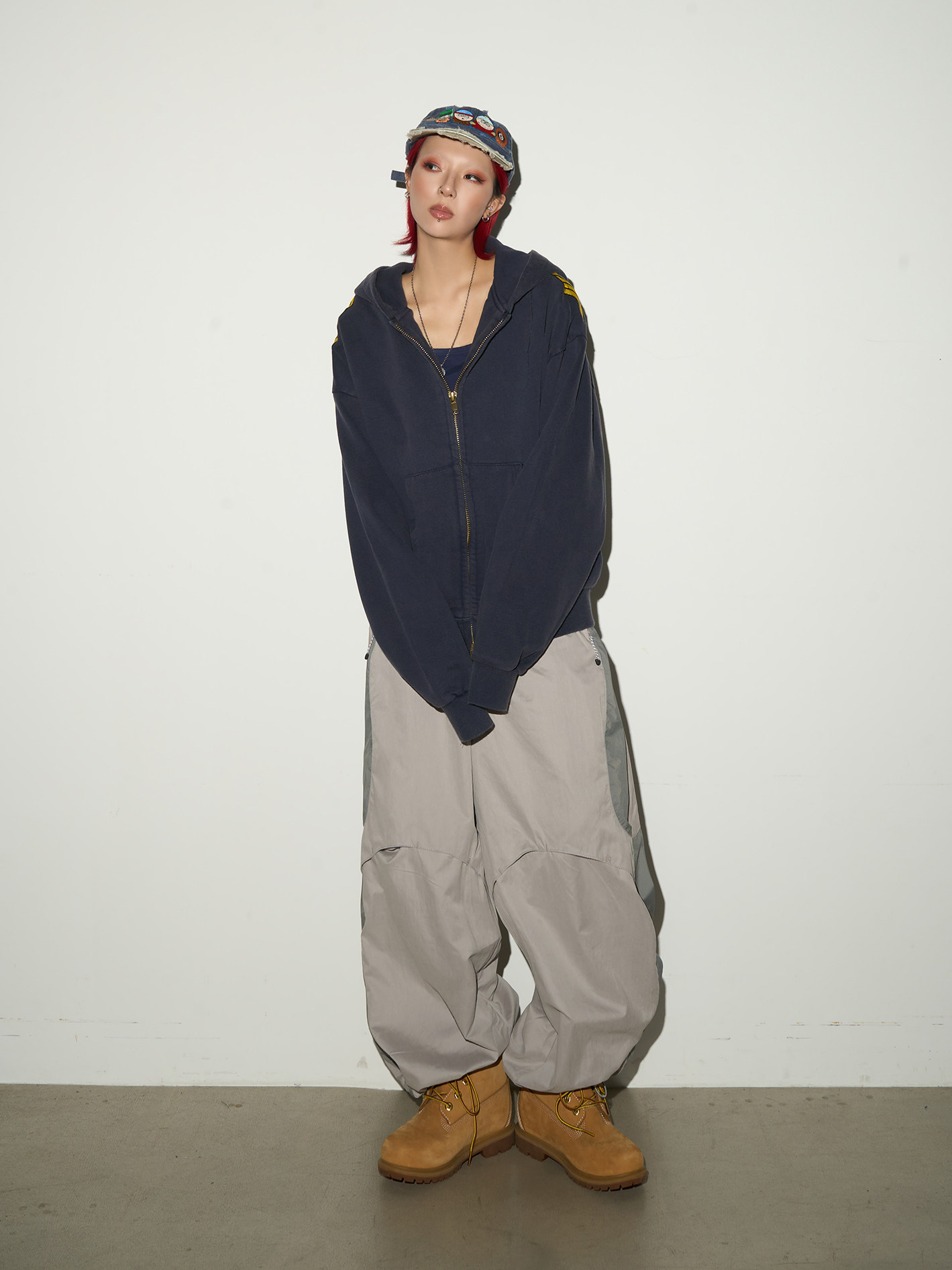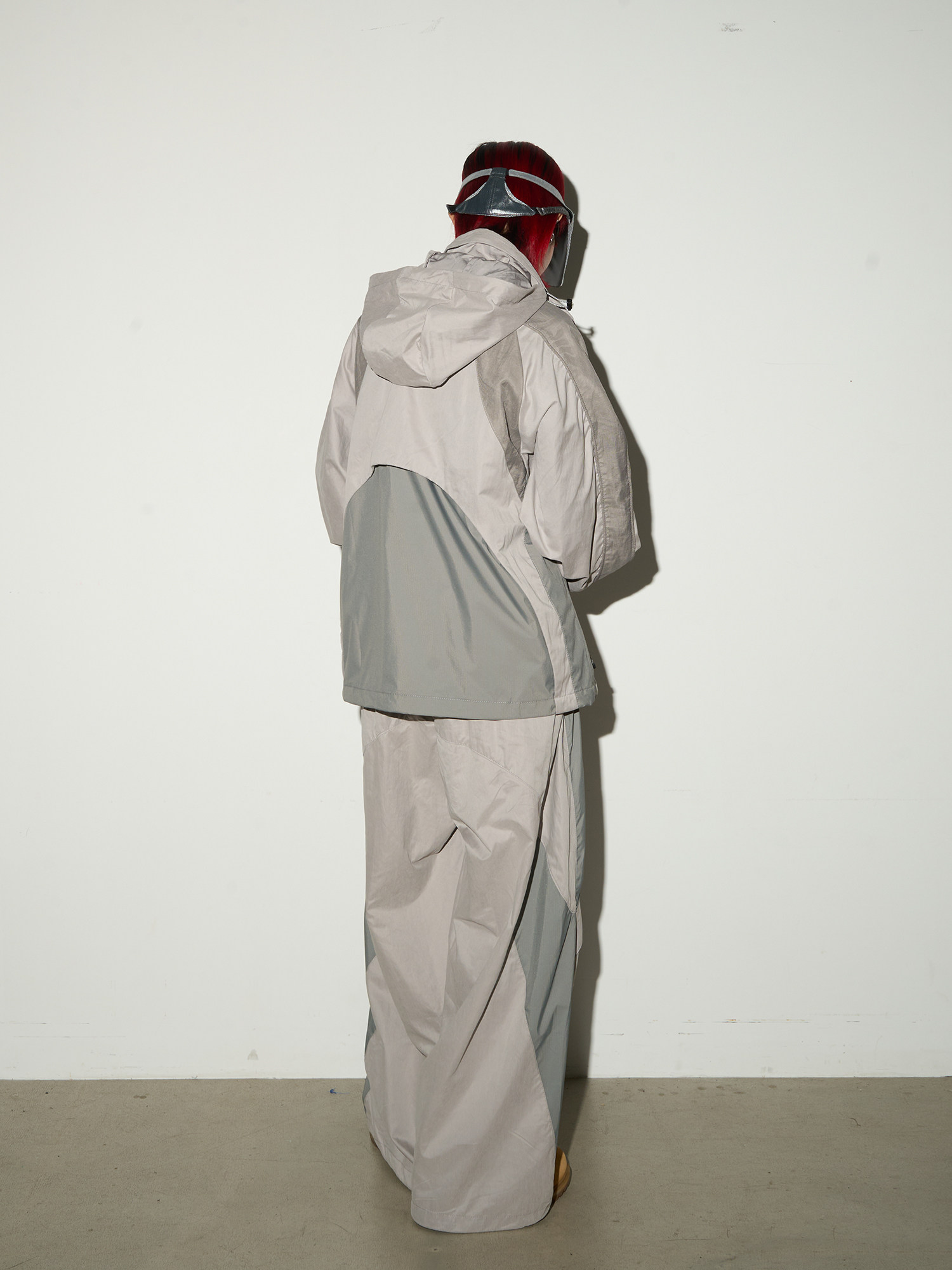 Oversize Nylon Hooded Jacket & Panel Wide Leg Pants Setup NA9111
