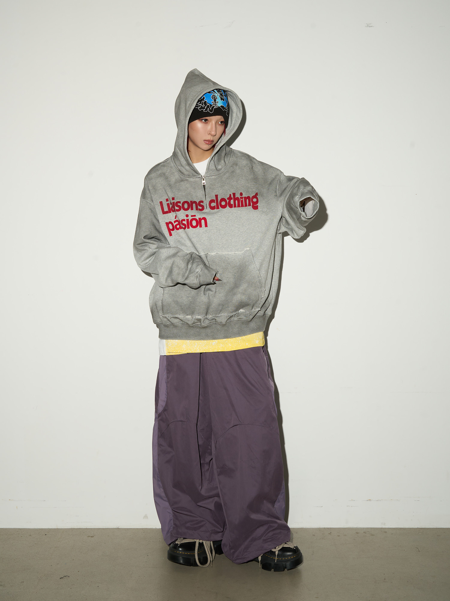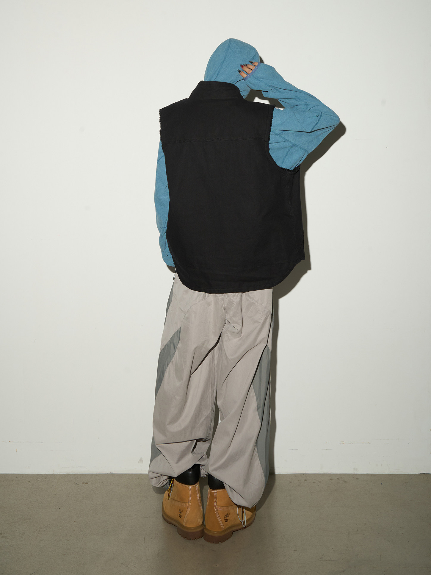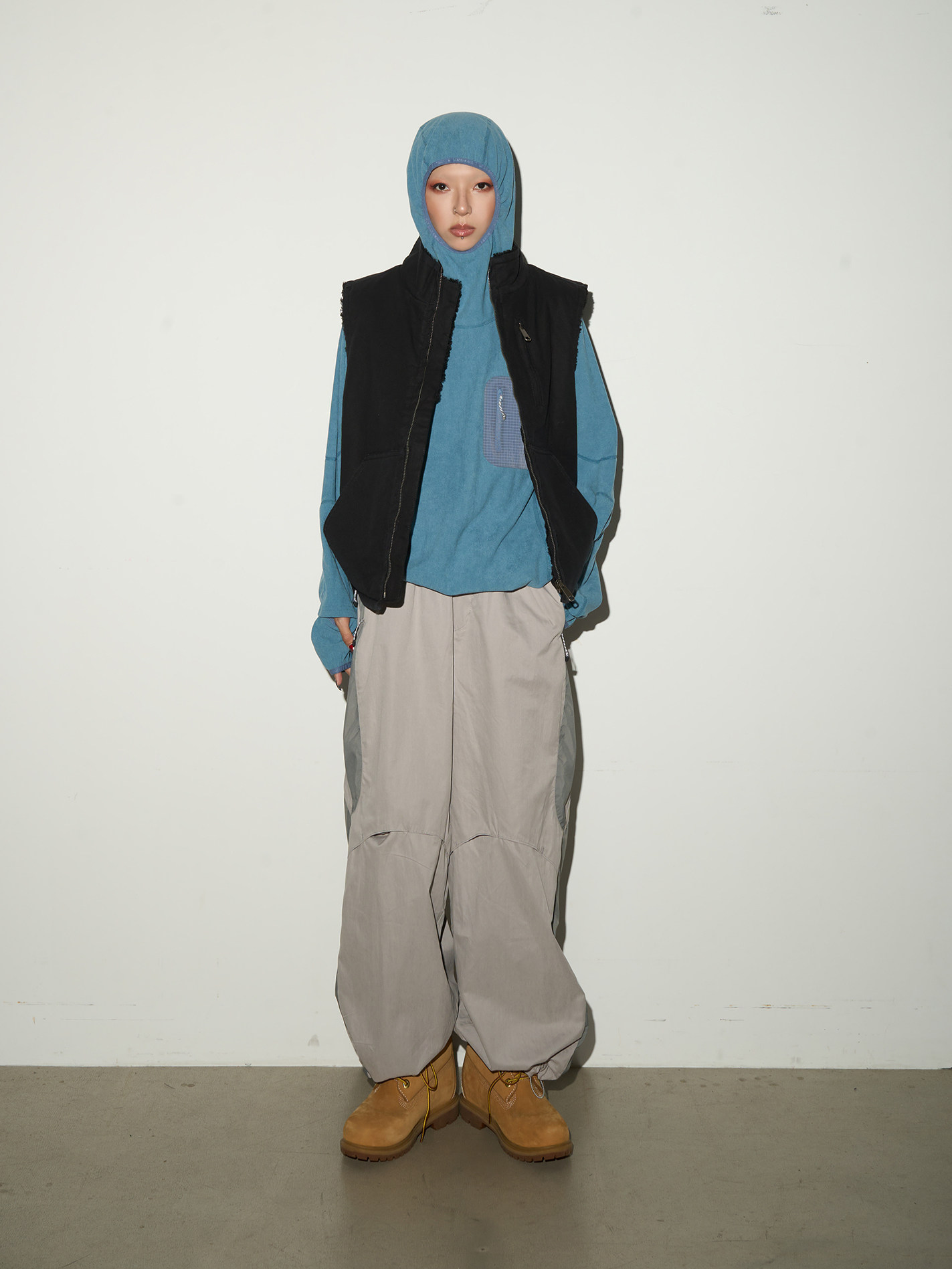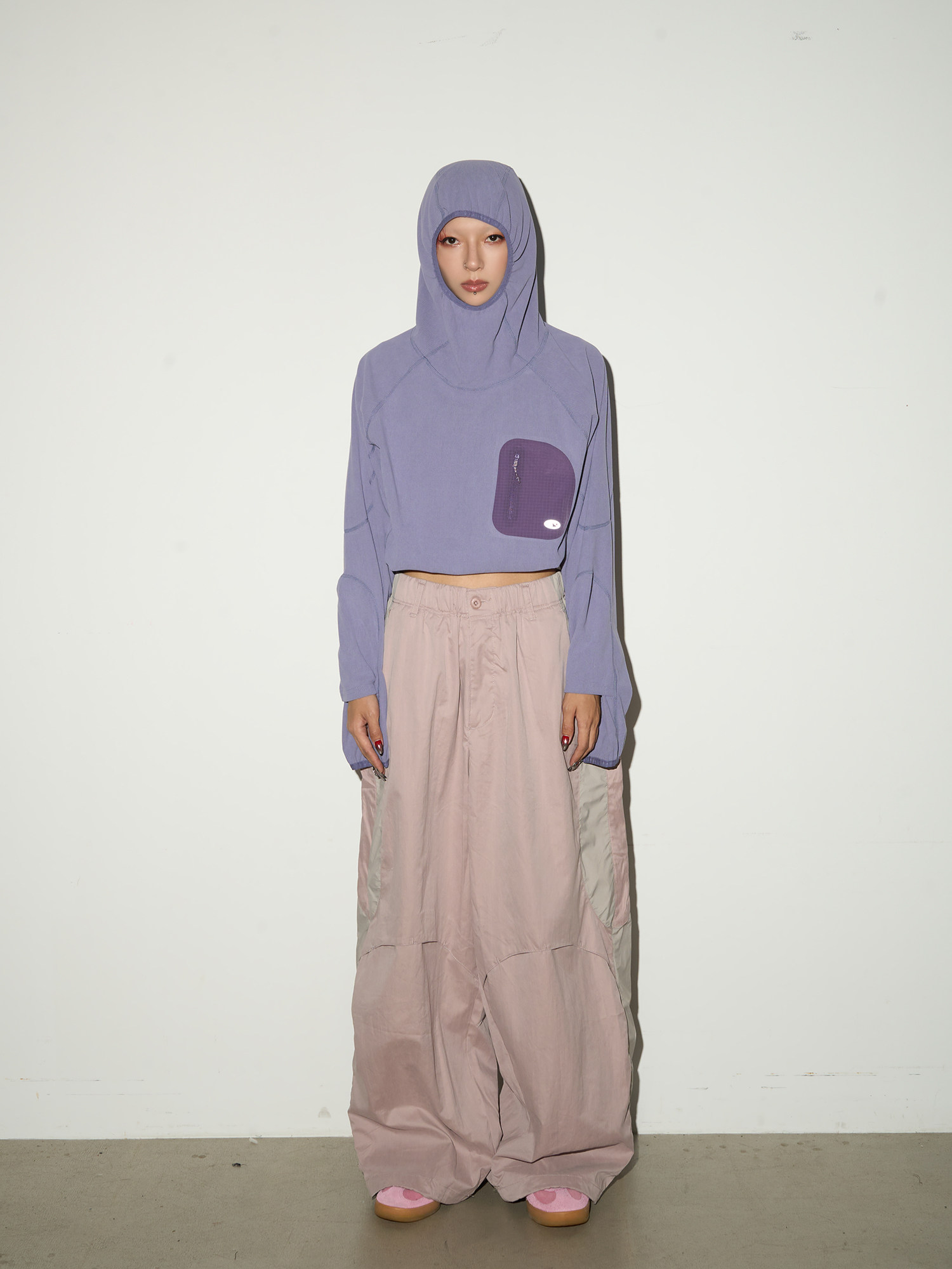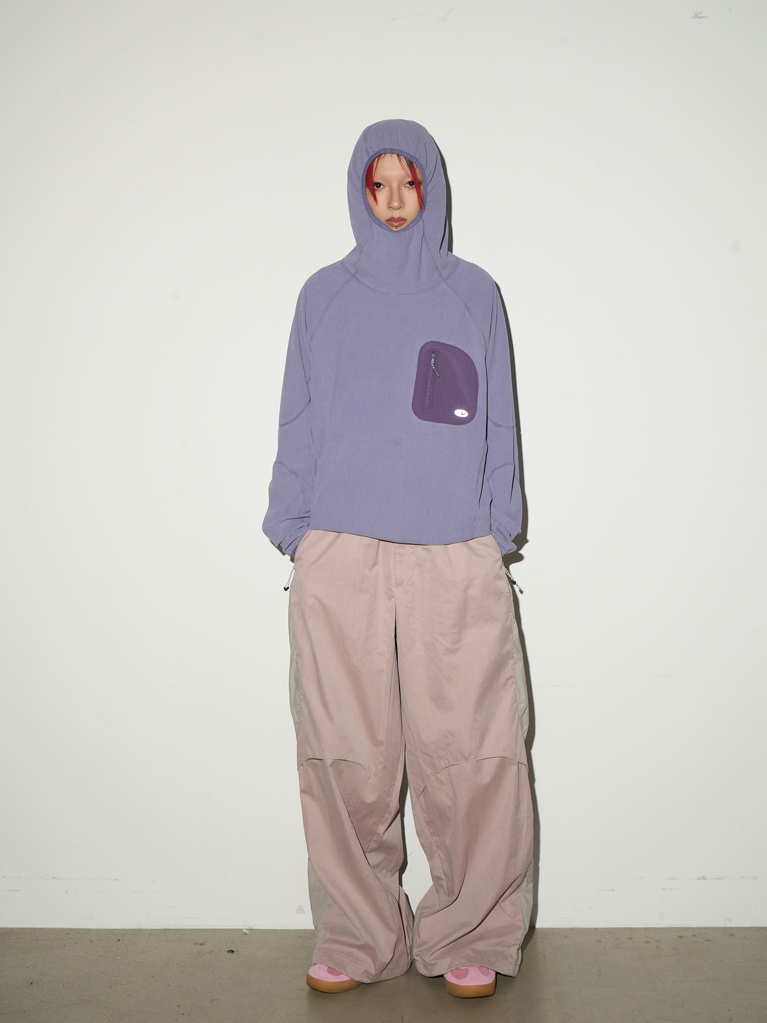 Oversize Nylon Hooded Jacket & Panel Wide Leg Pants Setup NA9111