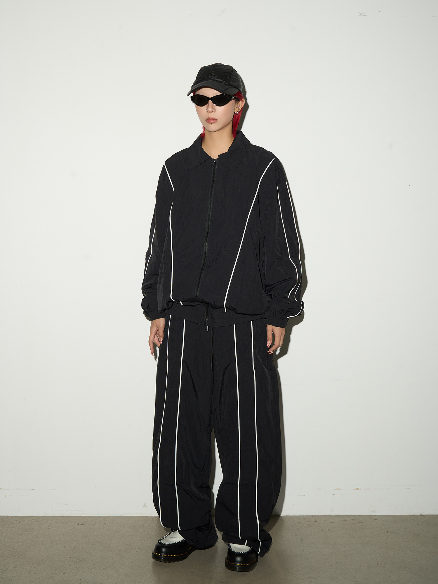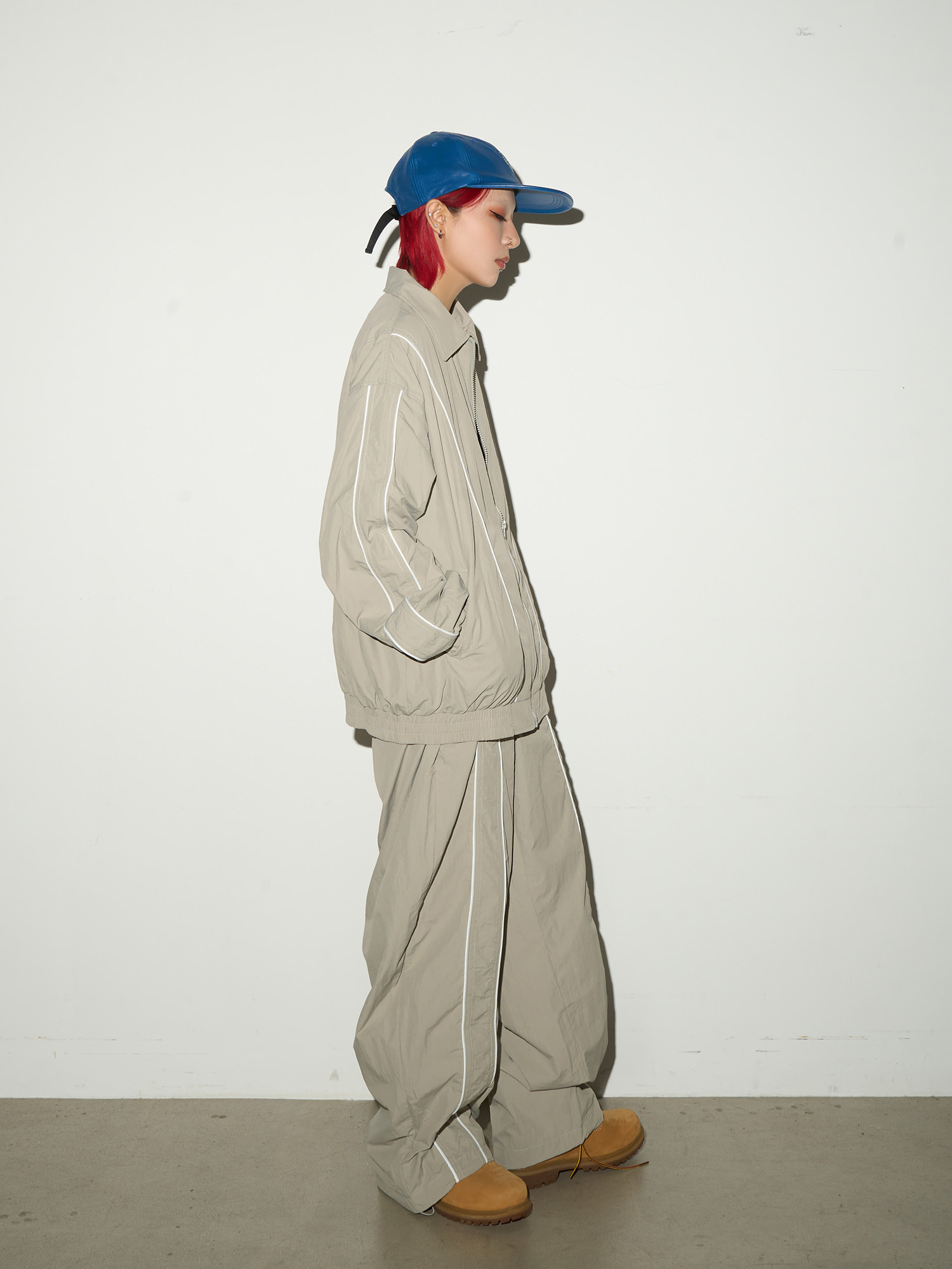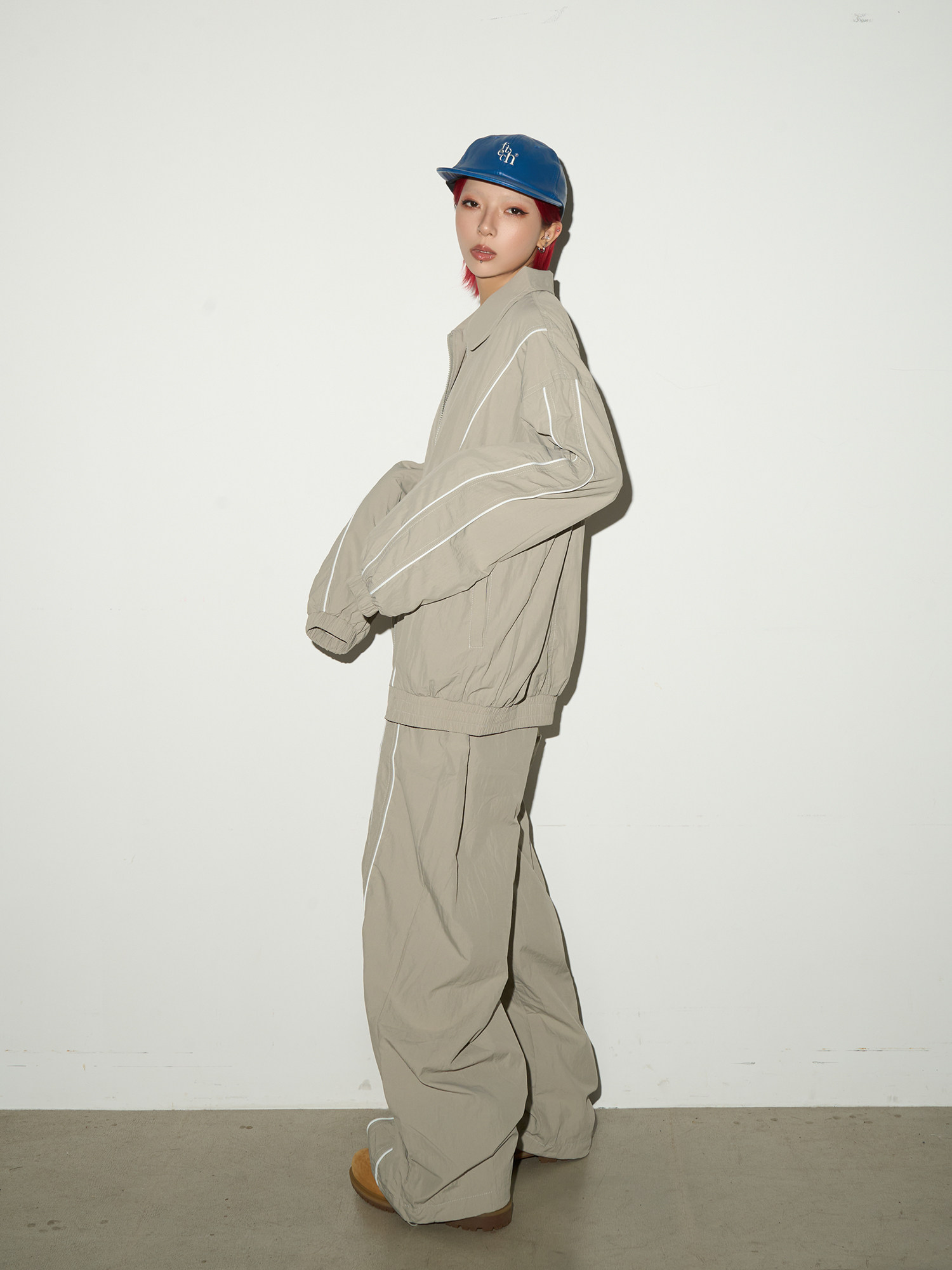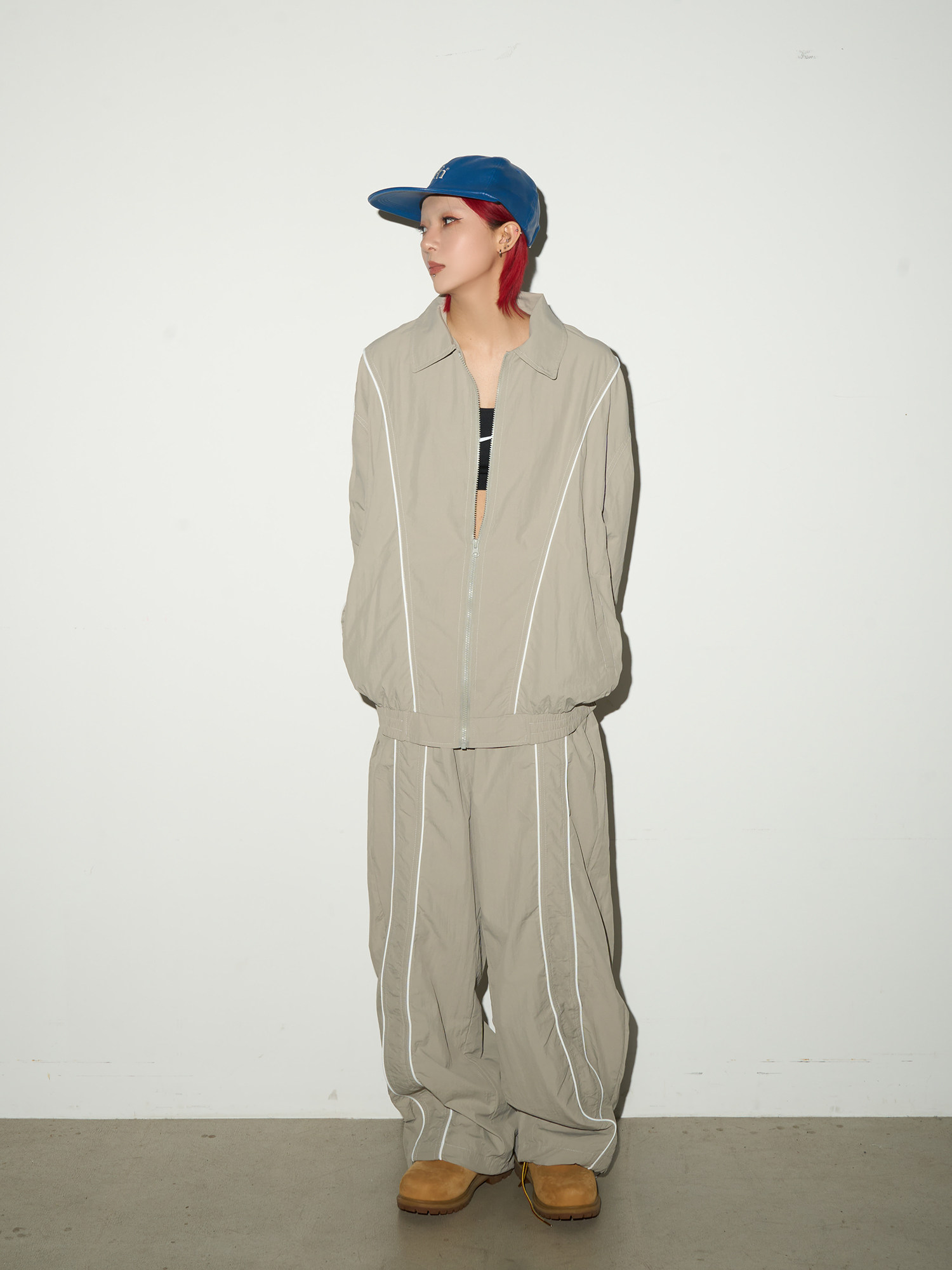 Line Detail Lightweight Quick-Dry Oversize Jacket & Wide Leg Pants Setup NA9158