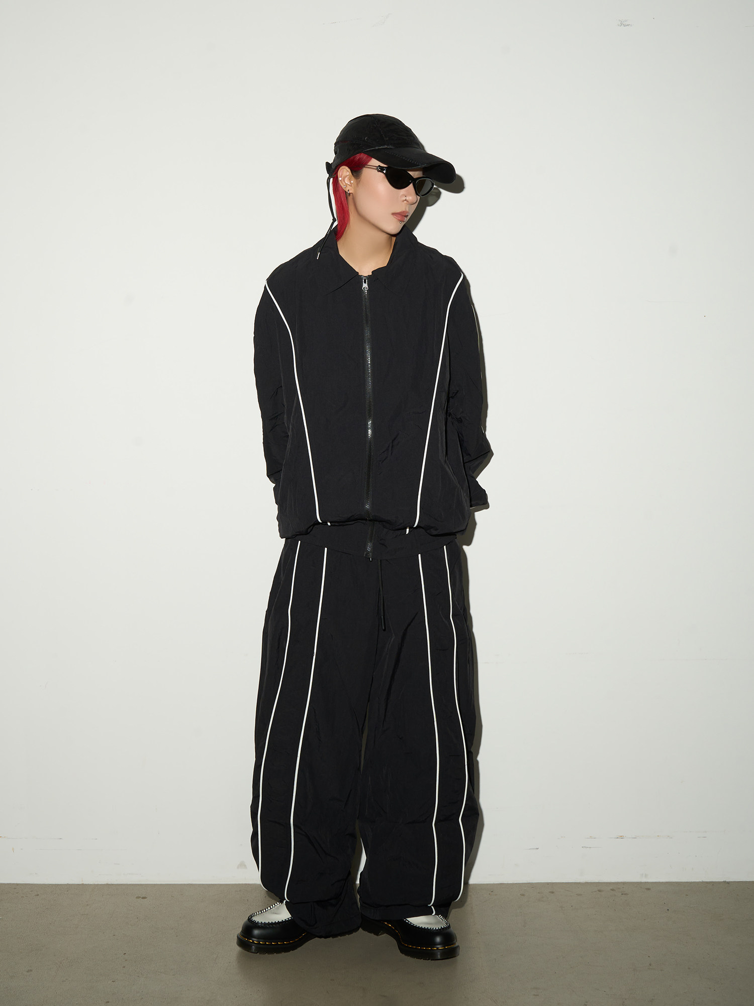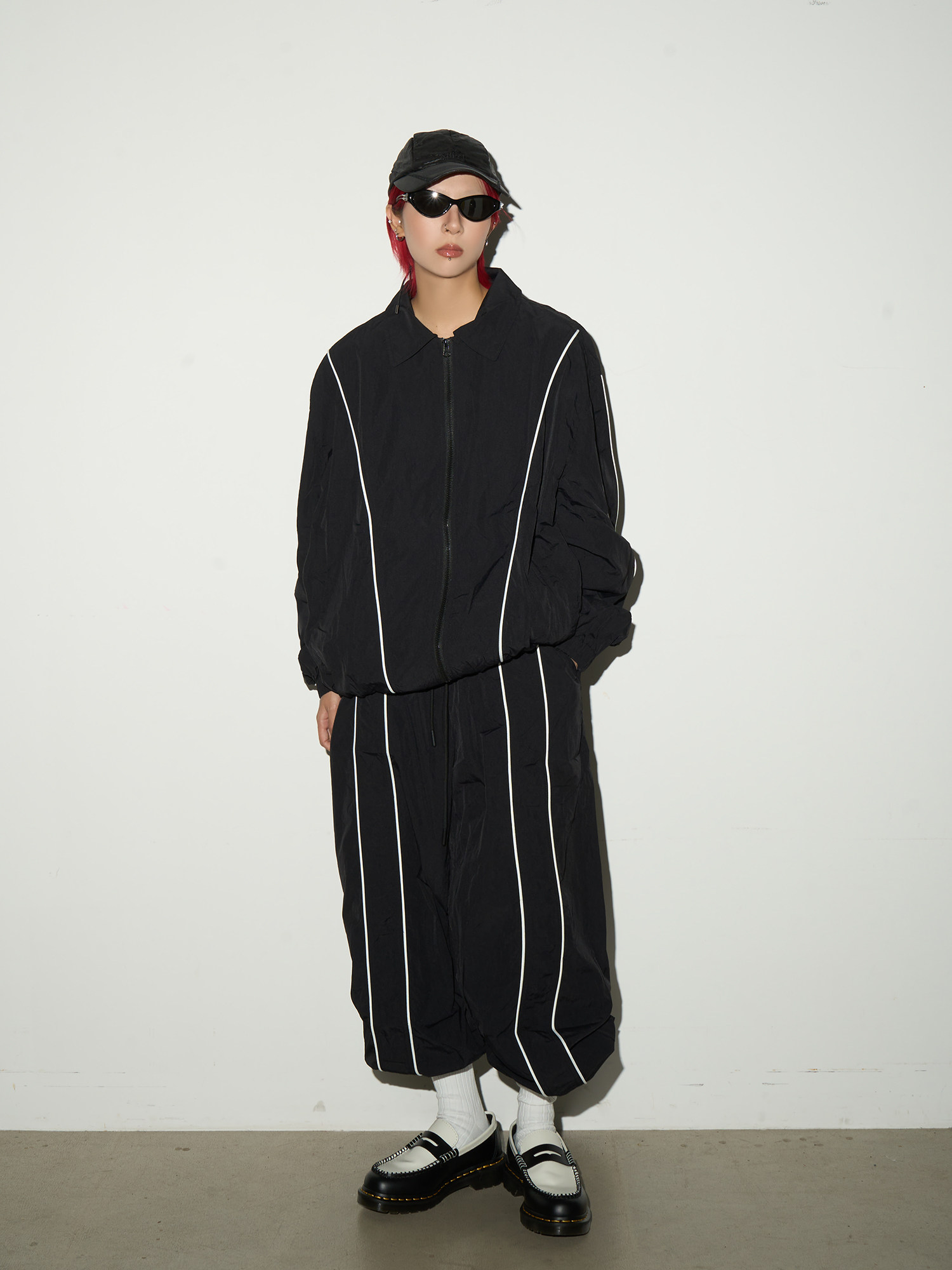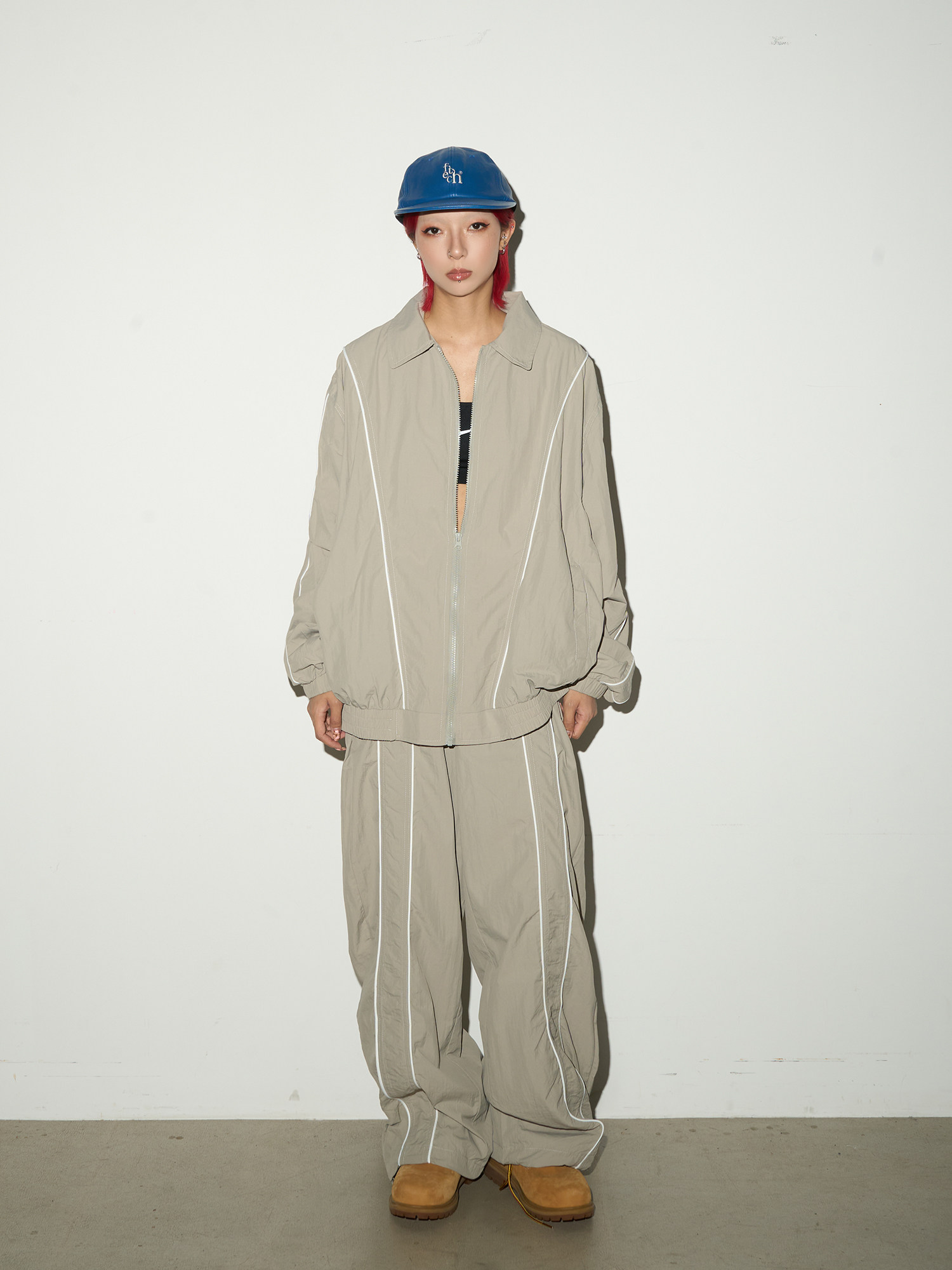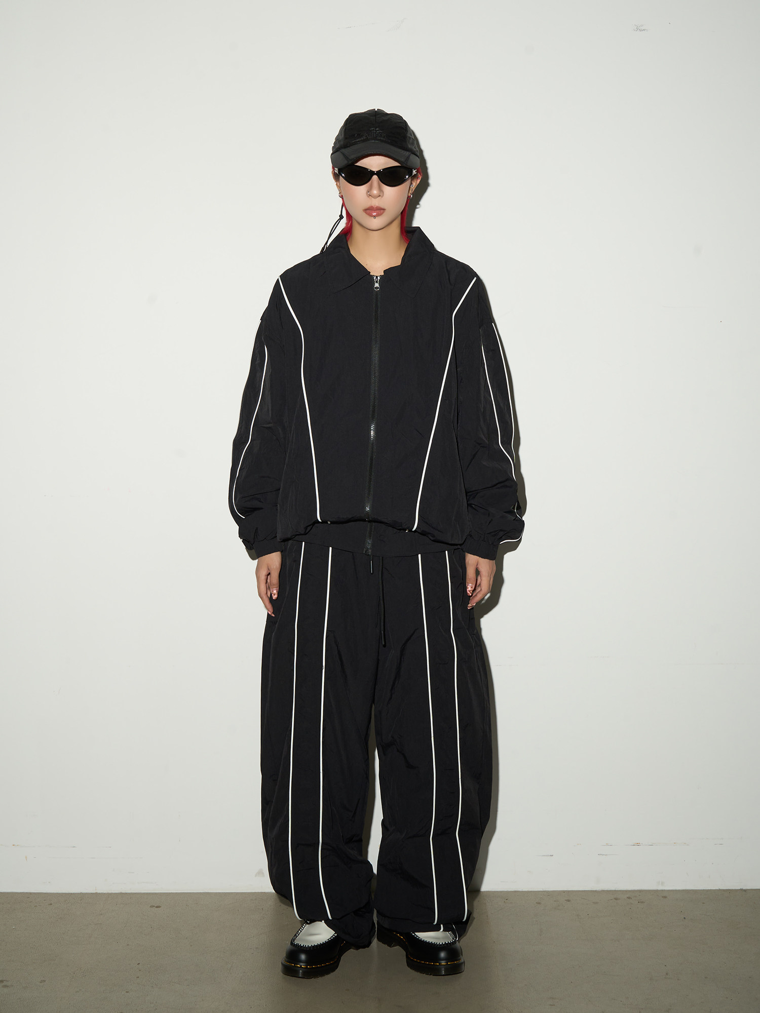Line Detail Lightweight Quick-Dry Oversize Jacket & Wide Leg Pants Setup NA9158