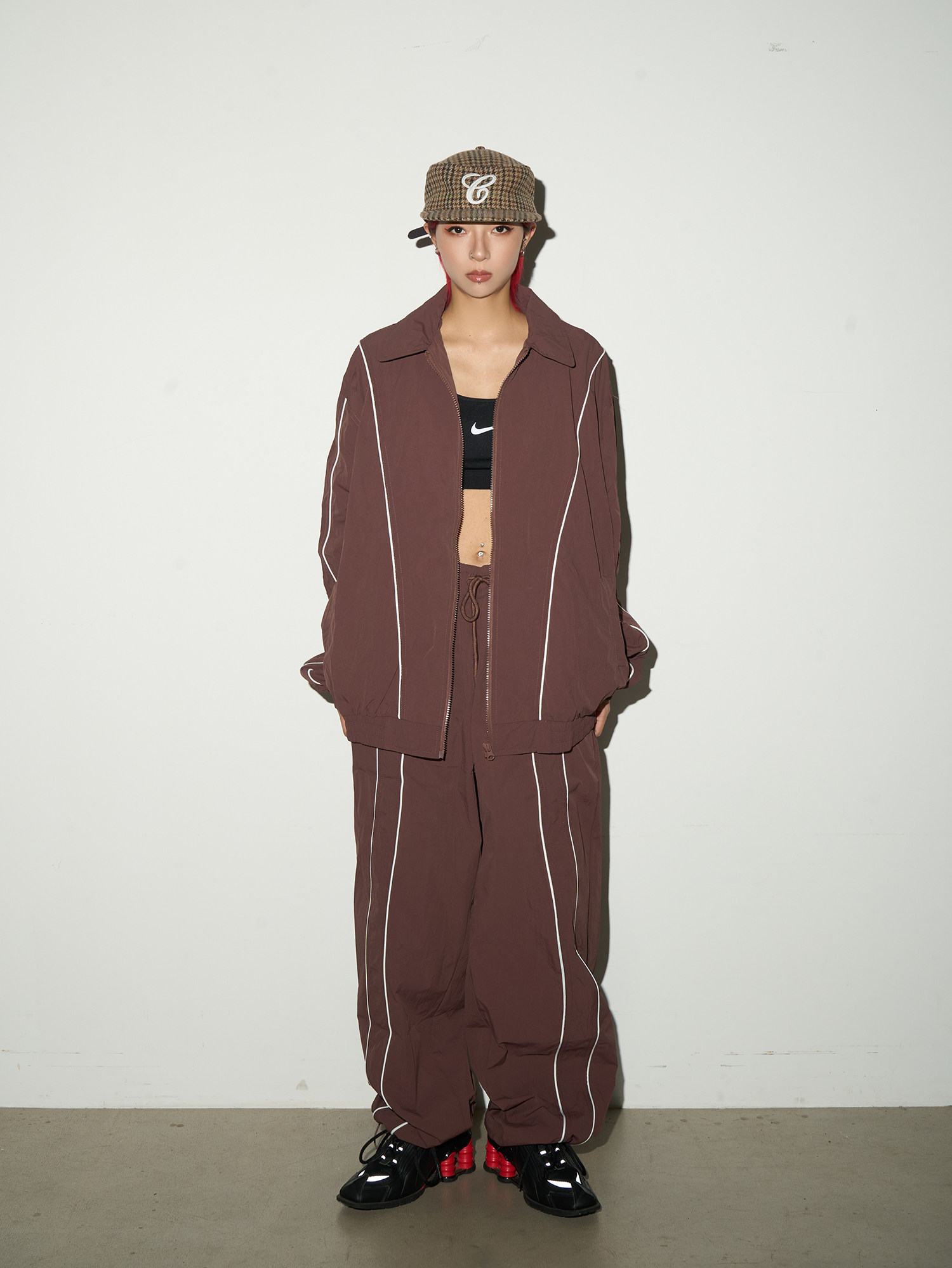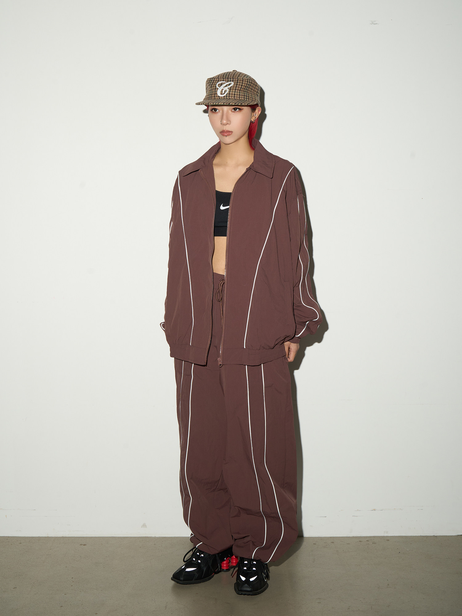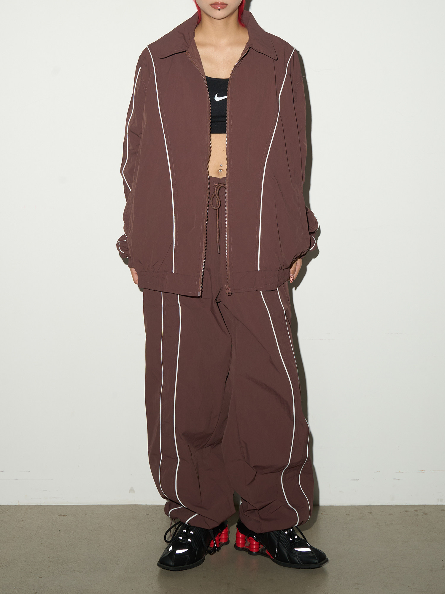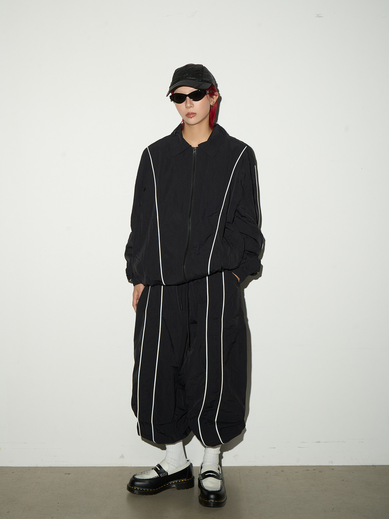 Line Detail Lightweight Quick-Dry Oversize Jacket & Wide Leg Pants Setup NA9158