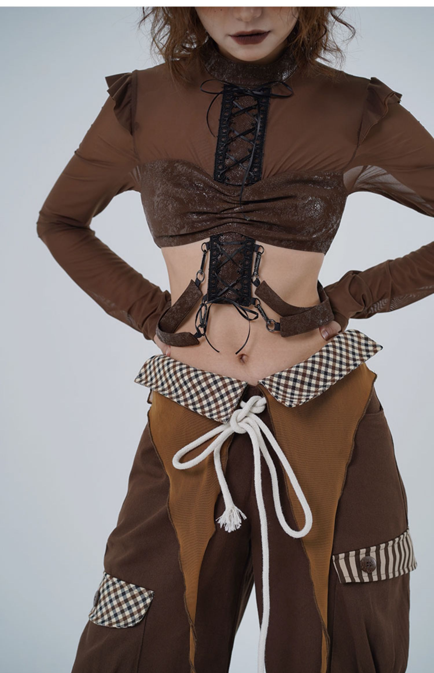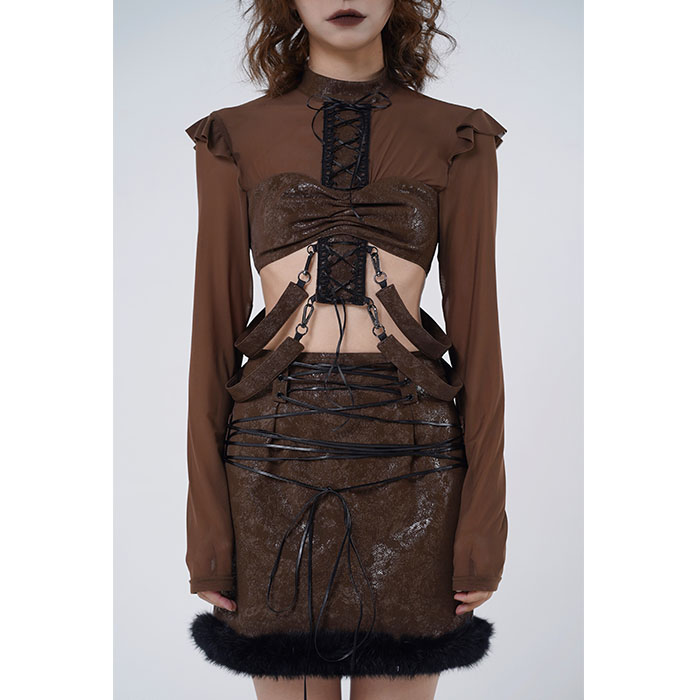 Sheer Mesh Ruffle Cropped Blouse NA7698