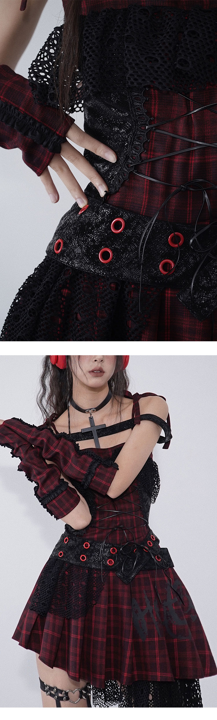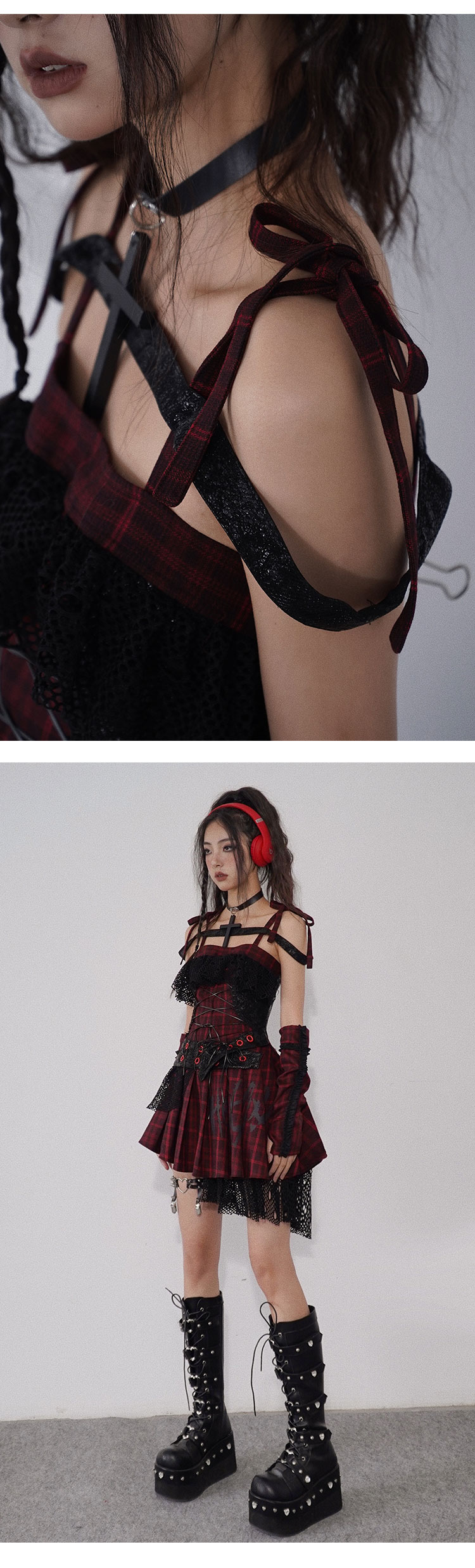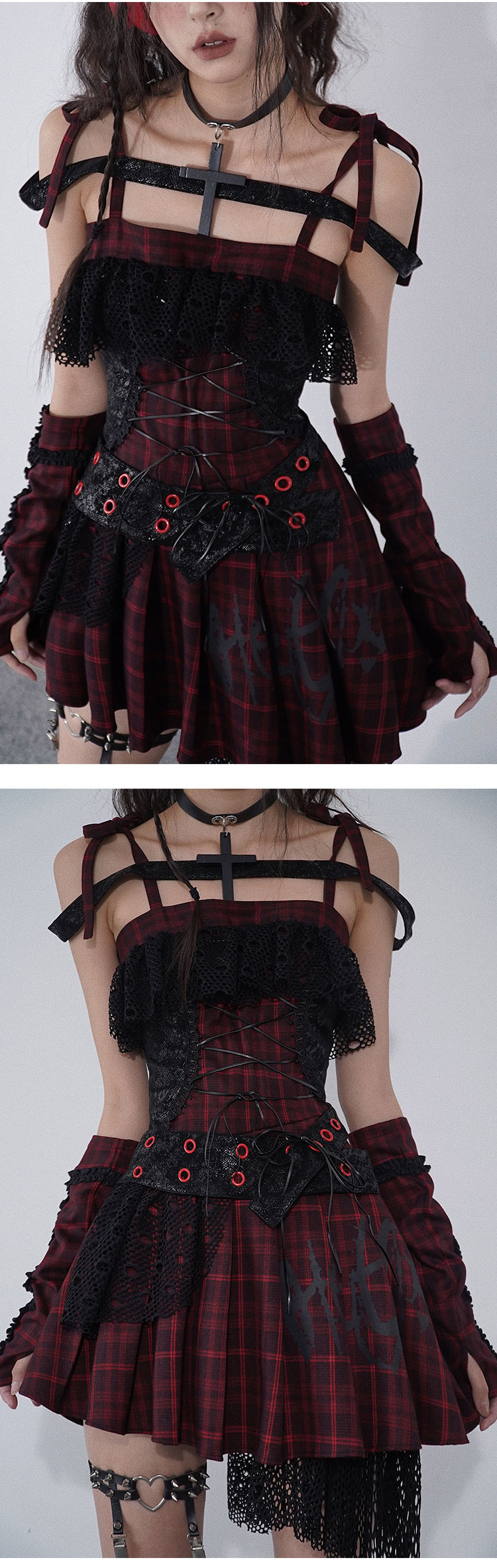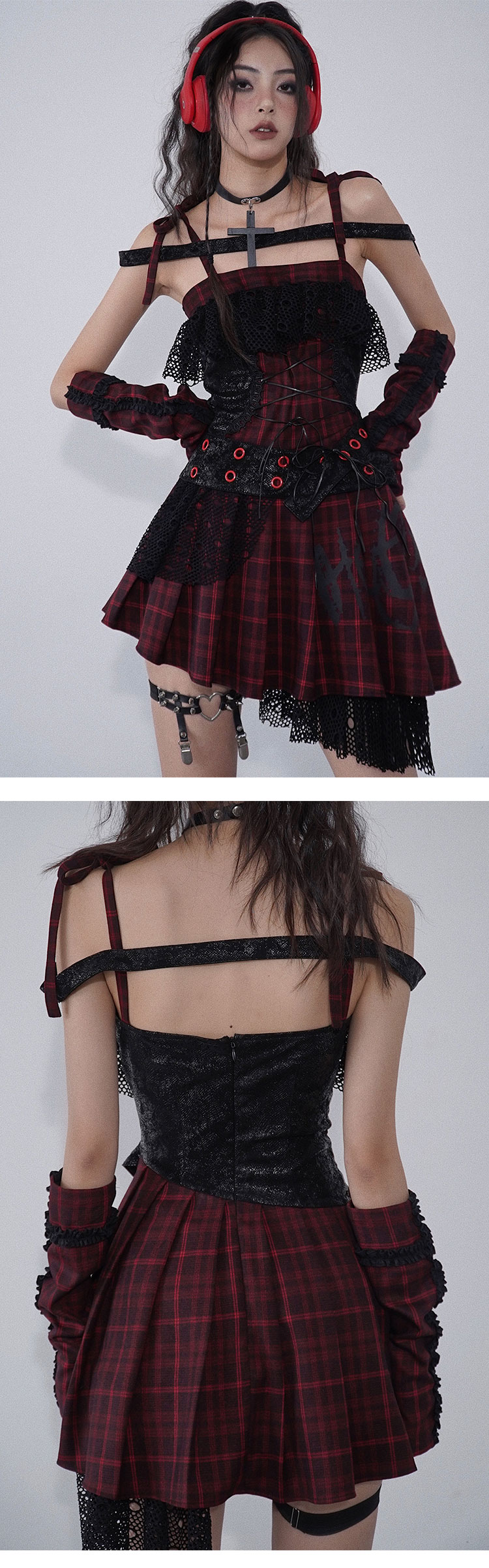 Ruffle Lace Patchwork Plaid Camisole Dress NA7707