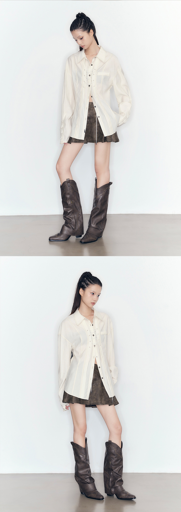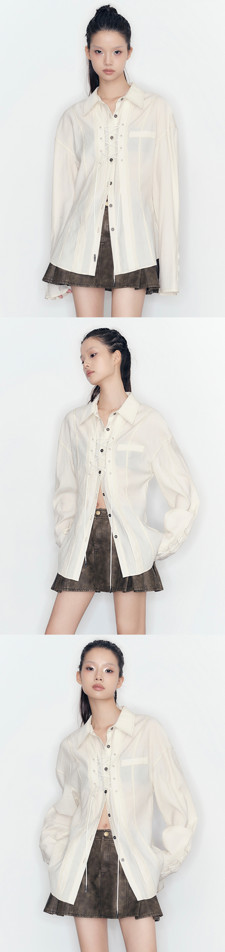 Pleats Texture Tie-Waist Long Sleeve Shirt NA7962