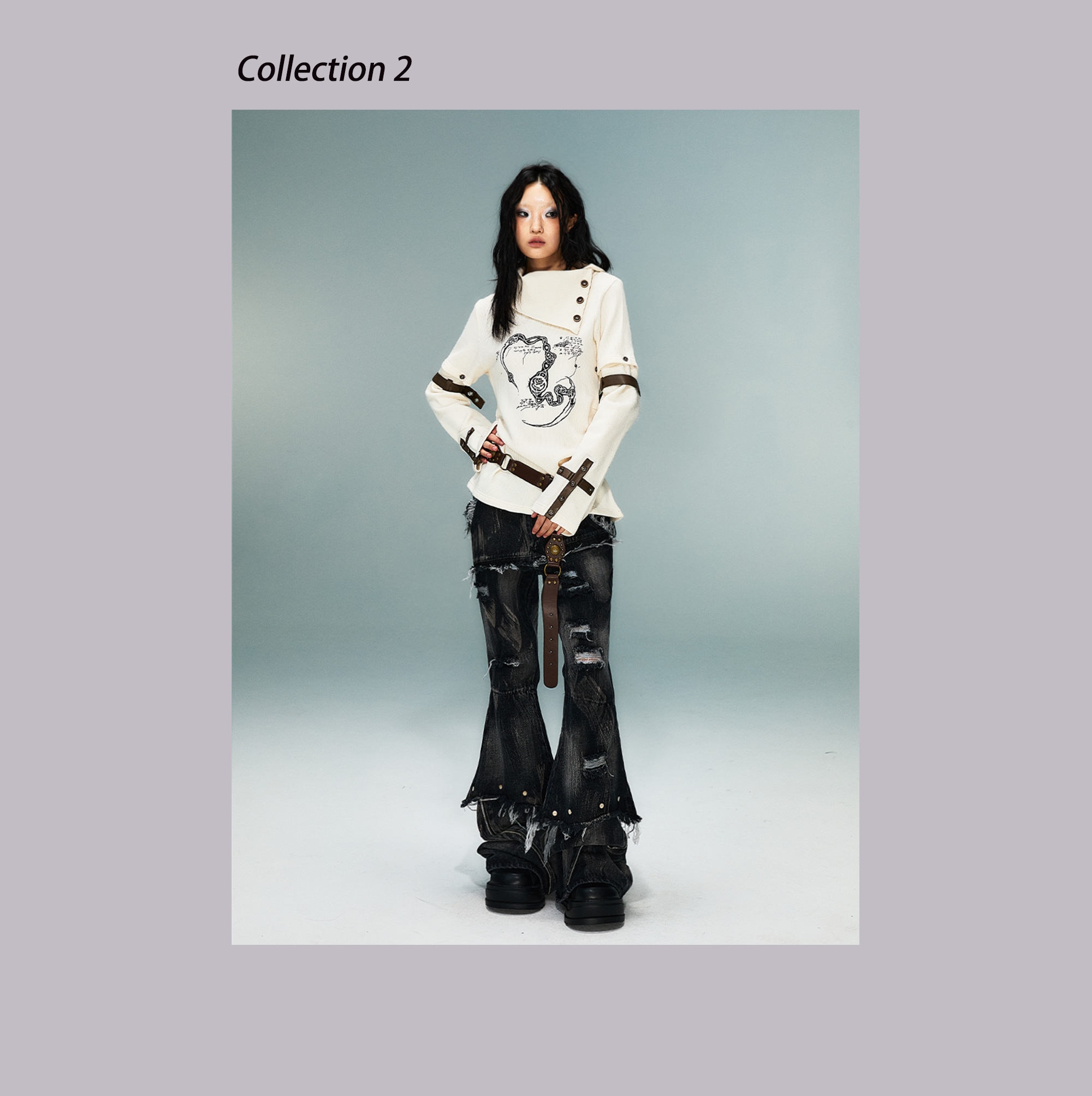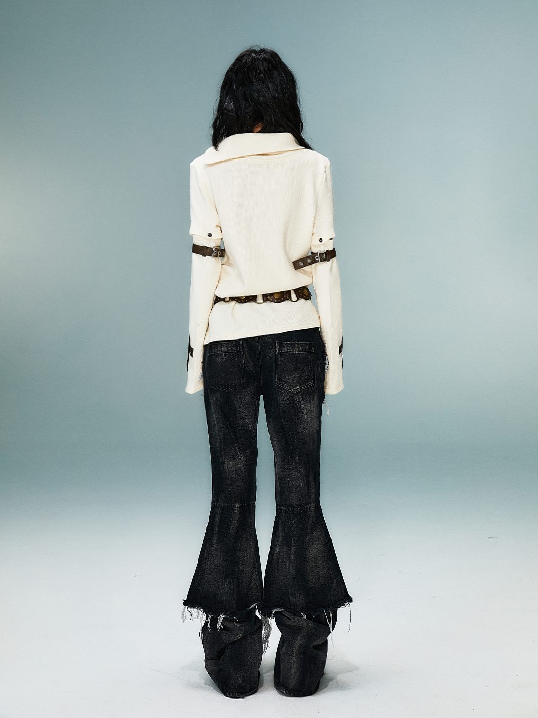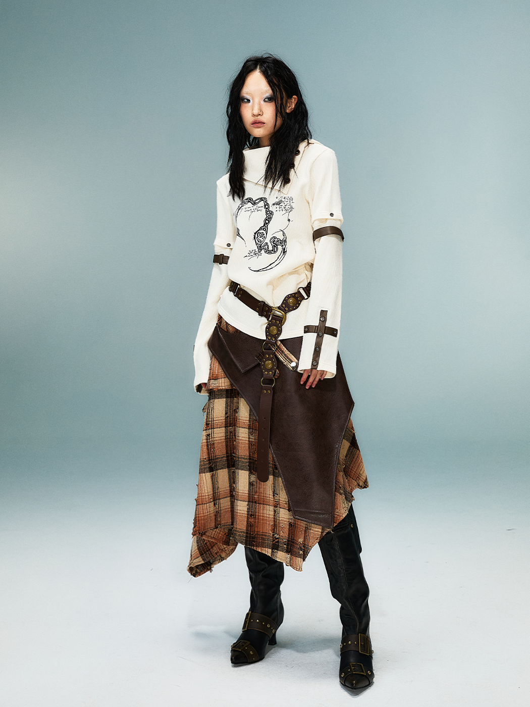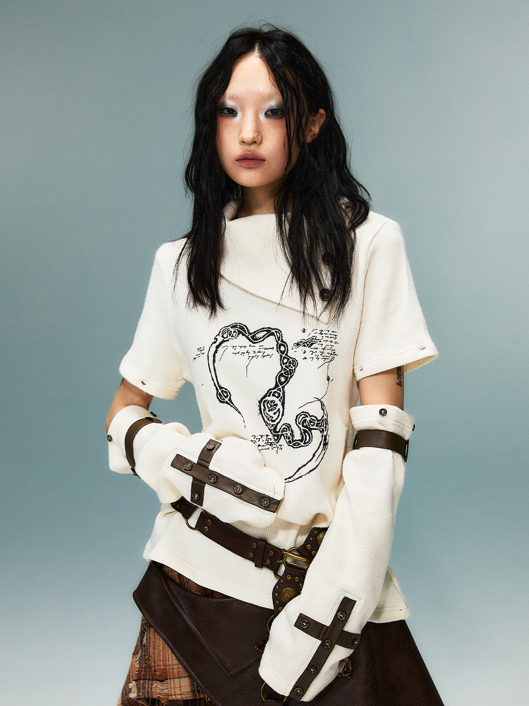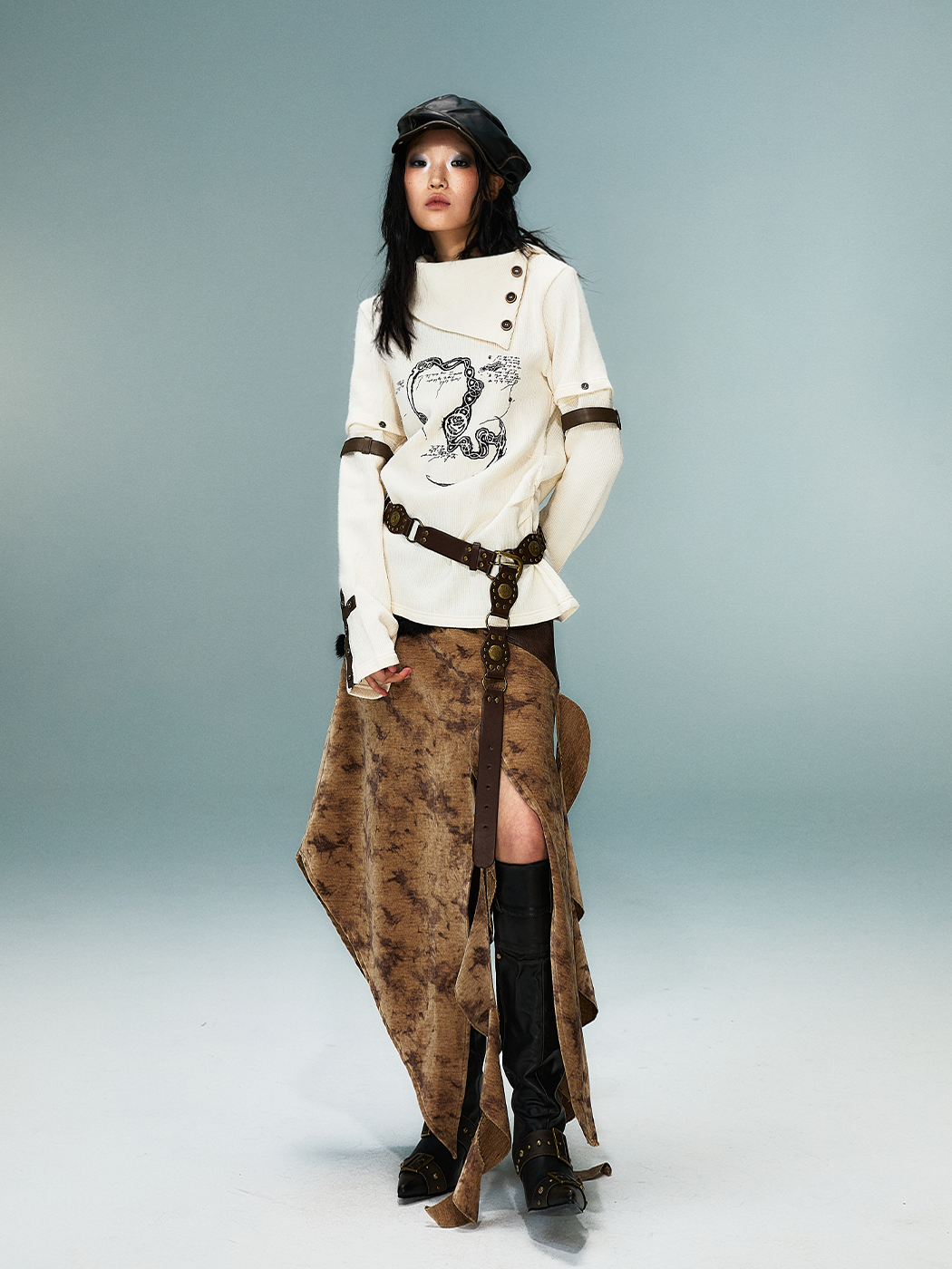 Cross Print Detachable Sleeve Knit Sweater with Belt NA8181