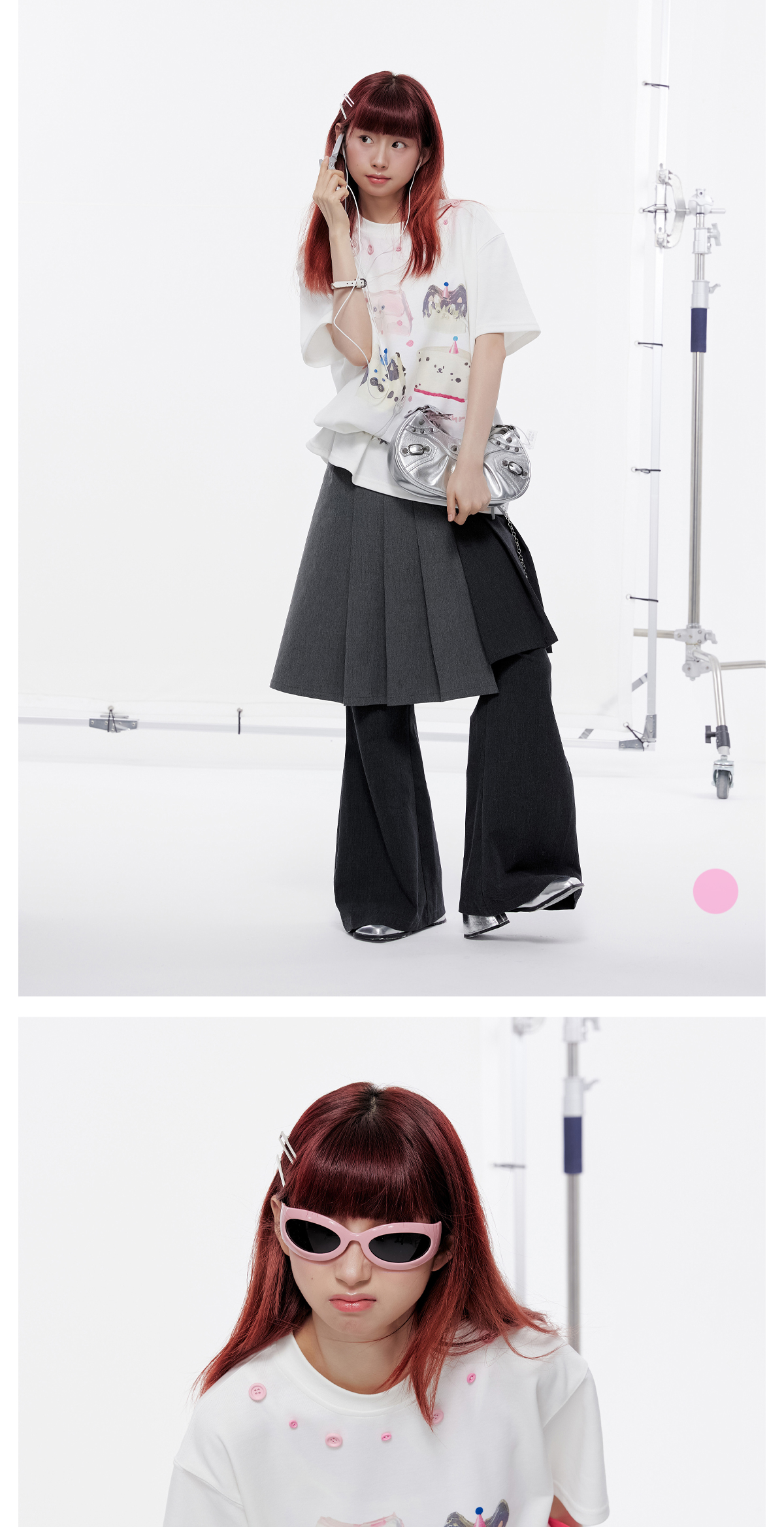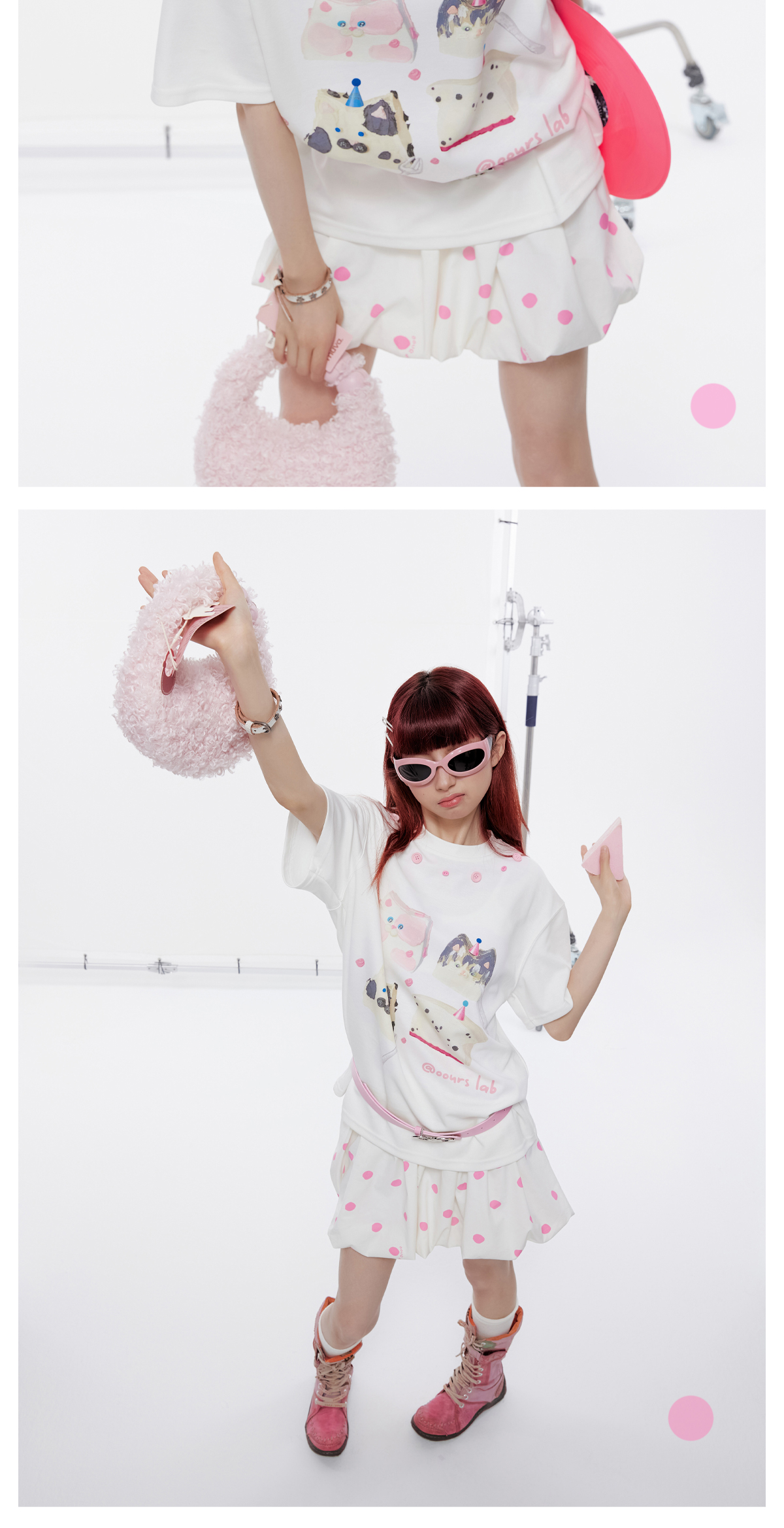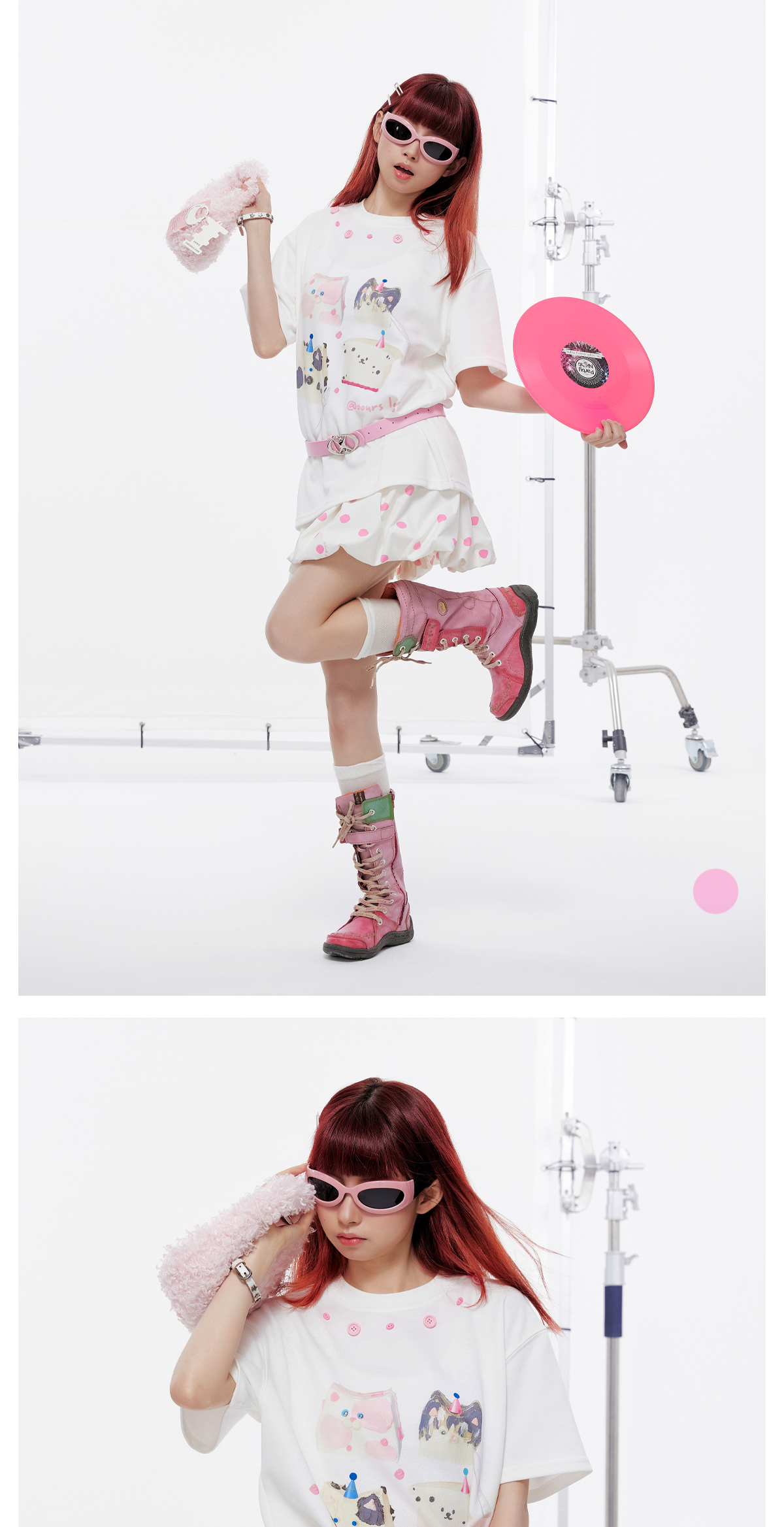 Cat Graphic Button Detail Oversize Short Sleeve T-Shirt & Belt NA8203