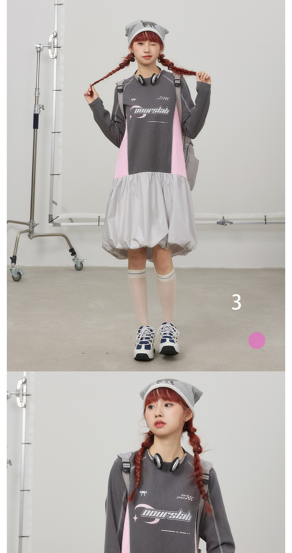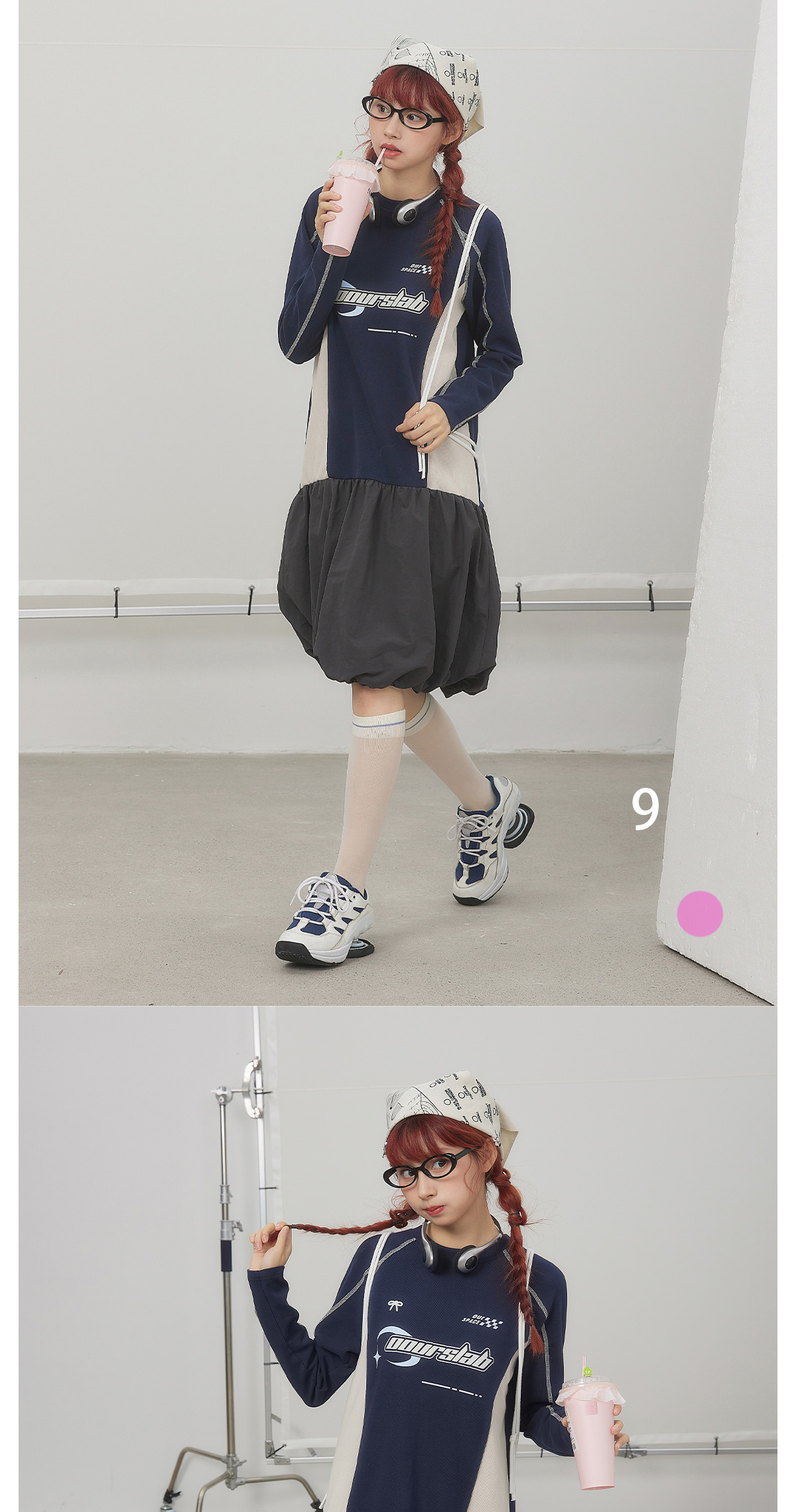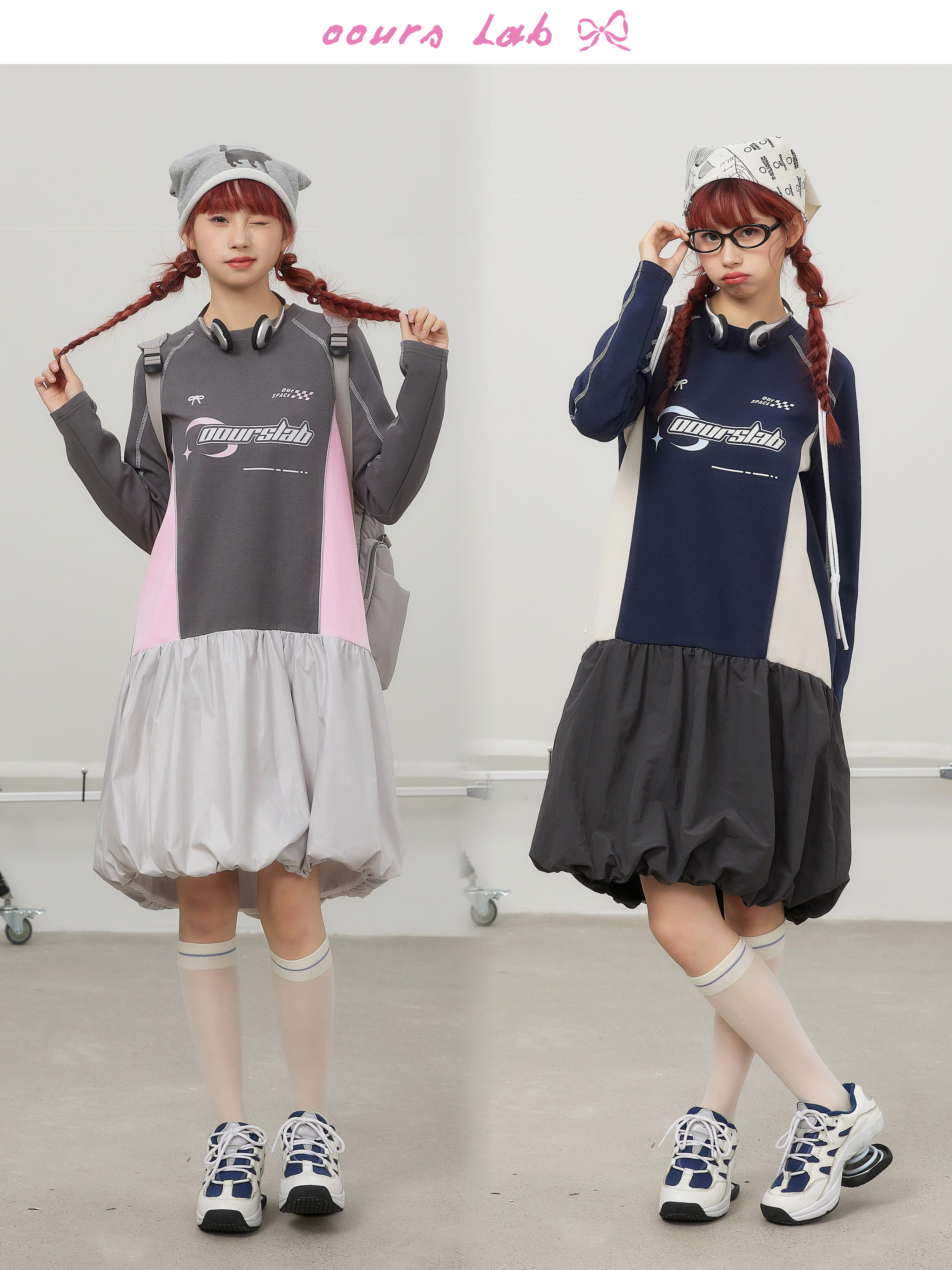 Sporty Patchwork Contrast Long Sleeve Dress NA8228