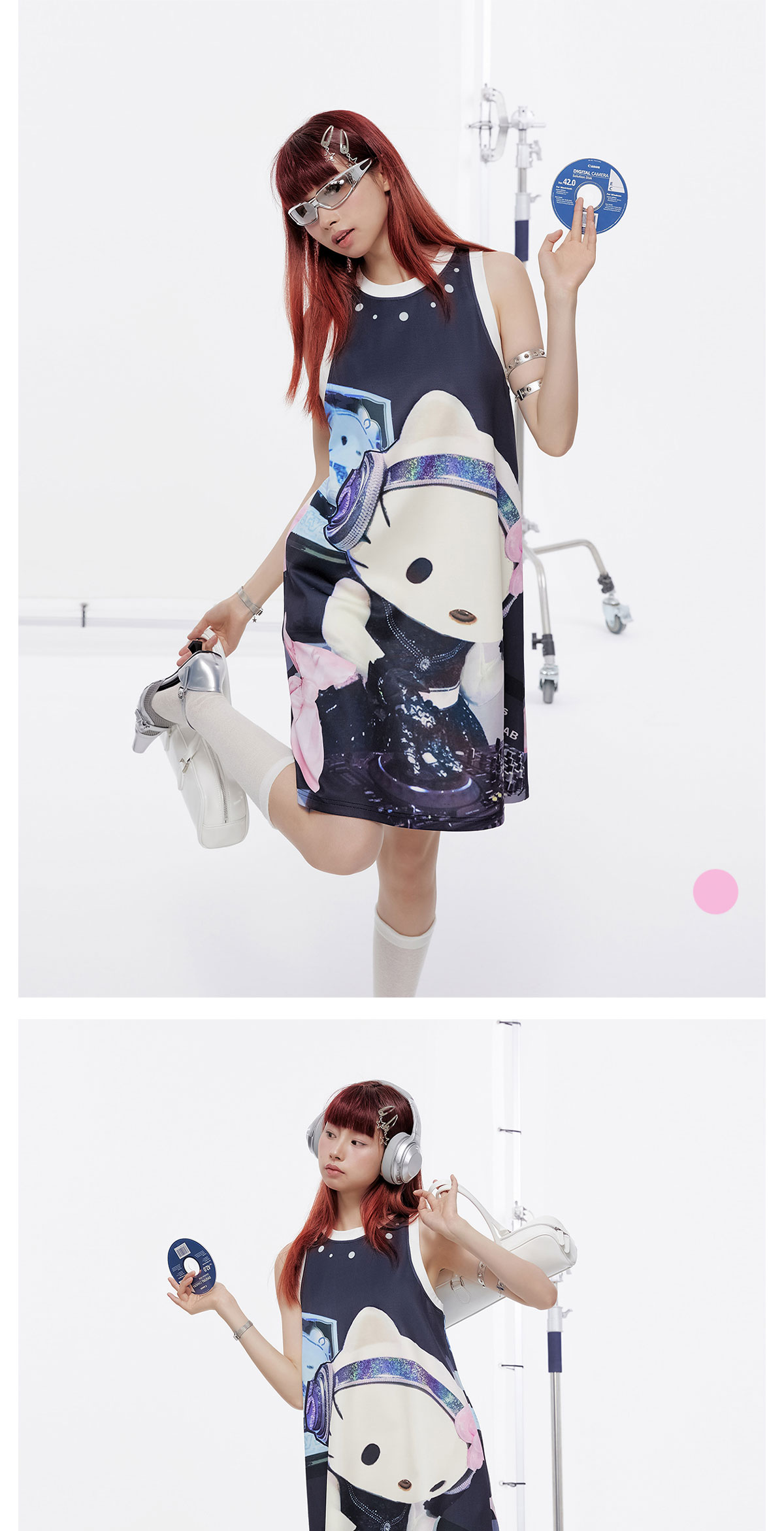 DJ Cat Playful Print Stretch Knit A-Line Sleeveless Dress NA8248