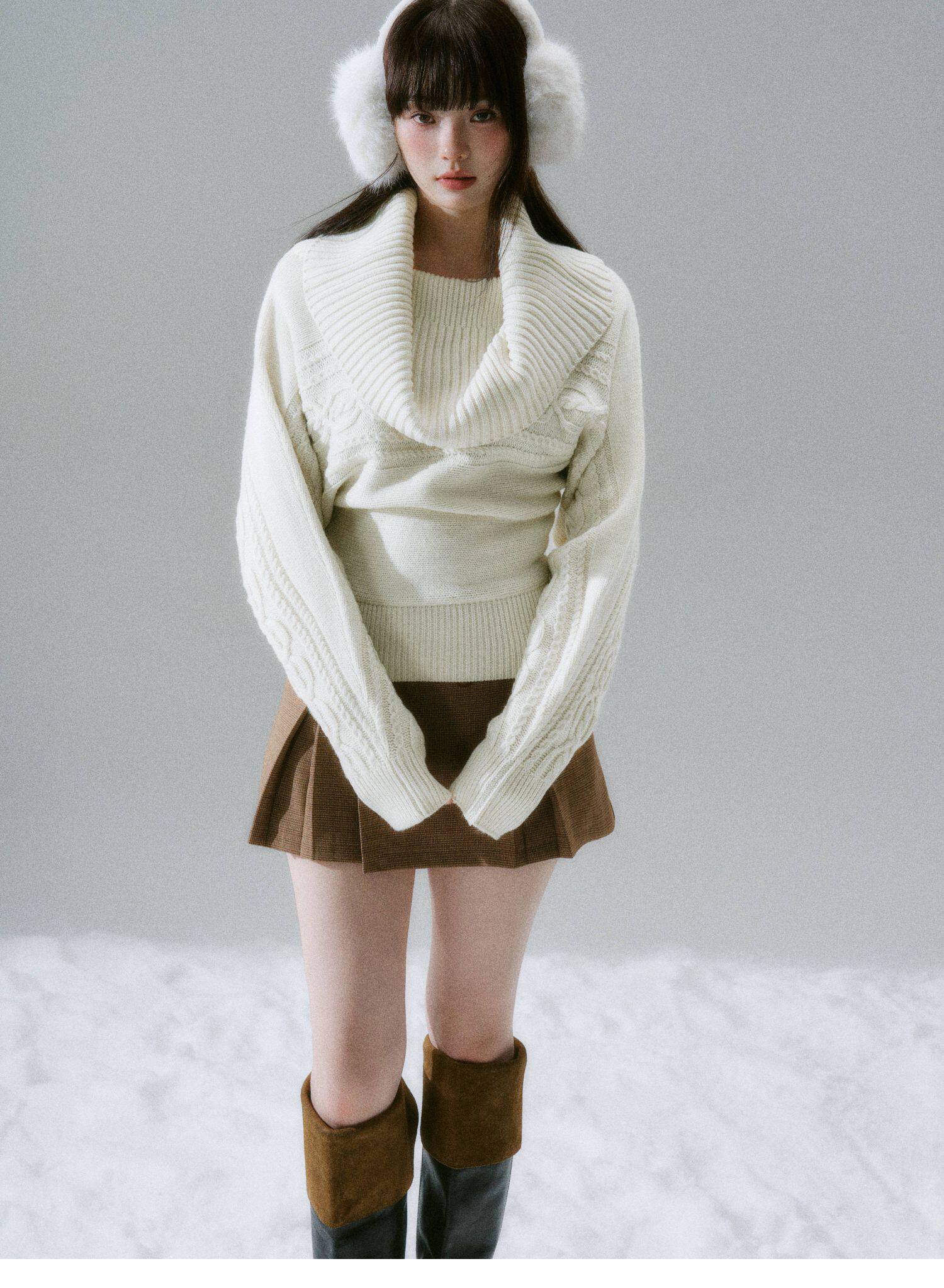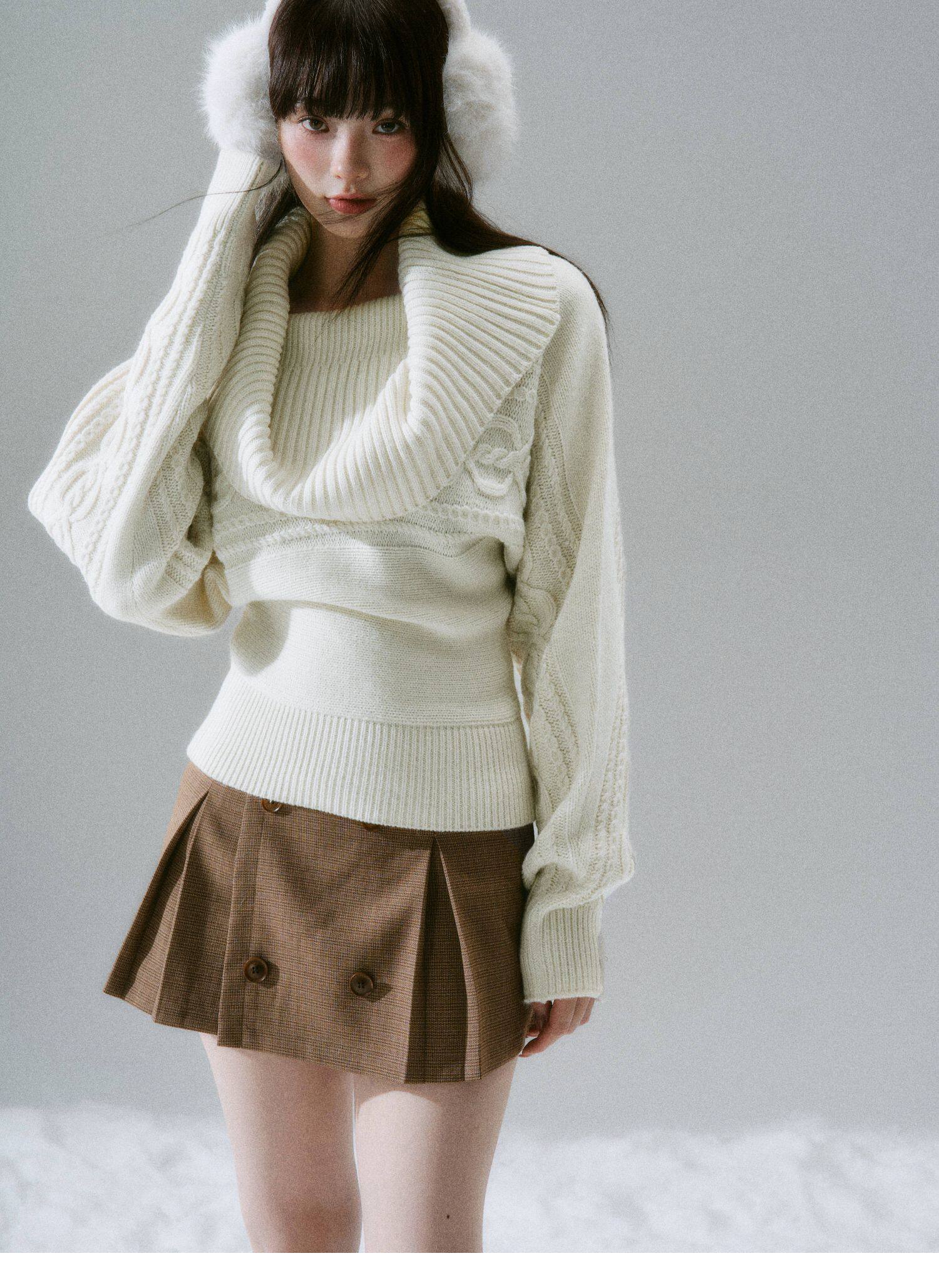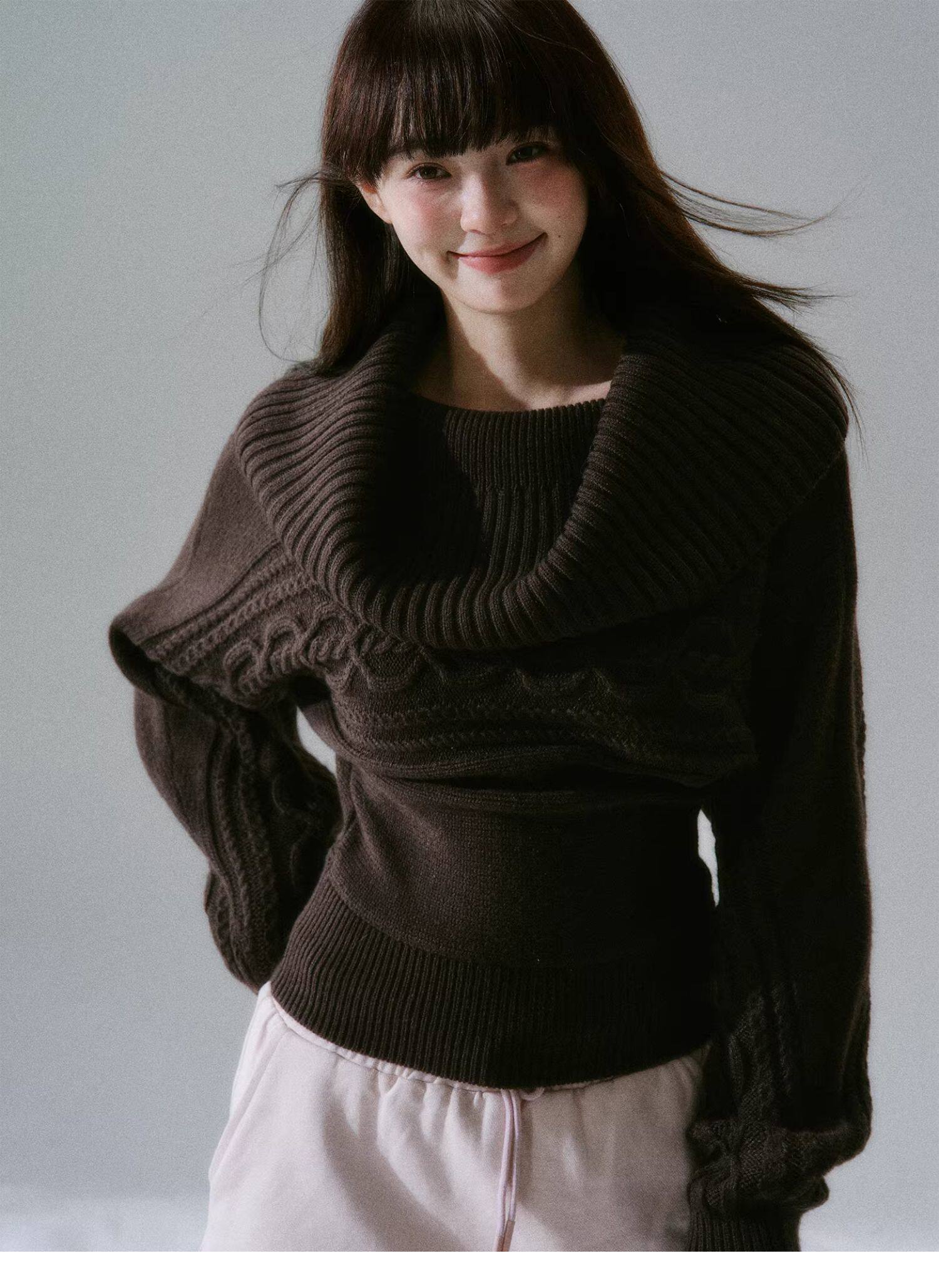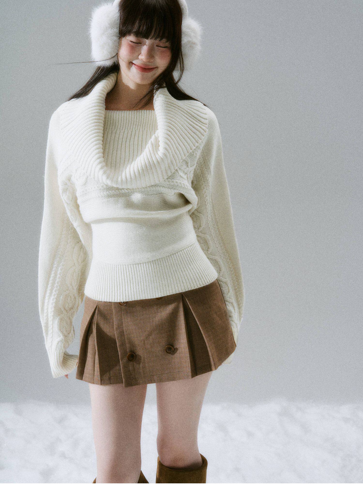 Ribbed Cowl Neck Cable Sleeve Knit Sweater NA8834