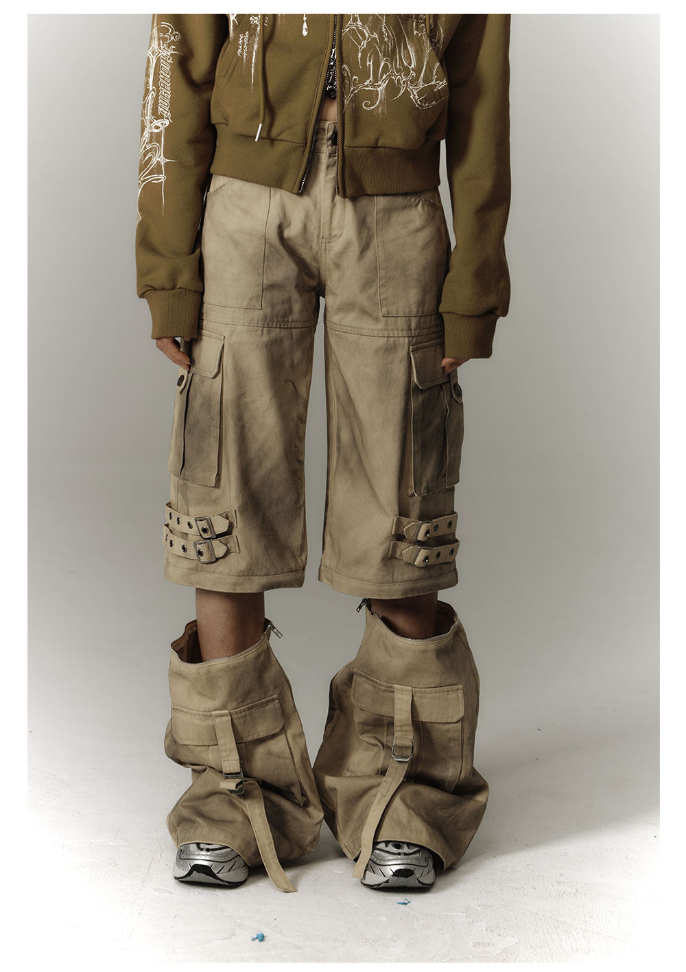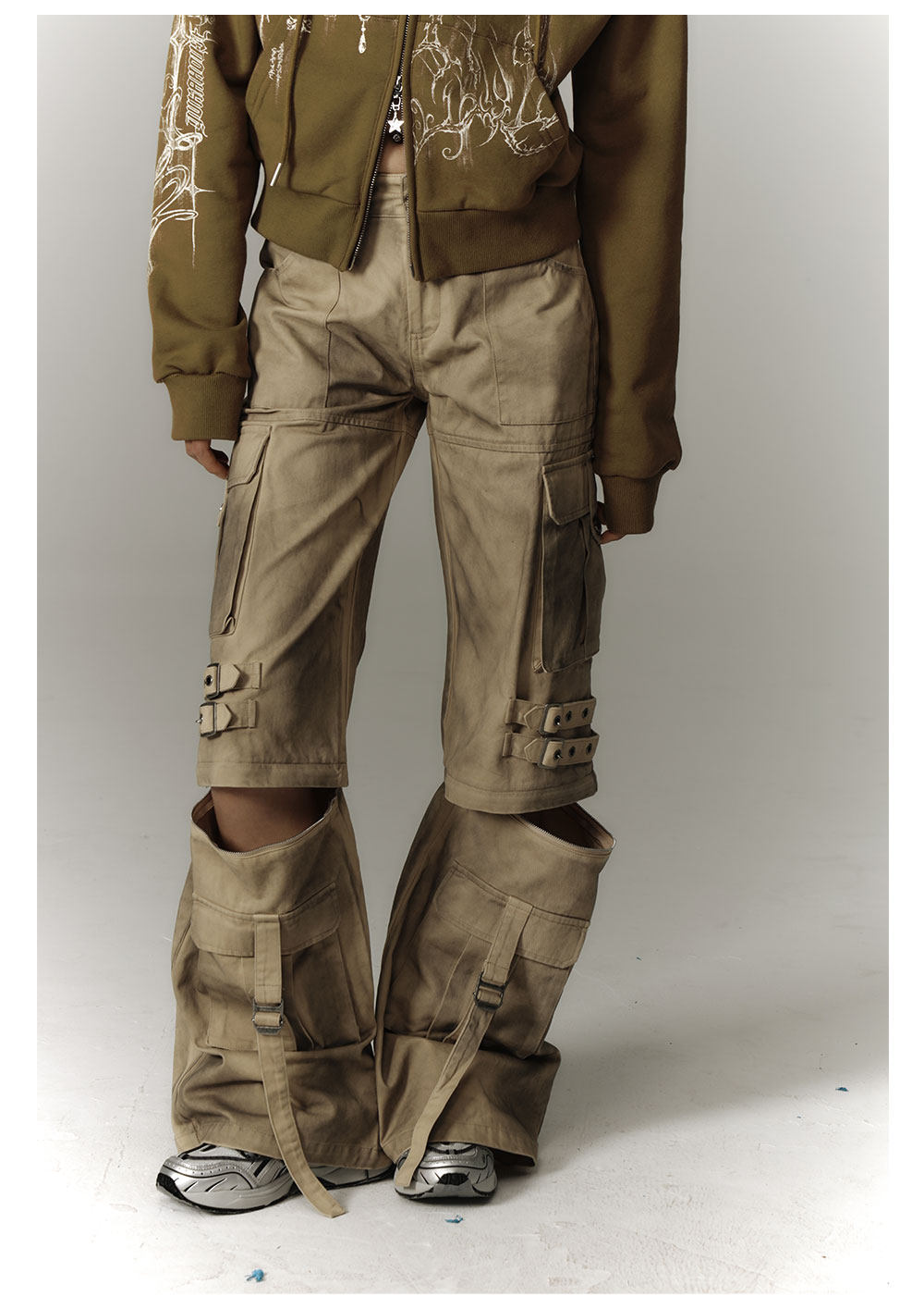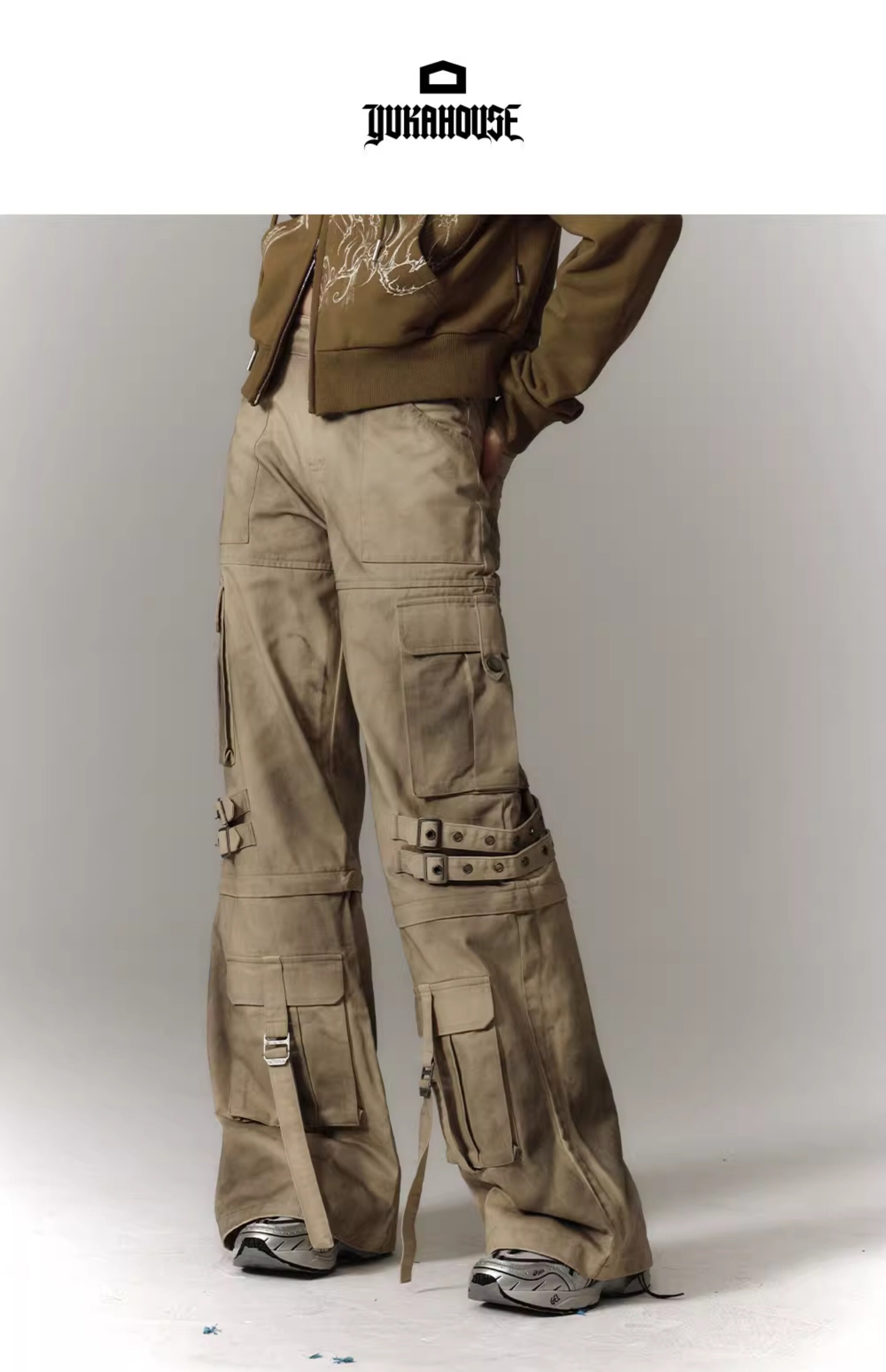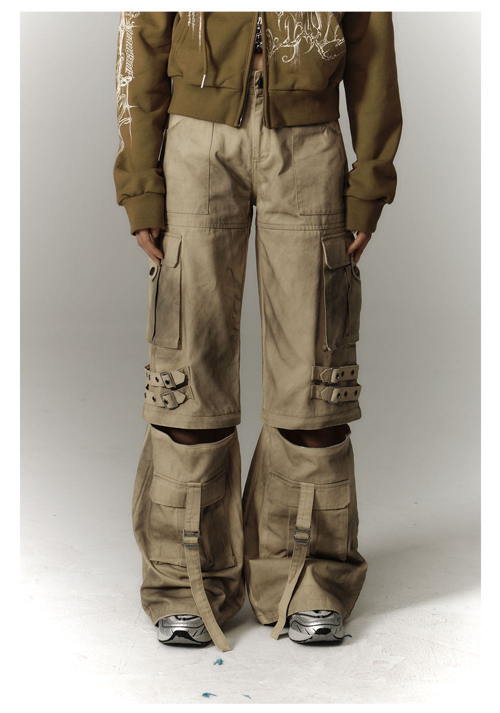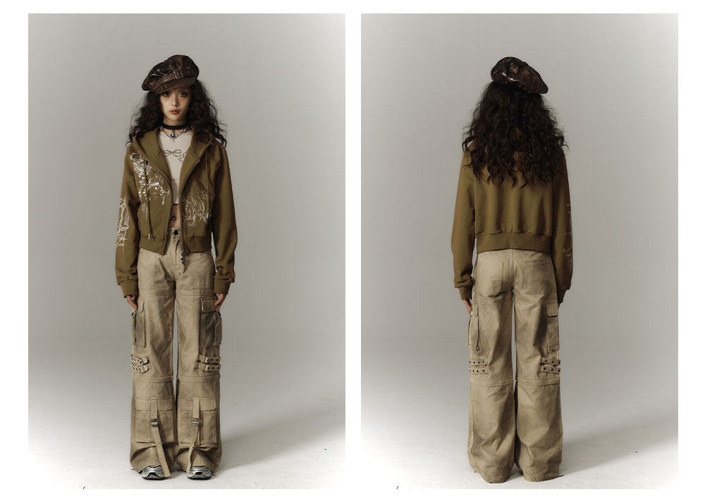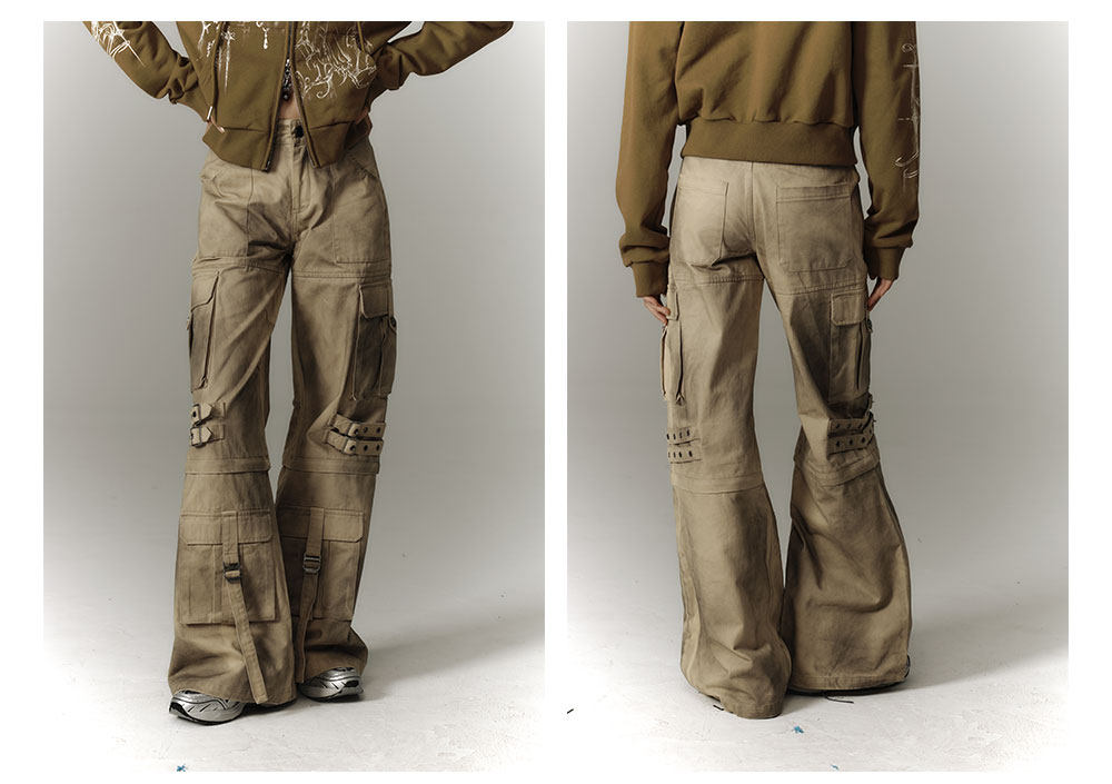 Washed Damage Workwear Wide Leg Pants NA8882