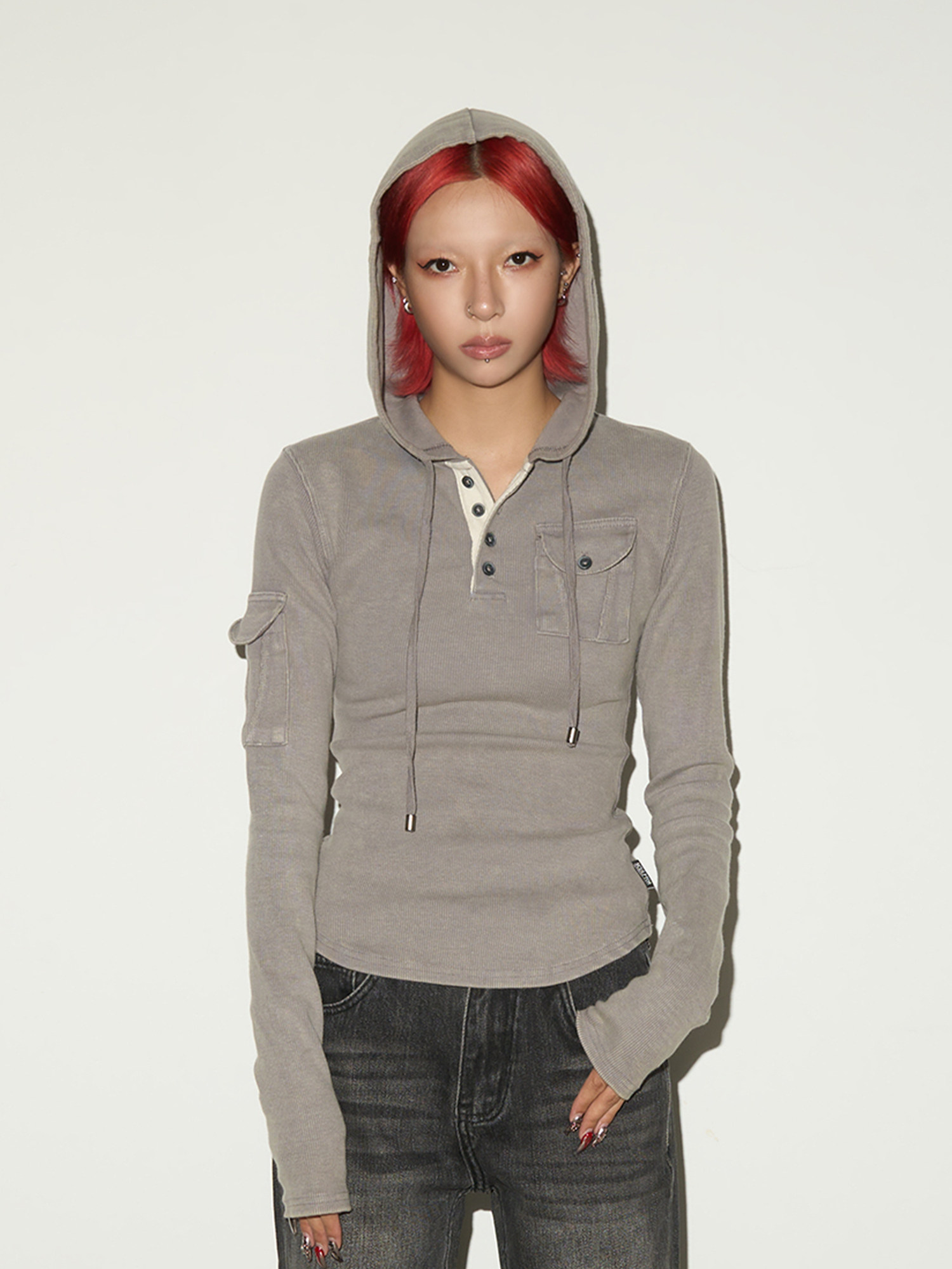 Multi-Pocket Button Knit Hoodie NA9134