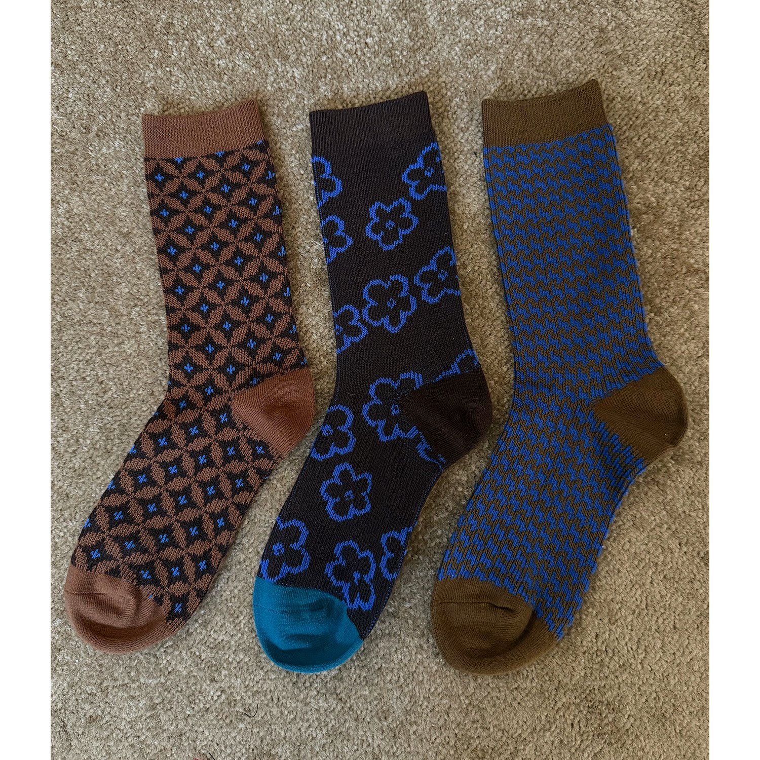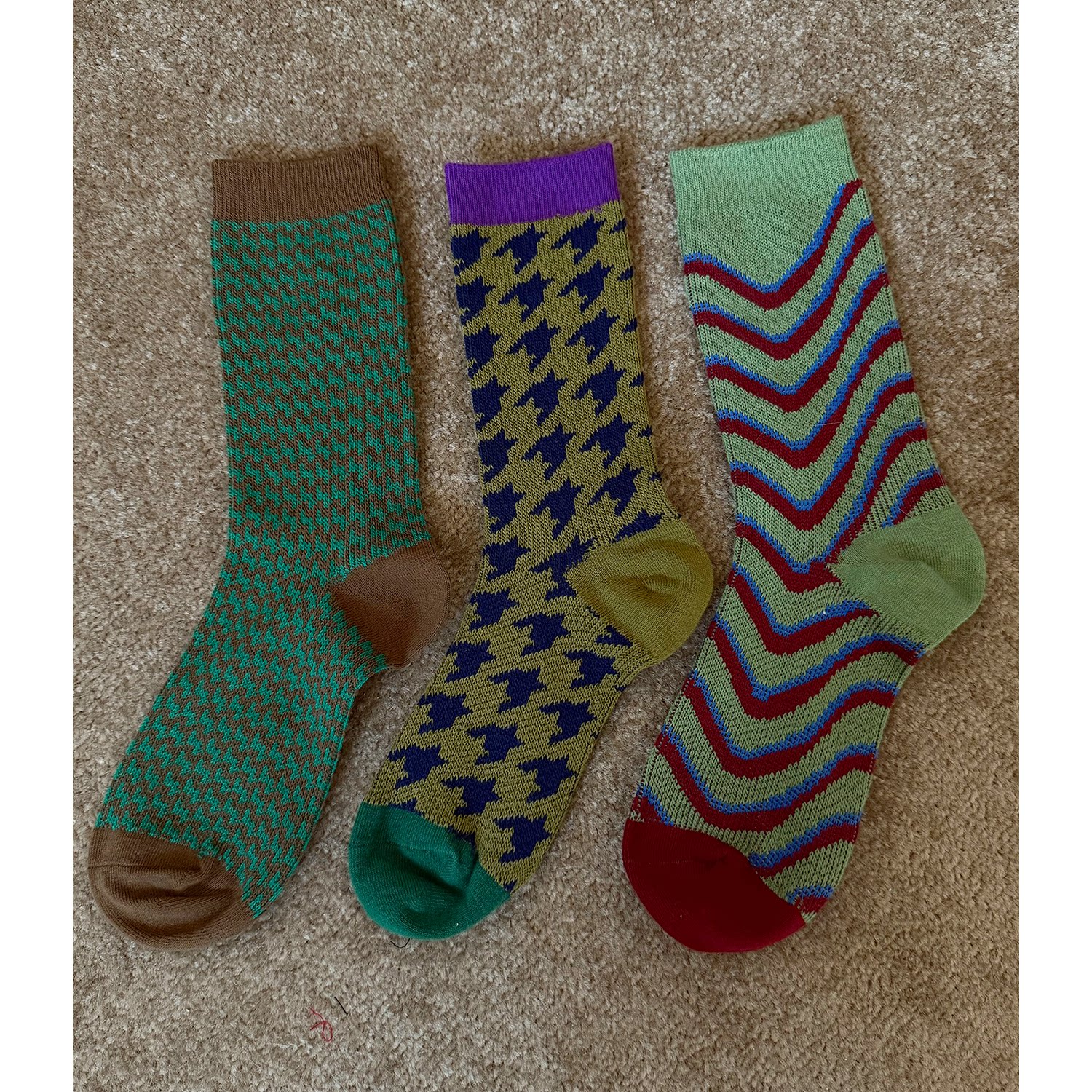 Houndstooth Geometric Stripe Pattern Mid Calf Socks NA9181