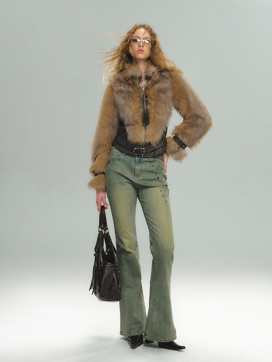 Fake Layered Short Fake Fur Zipper Jacket NA7201