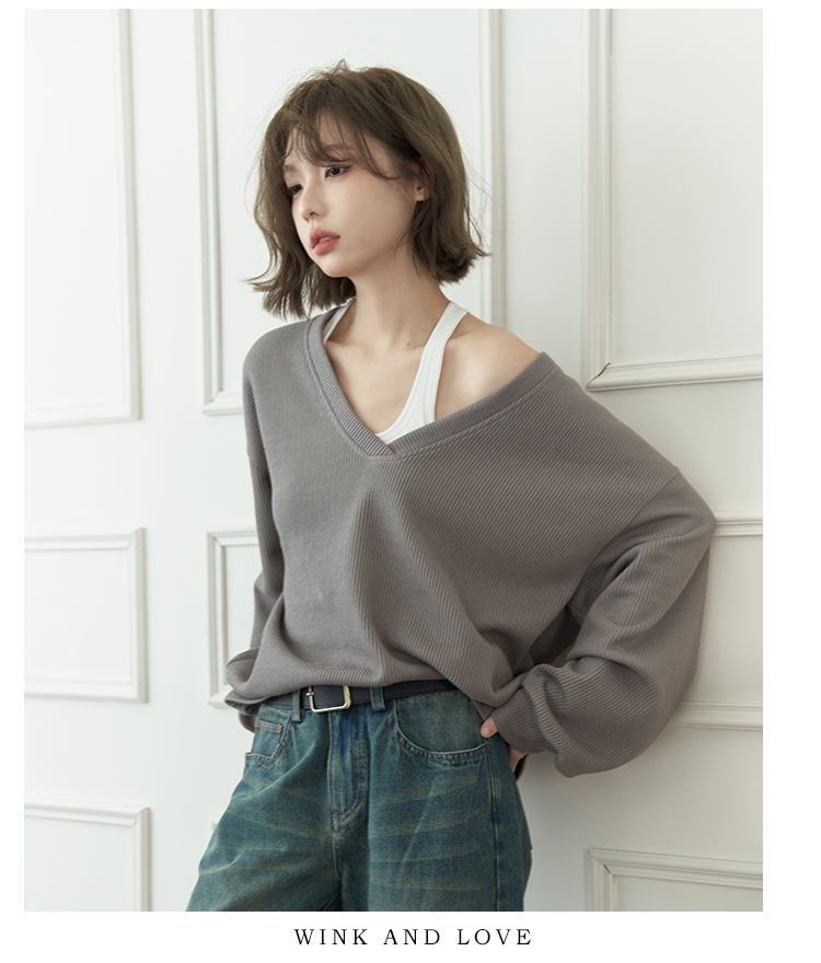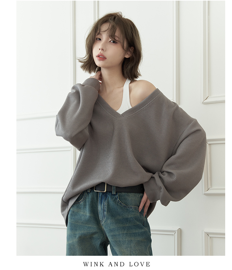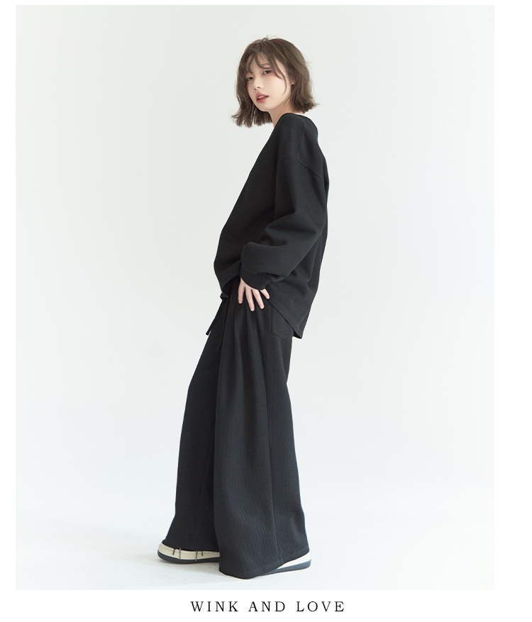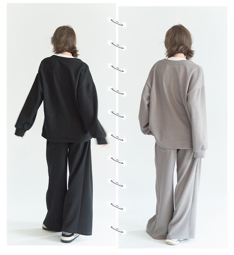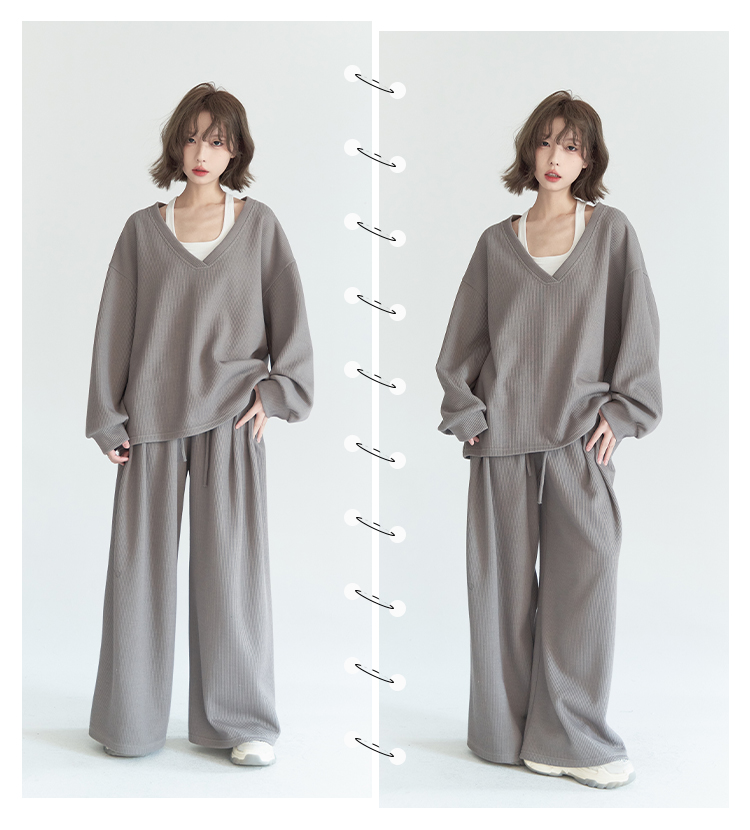 Casual Sporty Big V-Neck Top & Wide Leg Pants Setup NA2721
