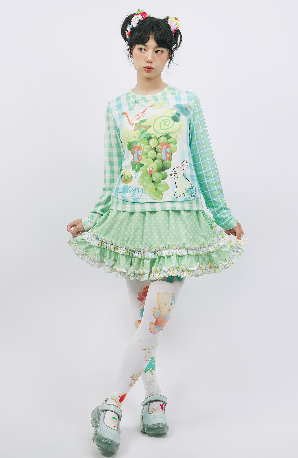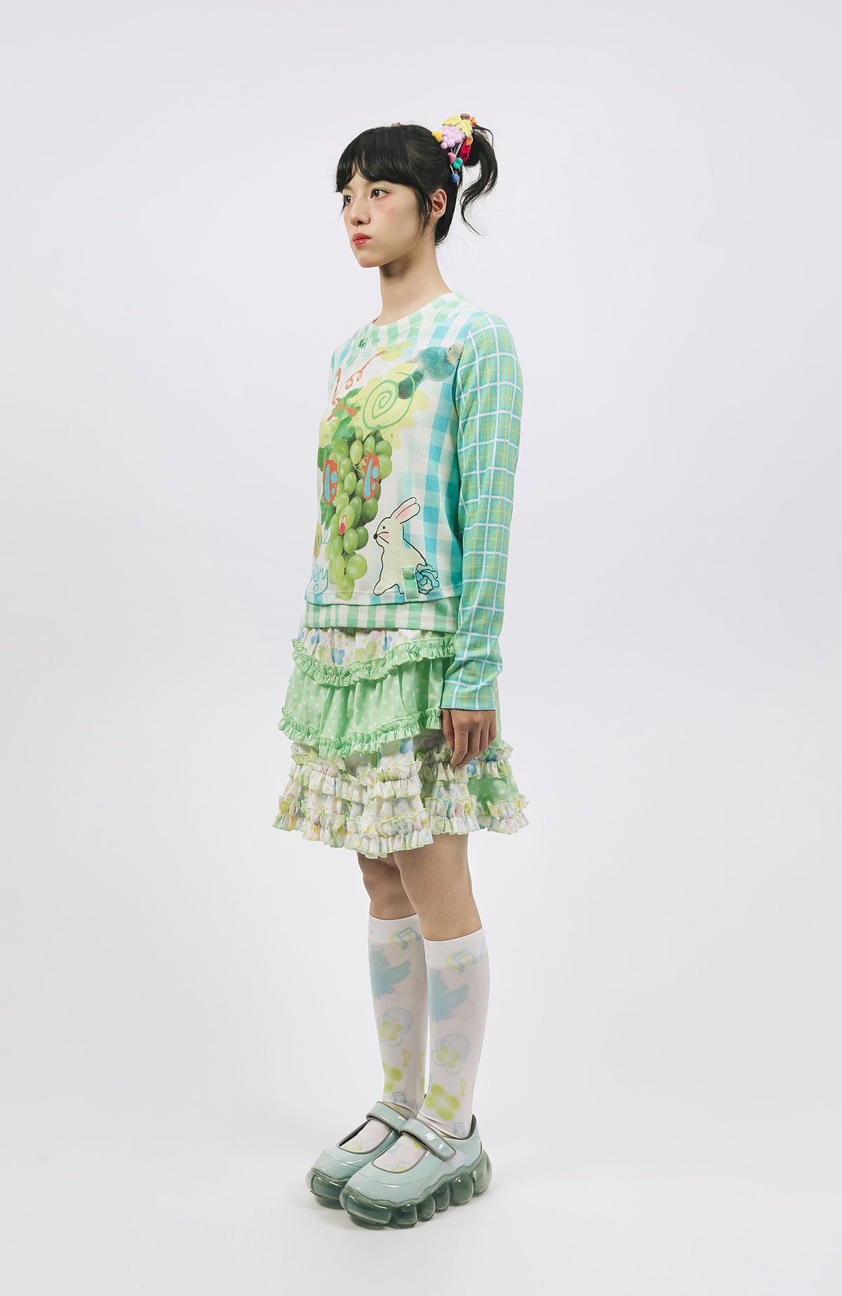 Plaid Grape Print Long Sleeve T-Shirt NA6569