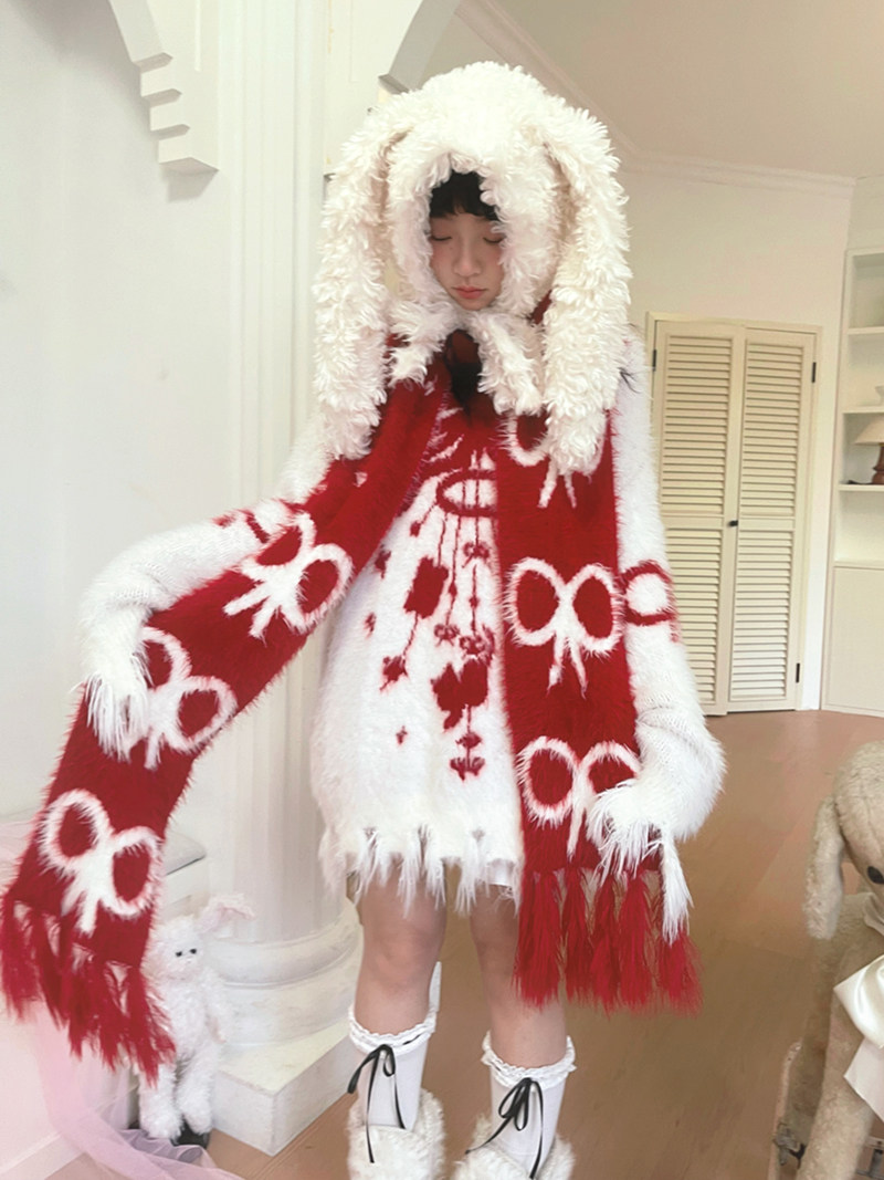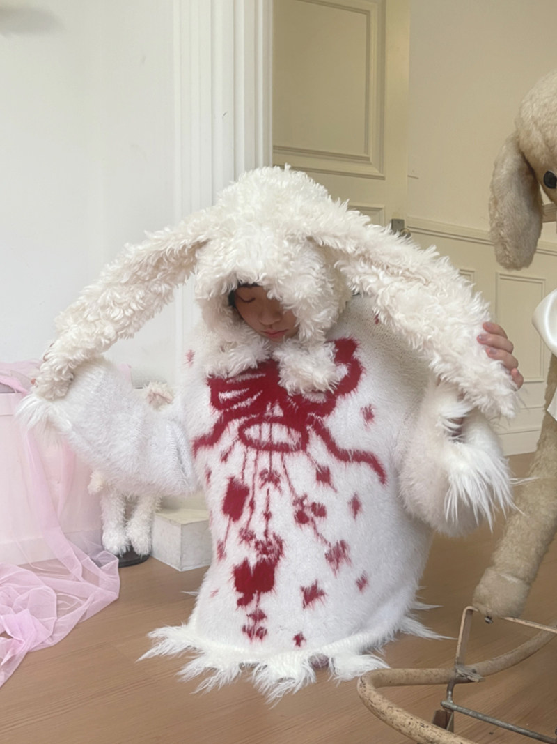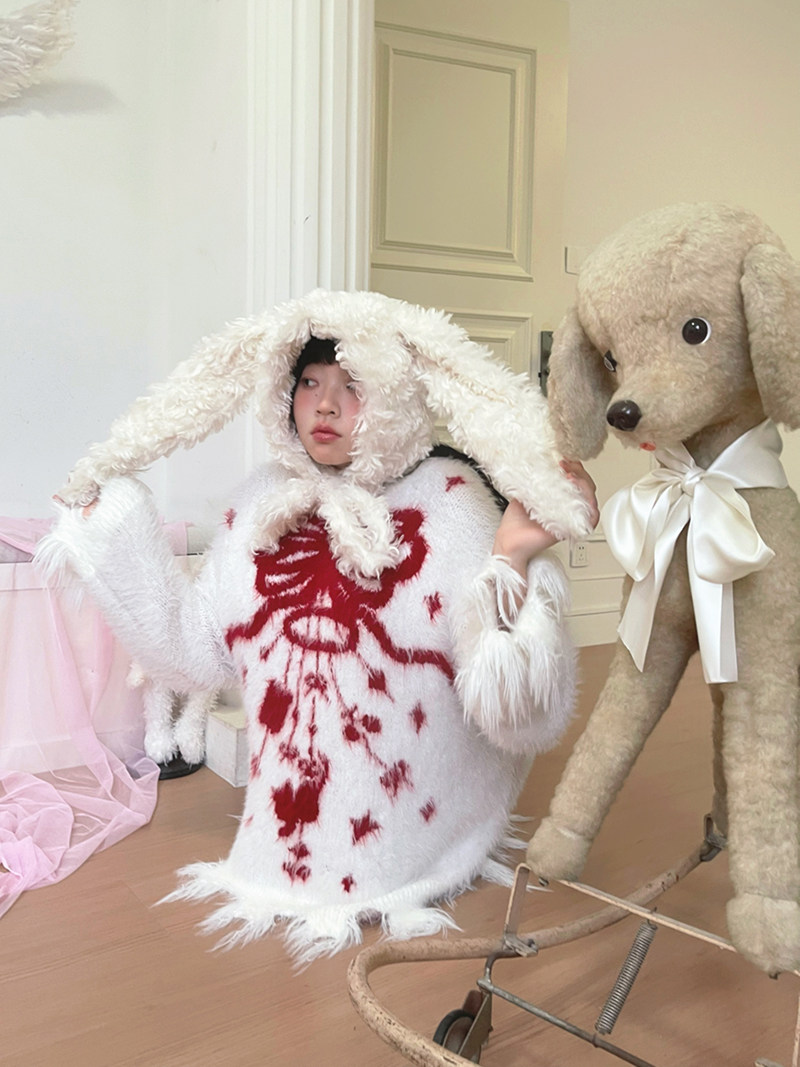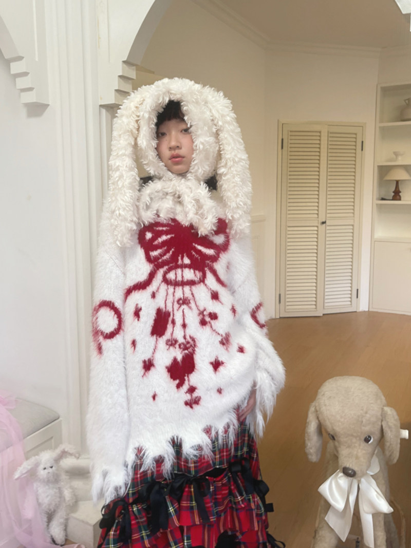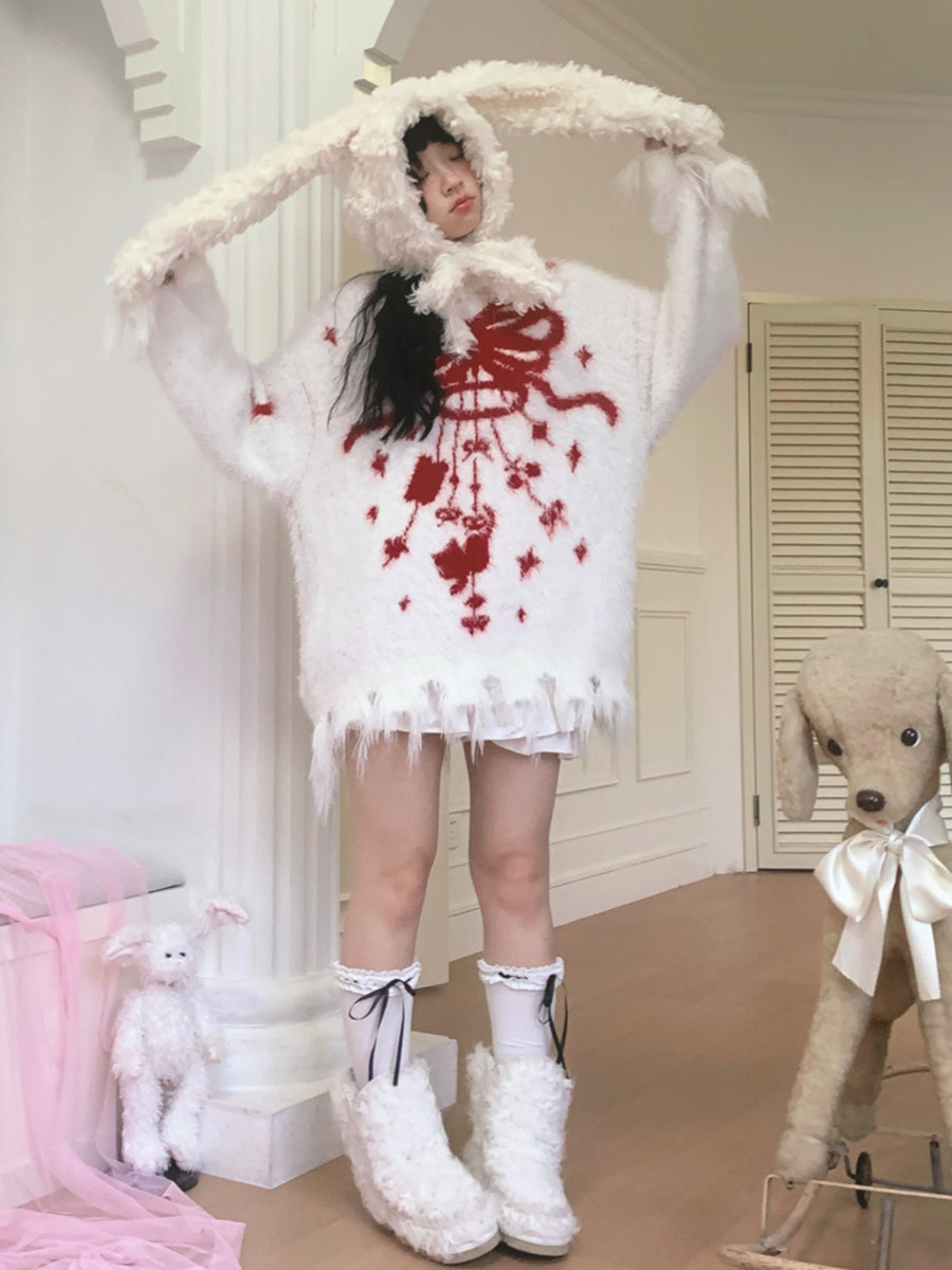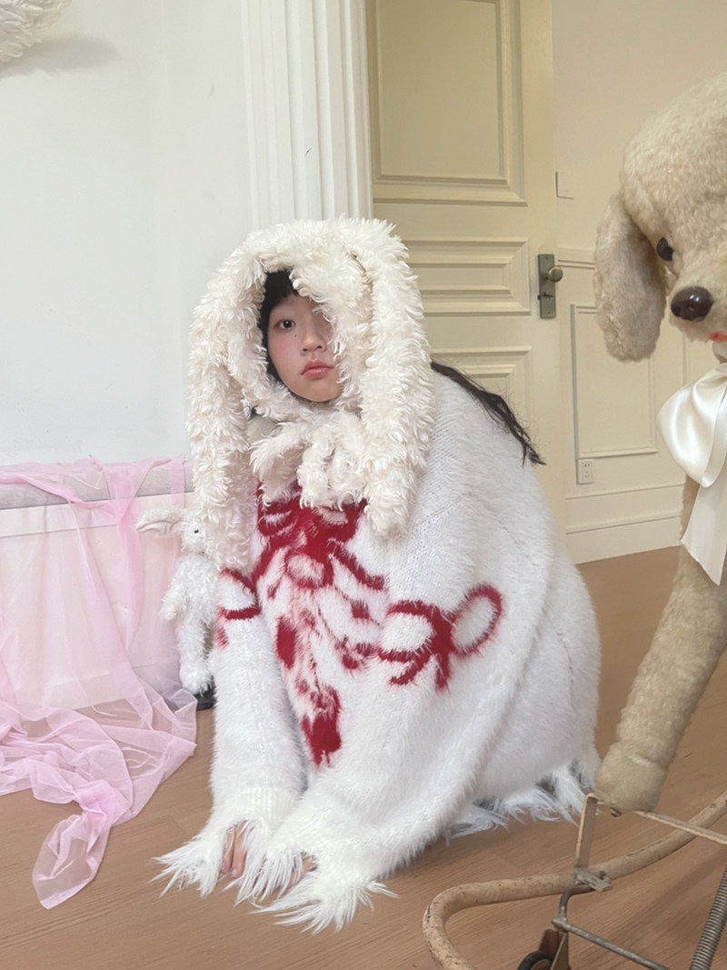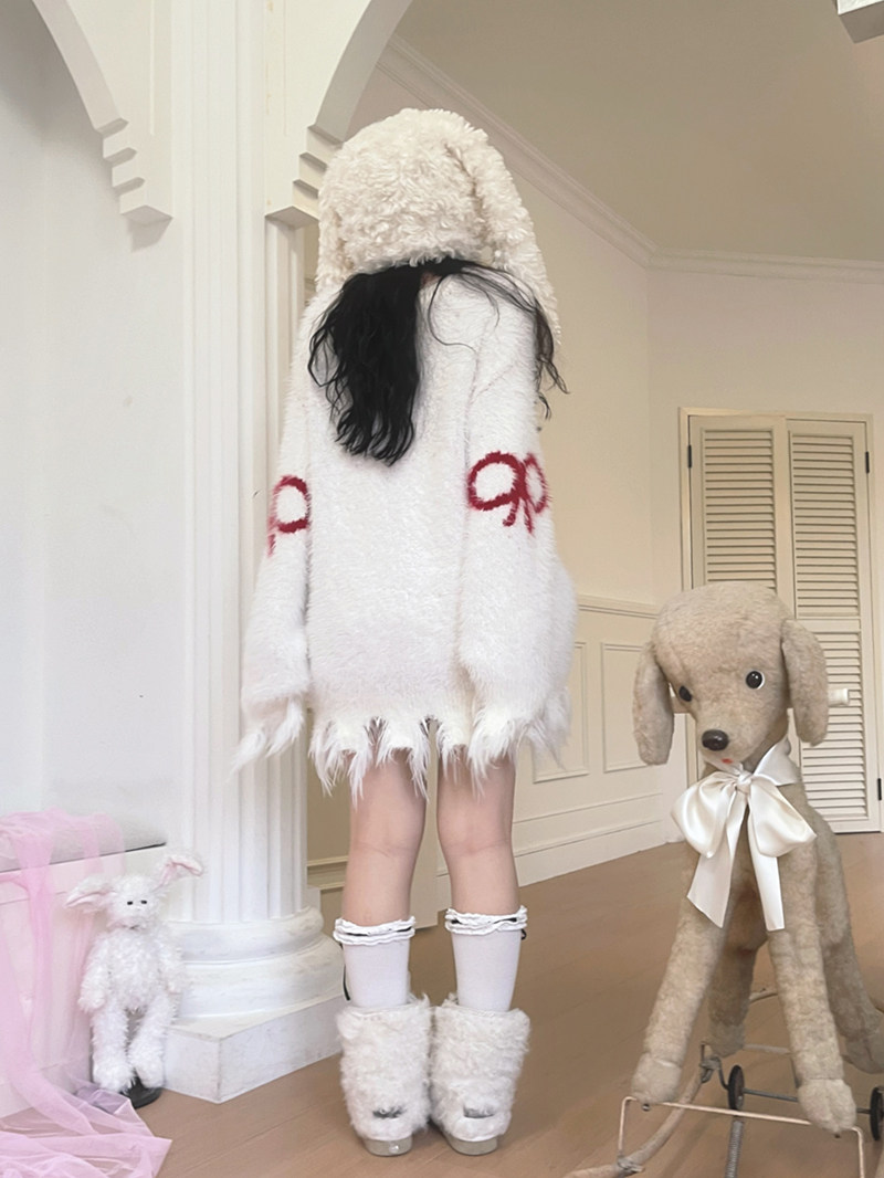 Bow Design Shaggy Knit Sweater NA8304