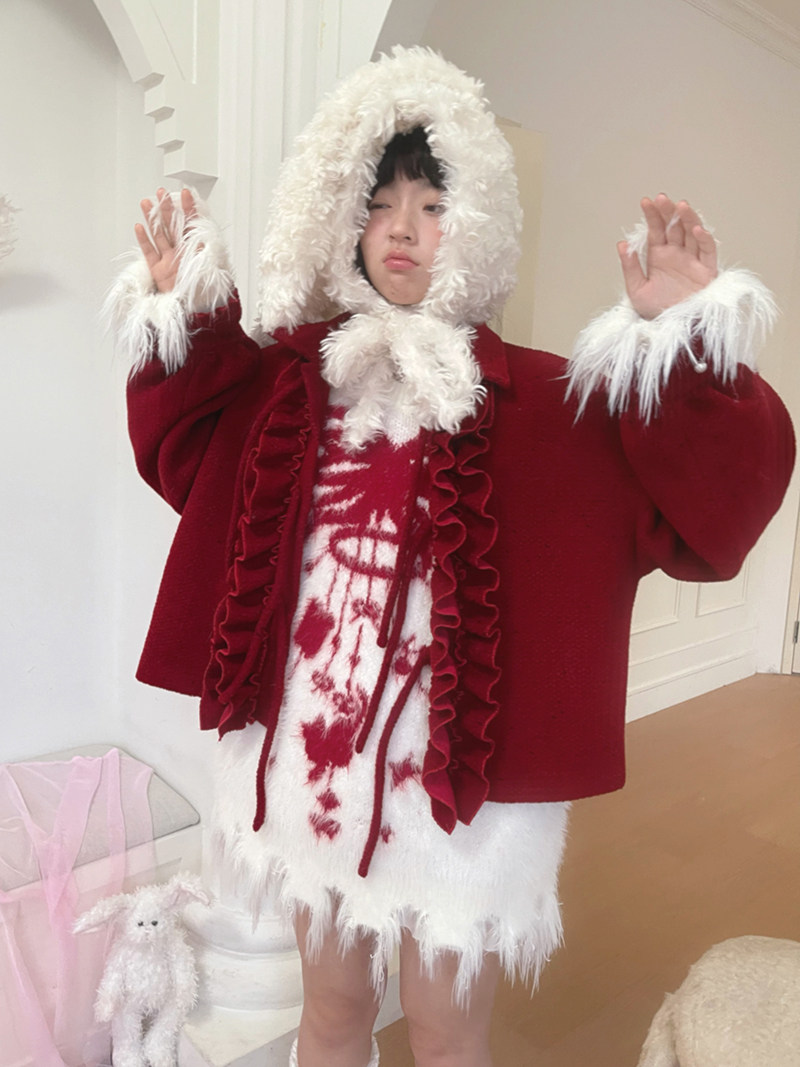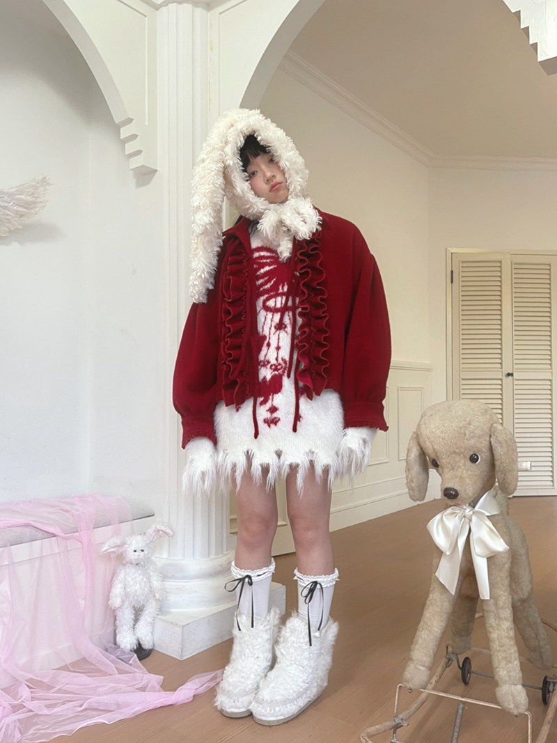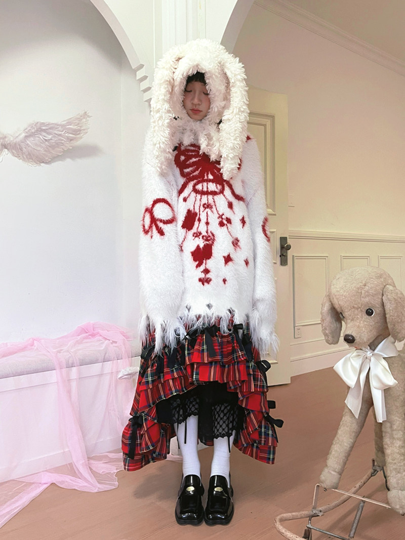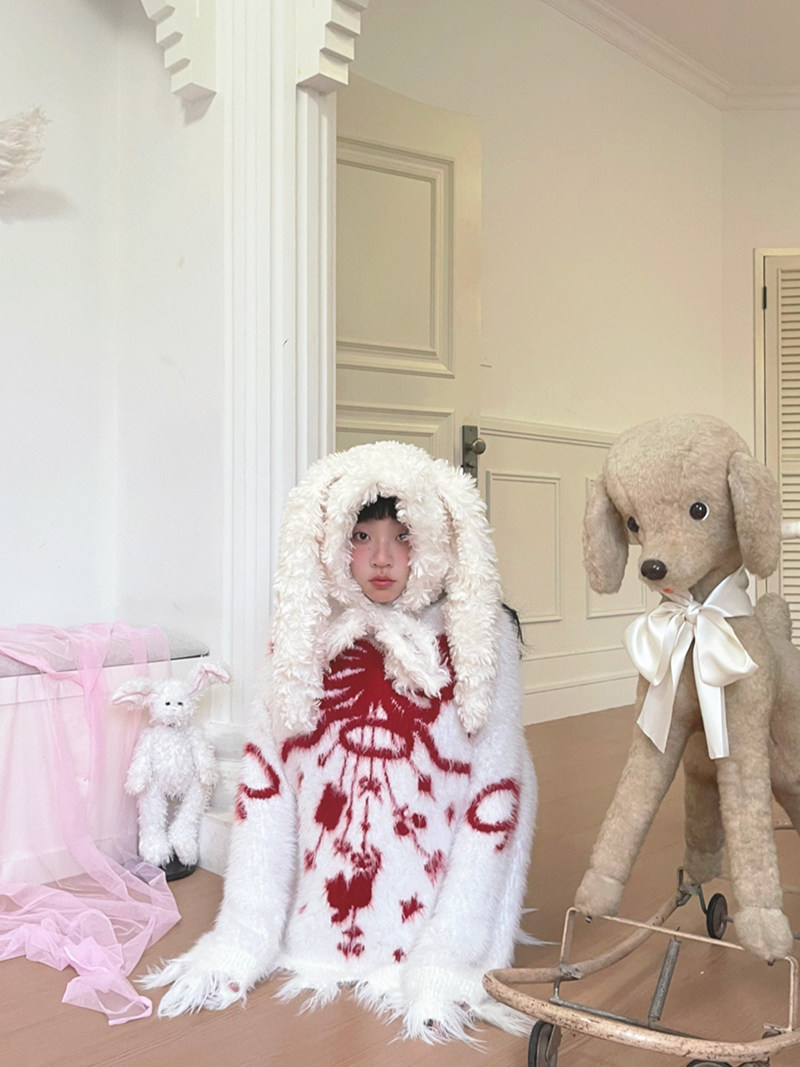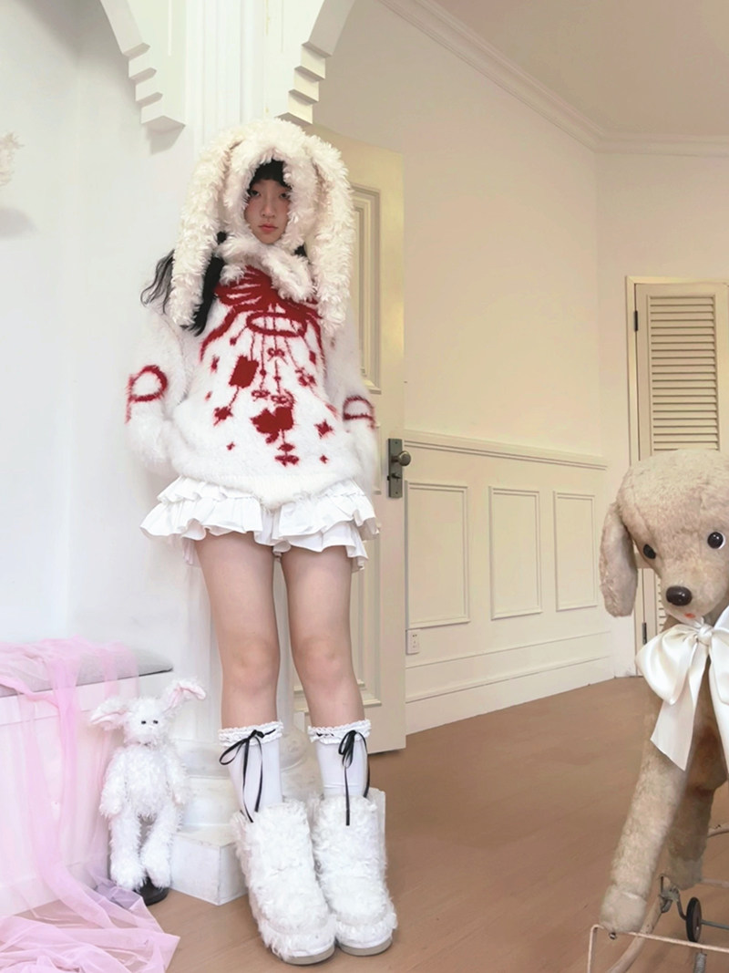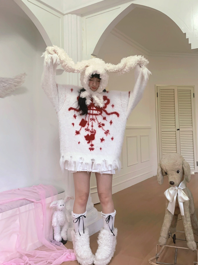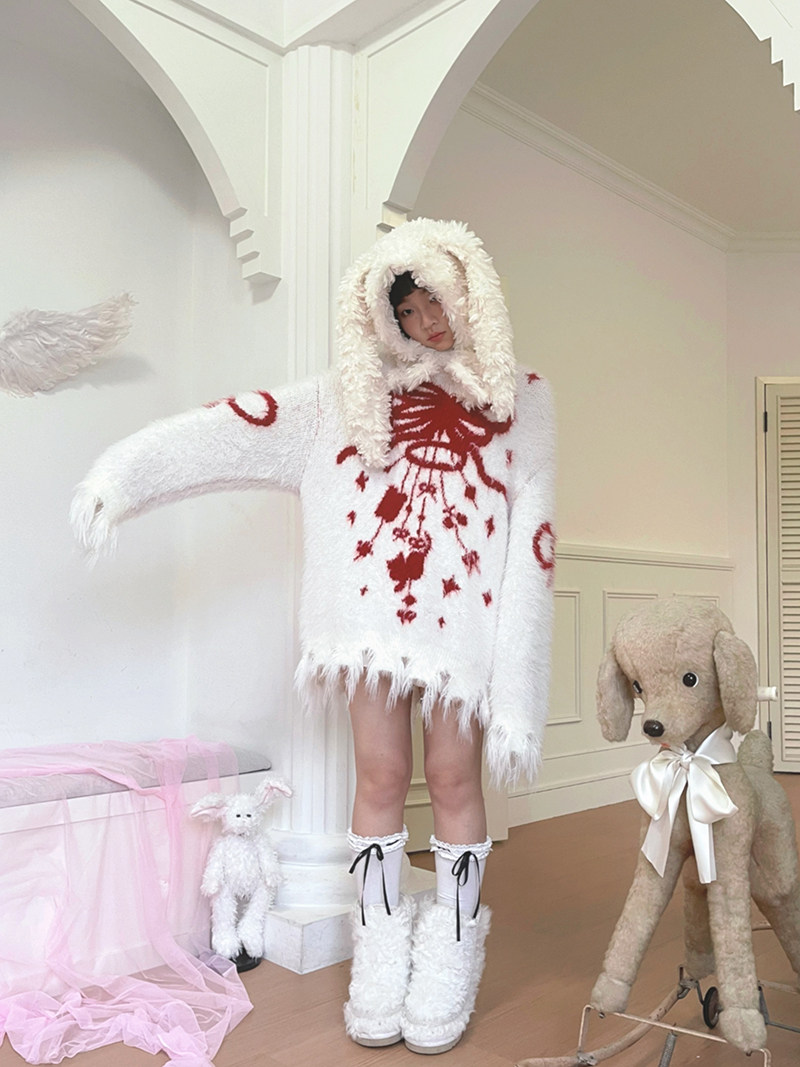 Bow Design Shaggy Knit Sweater NA8304