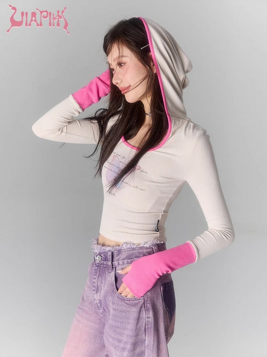 Colorful Butterfly Contrast Cuff Sleeves With Hat Long Sleeve T-shirt NA4750