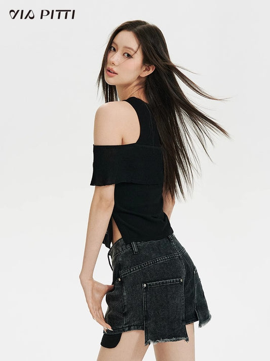 Zipper Tube Top & Short Sleeve T-shirt NA4229