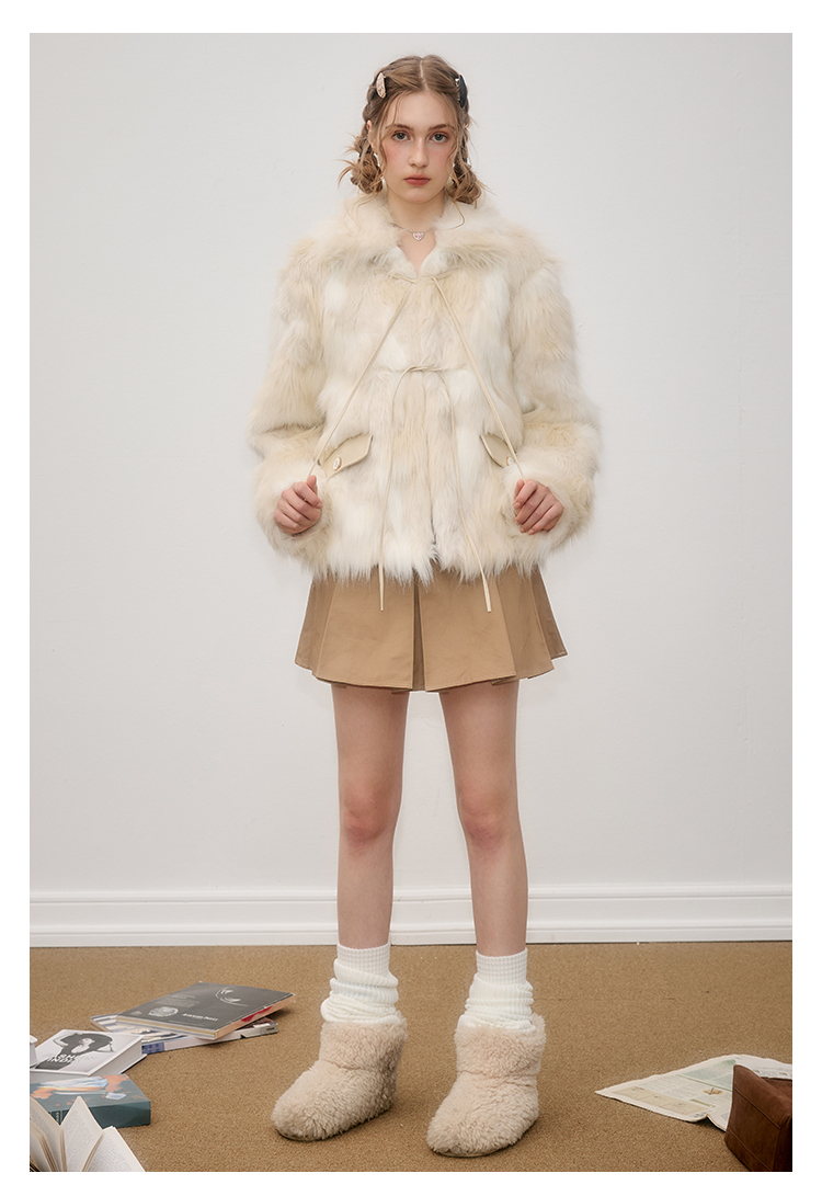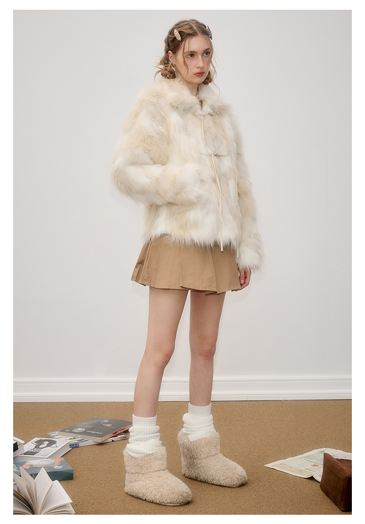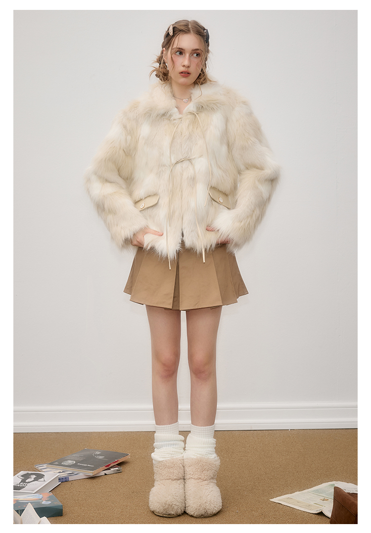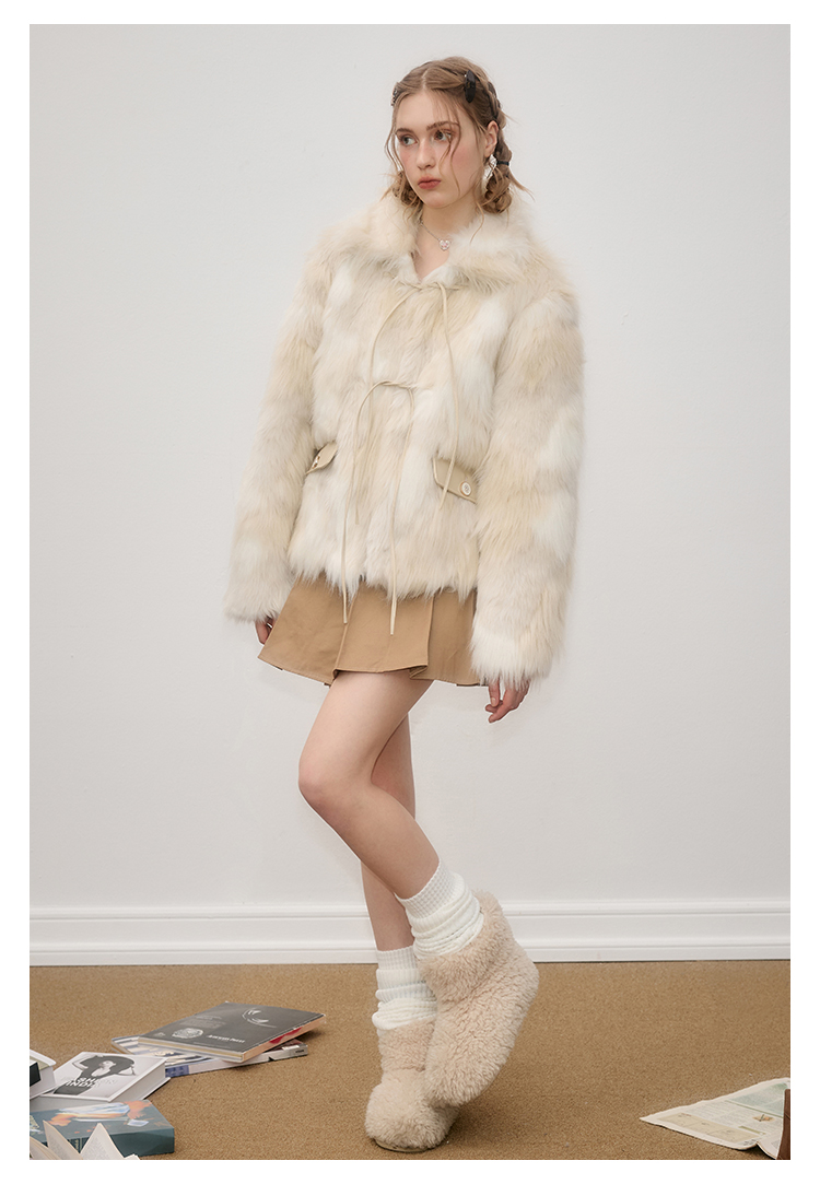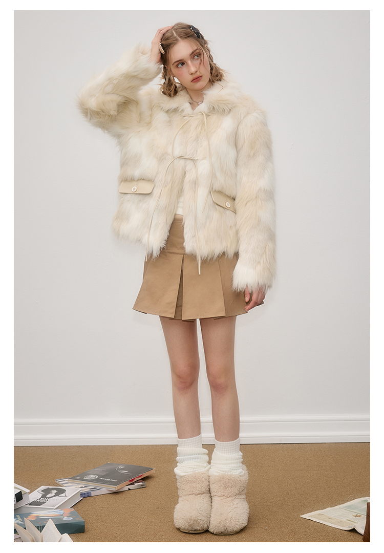 Patchwork Bowknot Tie Fake Fur Jacket NA6067